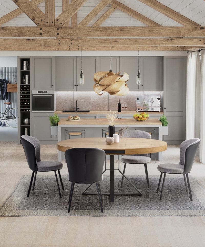extension table, dimensions: 120-160/120/76 cm material: laminated MDF / powder coated steel, color: top – golden oak, legs – black