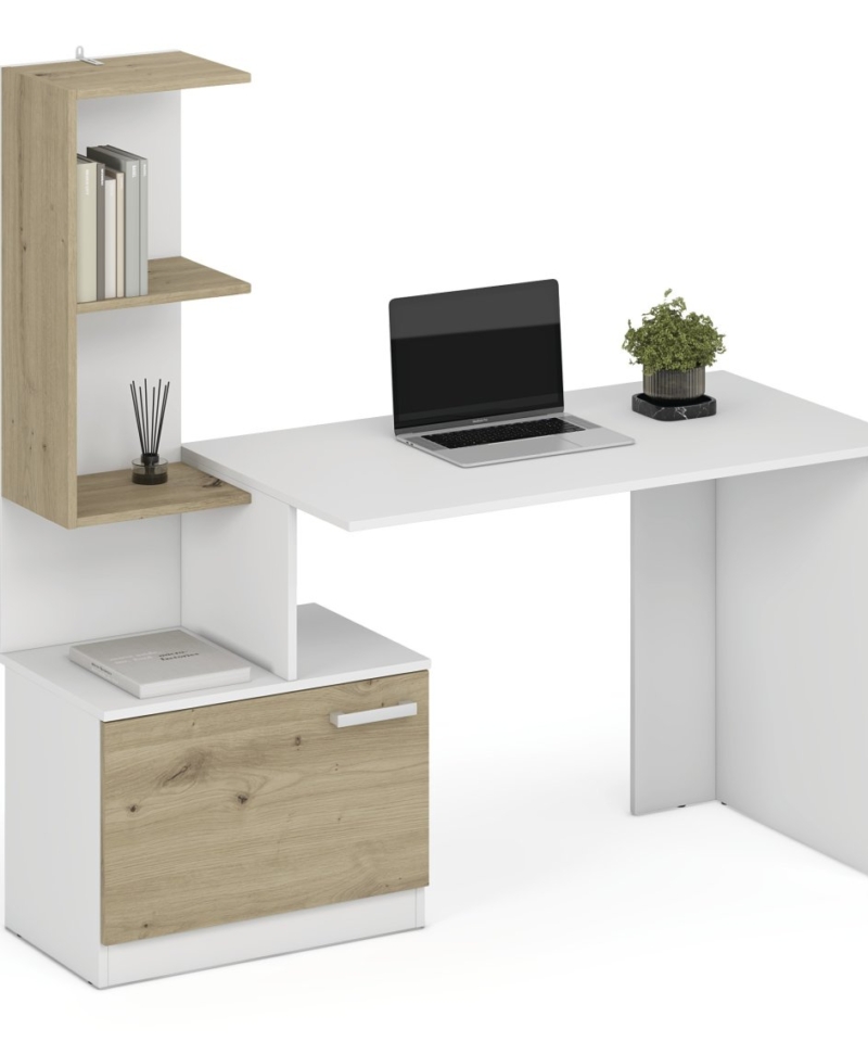 dimensions: 144/60/142 cm, material: laminated chipboard, colors: white / artisan oak