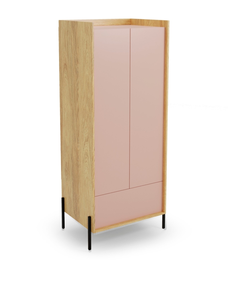 dimensions: 78/60/179 cm, material: laminated chipboard, ABS edges, push-clik mechanism, color: hikora oak/pink