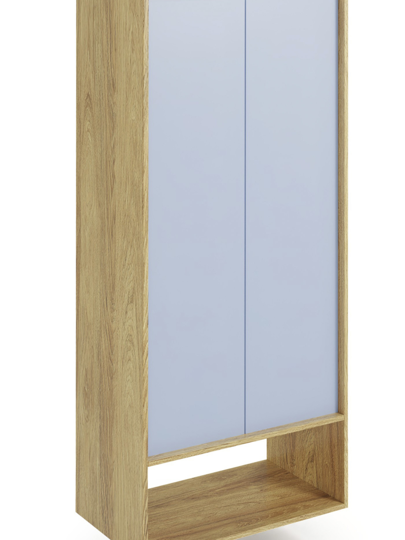 dimensions: 78/41/179 cm, material: laminated chipboard, ABS edges, push-clik mechanism, color: hikora oak/light blue