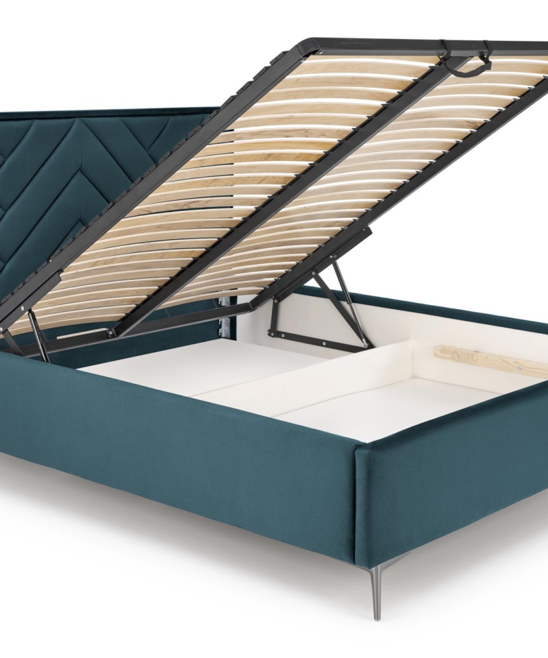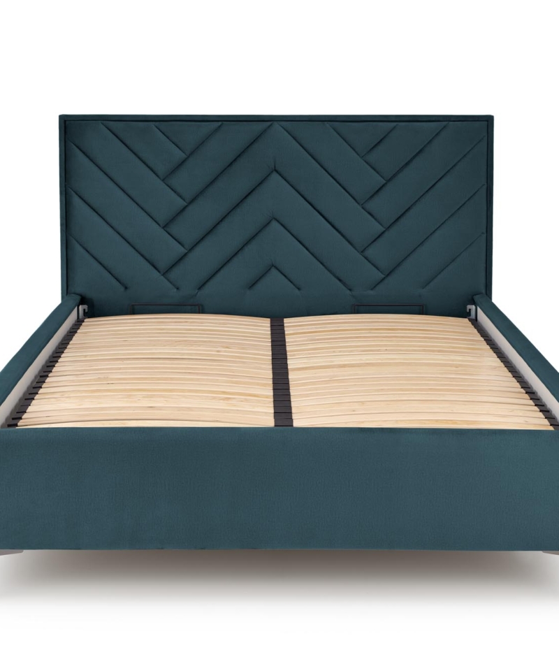 W-1 headboard for the MODULO bed with a container for bedding and a raised frame, dimensions: 175/8/120cm, material: cloth – velvet, color: dark green (Monolith 37), To complete the complete bed, order a bed body, headboard and legs to bed.
