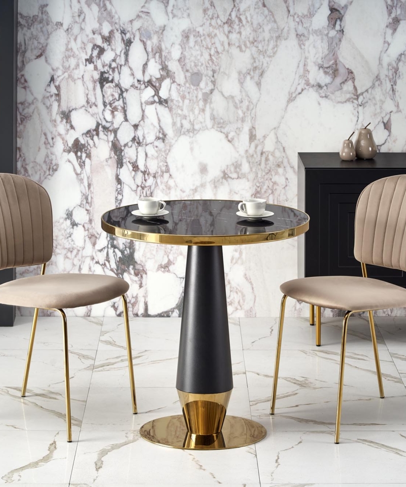 MOLINA round table, black marble / black / gold