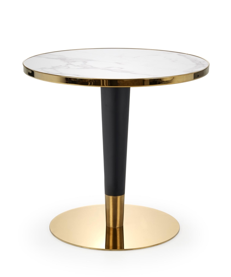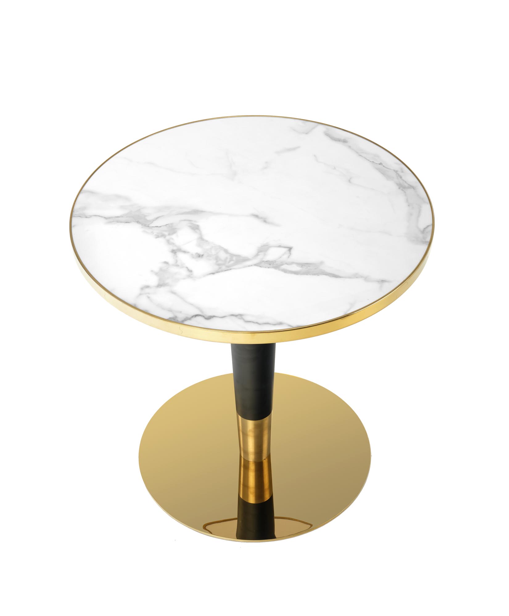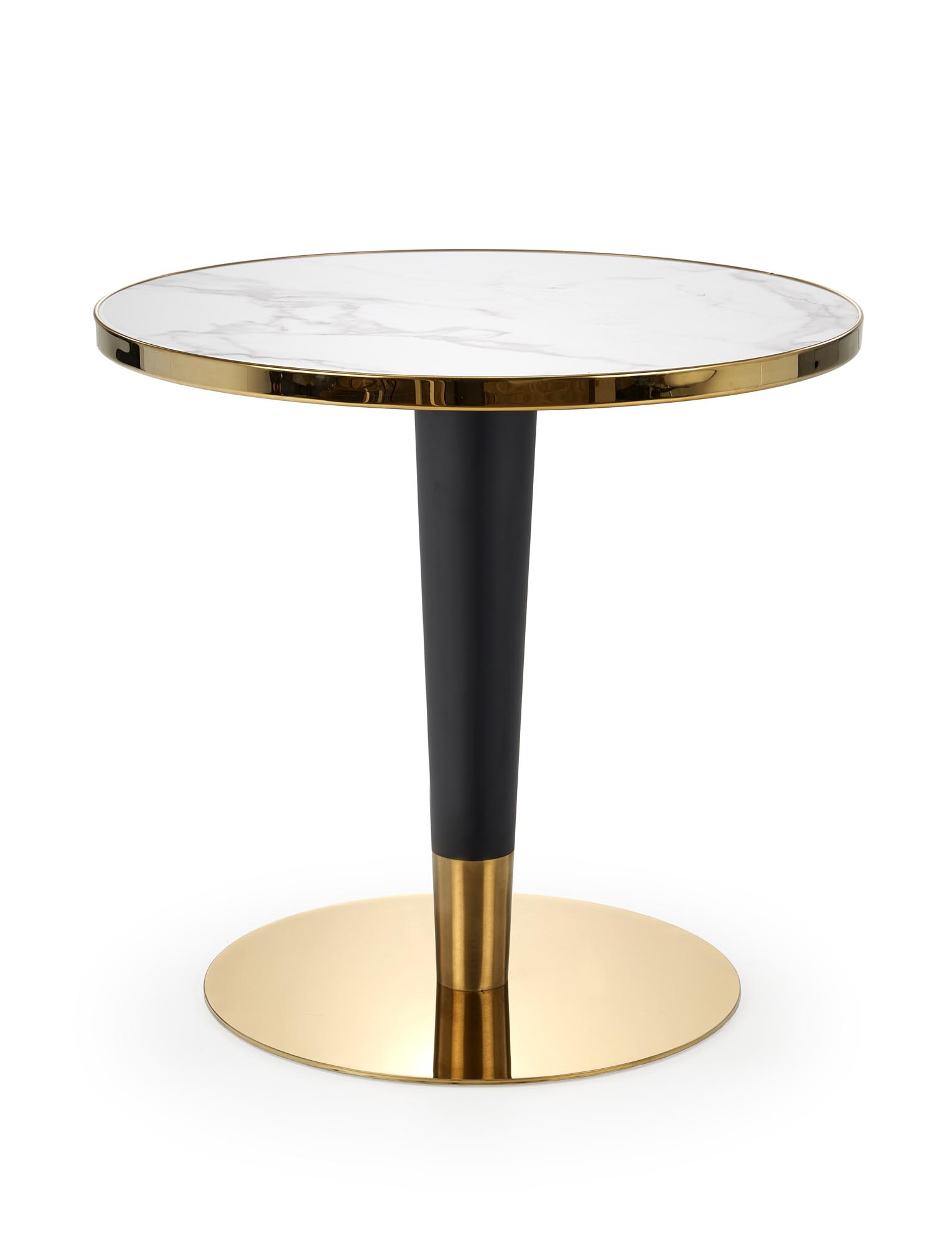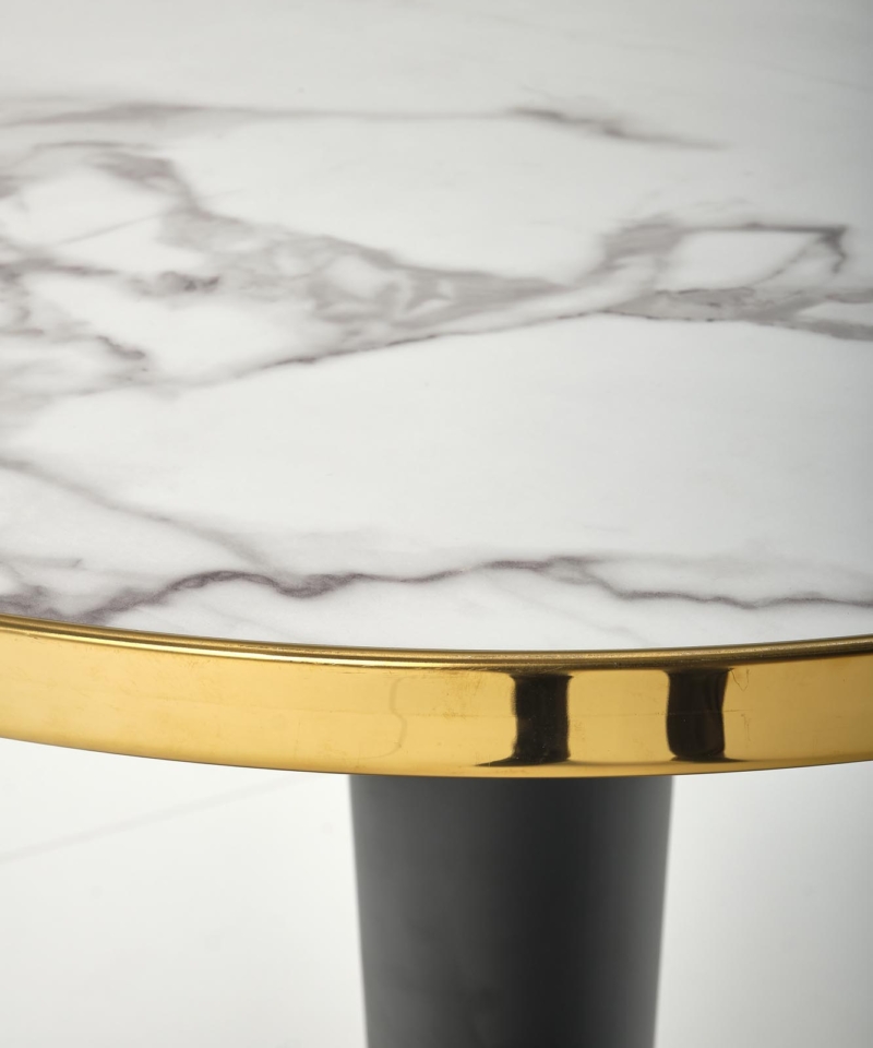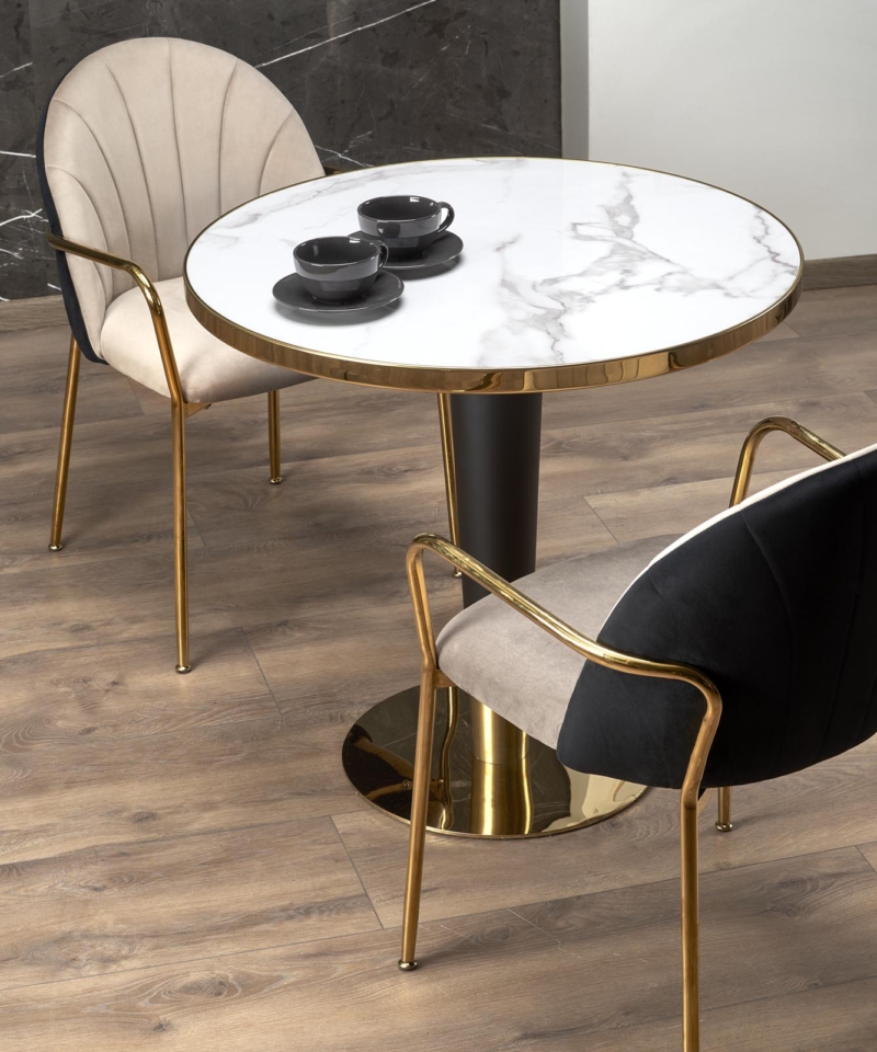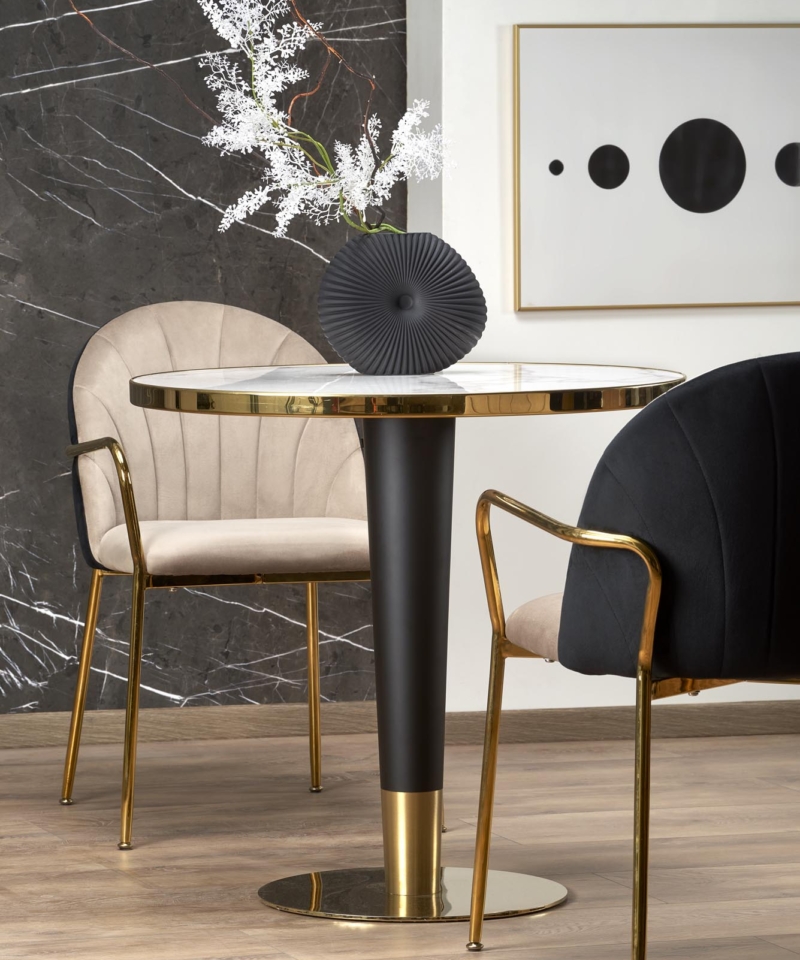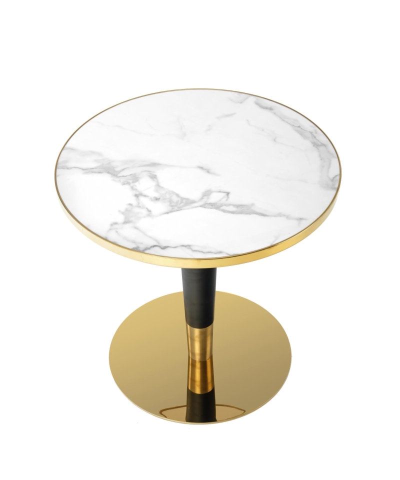 dimensions: fi79/74 cm, material: veneered MDF / powder coated steel / stainless steel, color: top – white marble, legs – black / gold