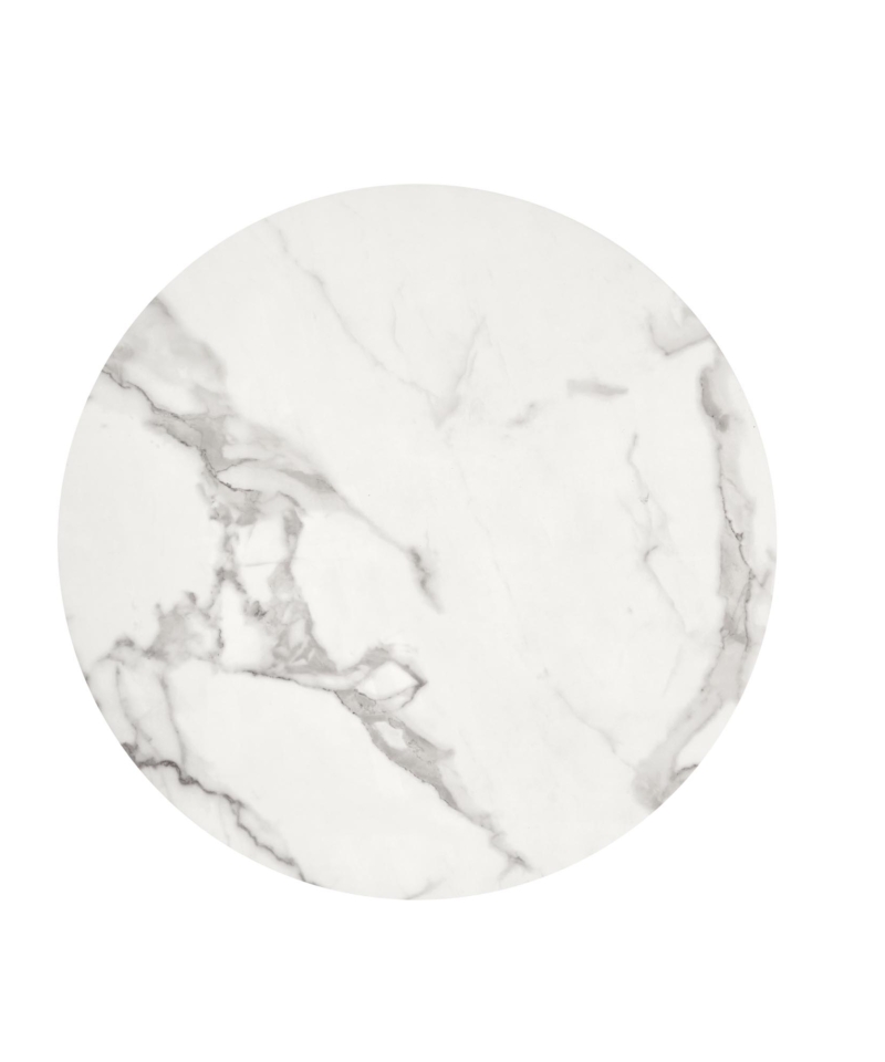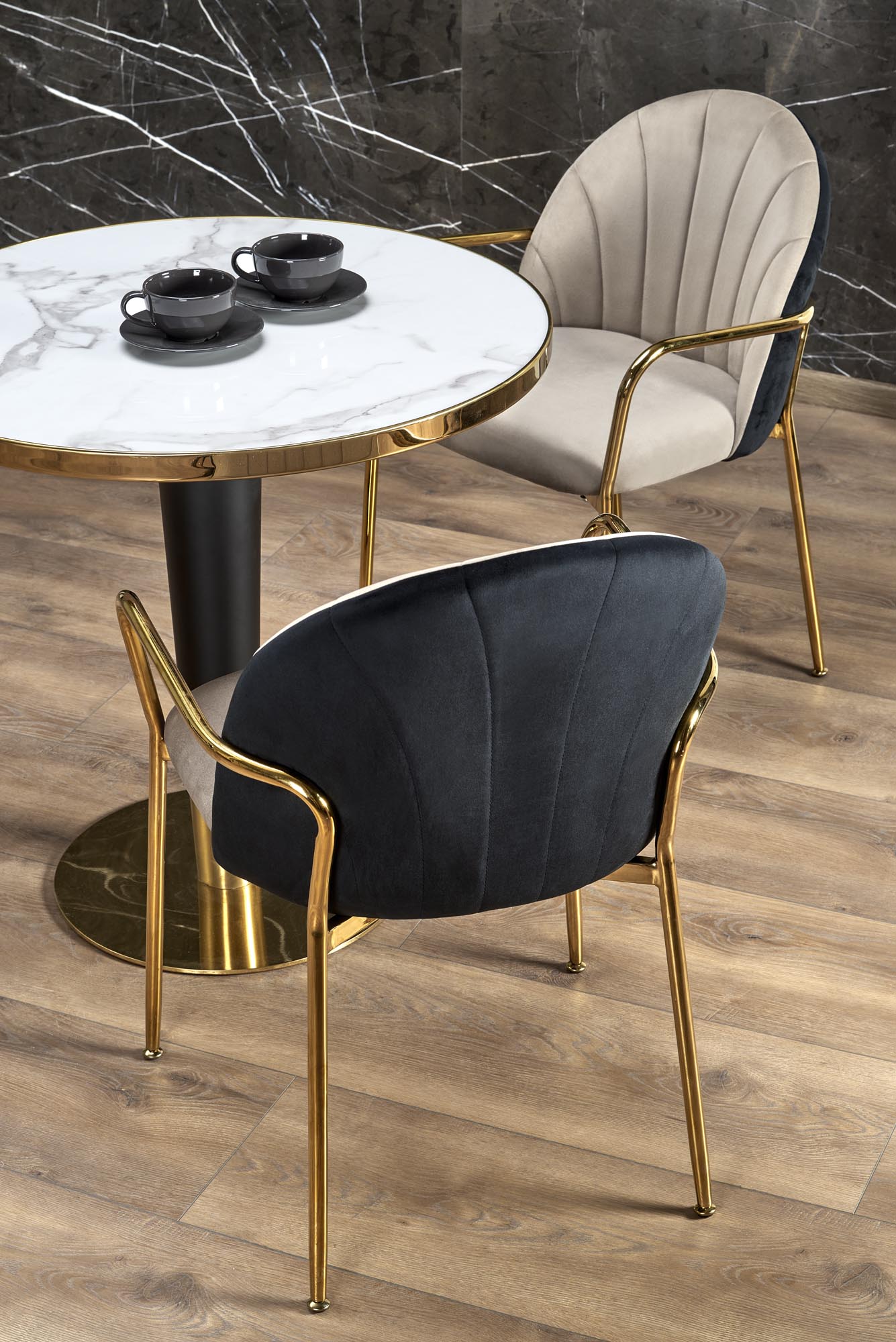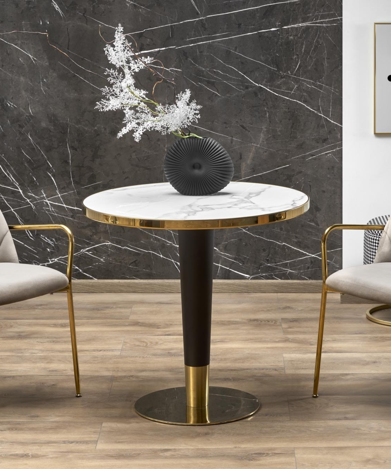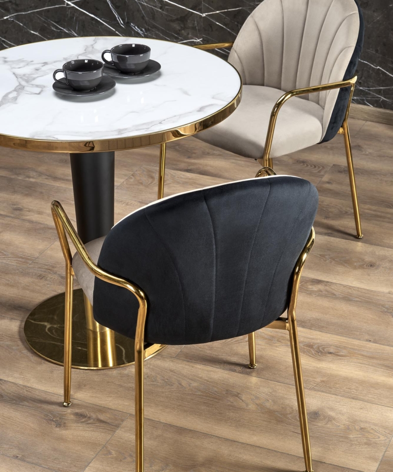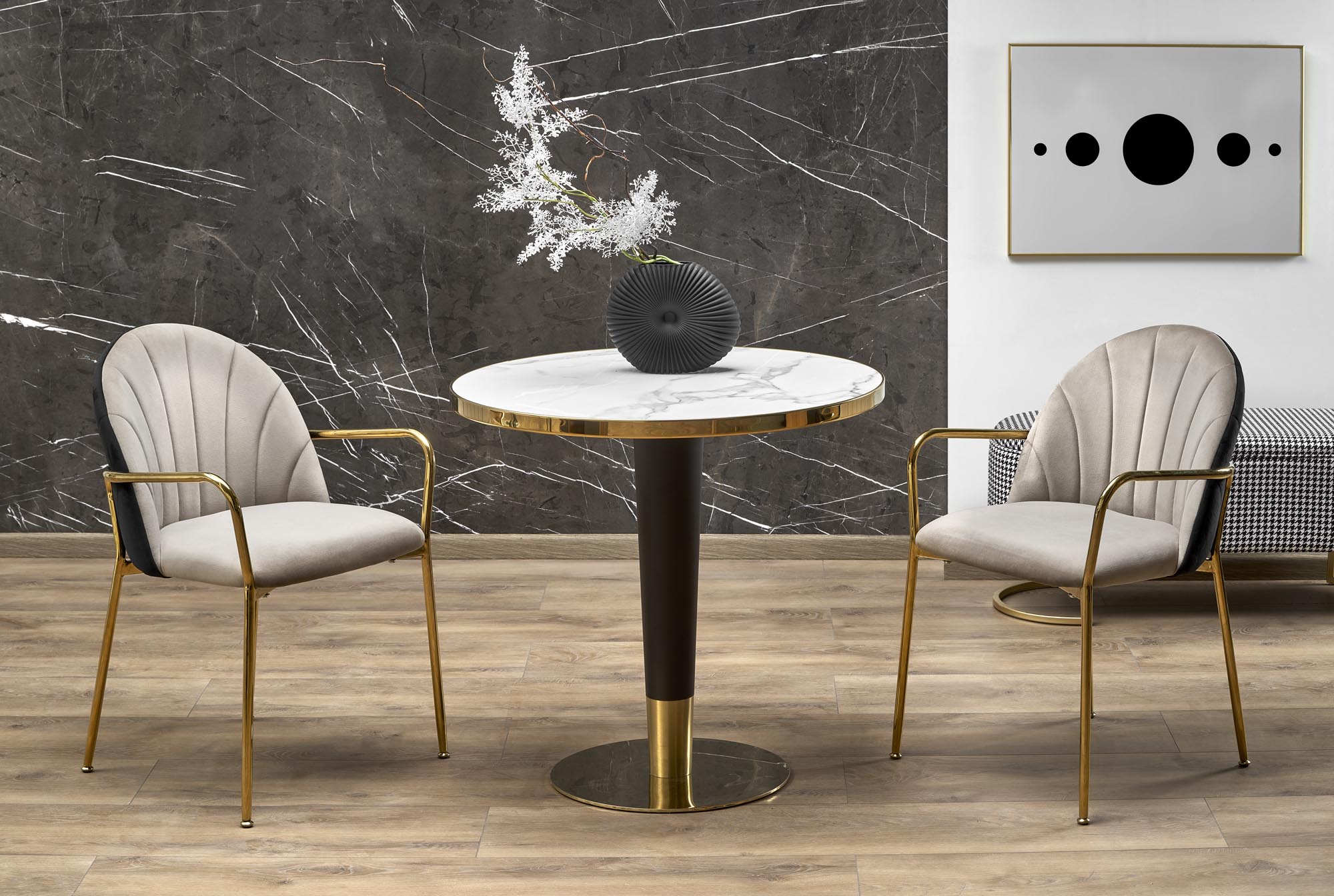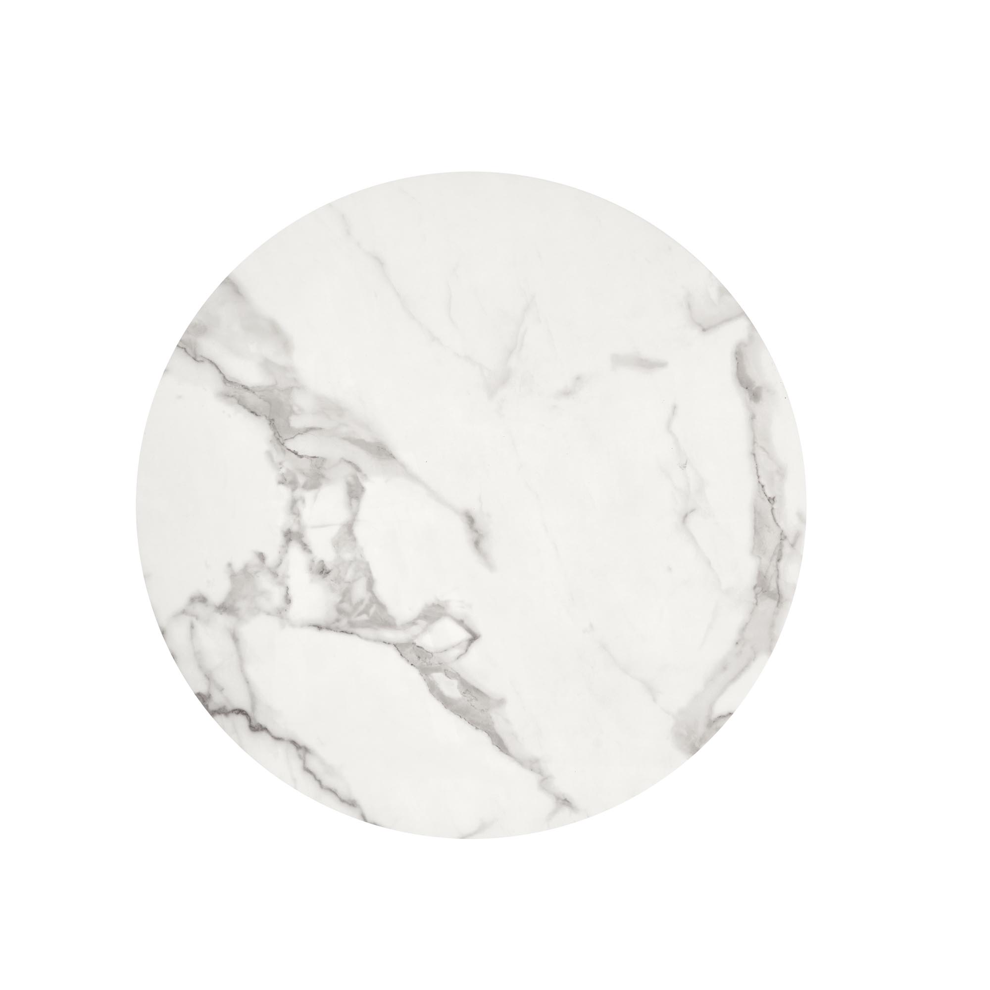 dimensions: fi79/74 cm, material: veneered MDF / powder coated steel / stainless steel, color: top – white marble, legs – black / gold