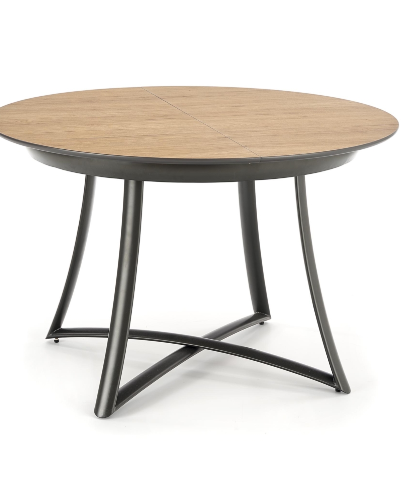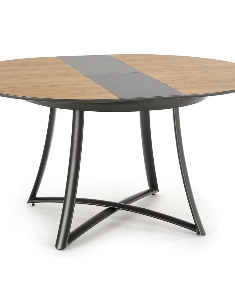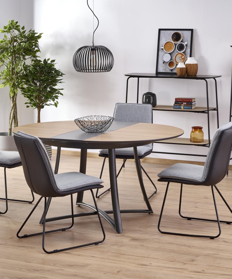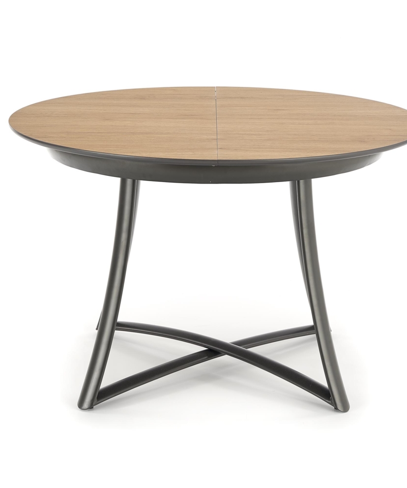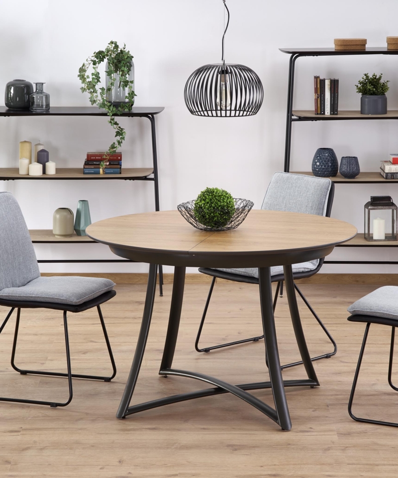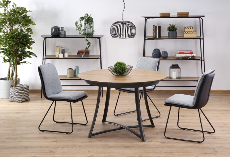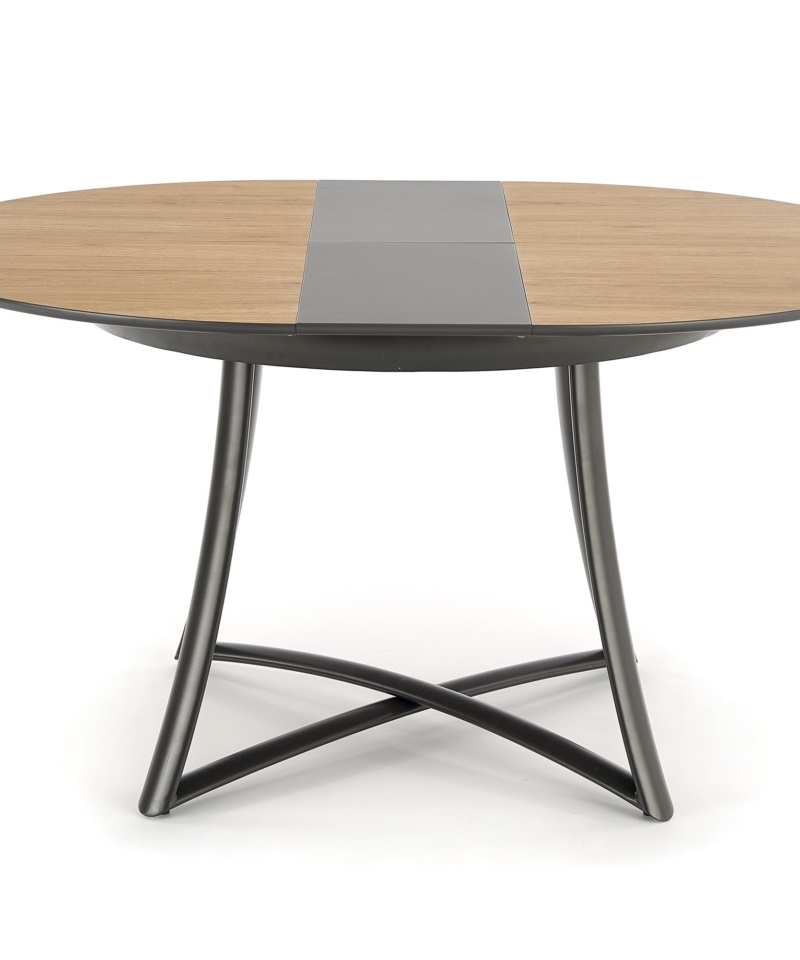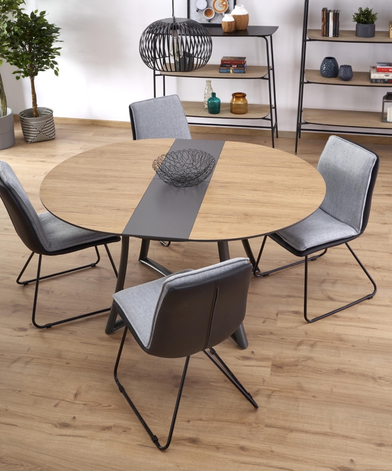 dimensions: 118÷148/118/76 cm, extension table, material: laminated MDF / lacquered MDF / powder coated steel, color: top – golden oak / grey, legs – anthracite