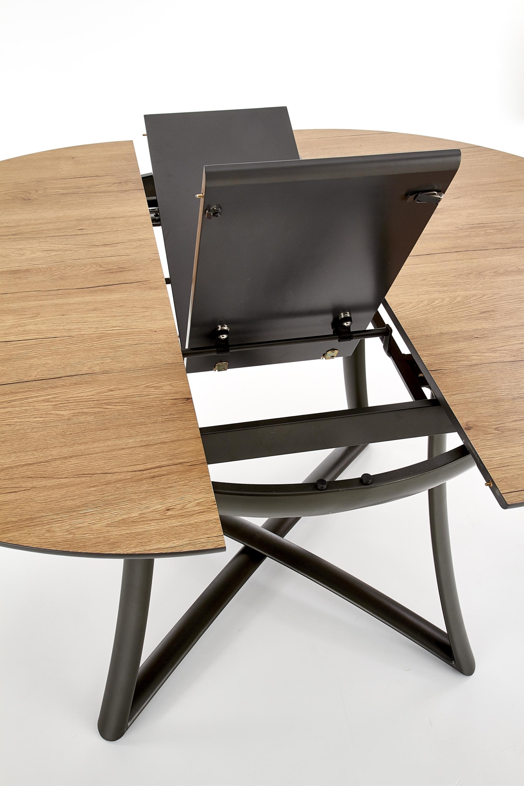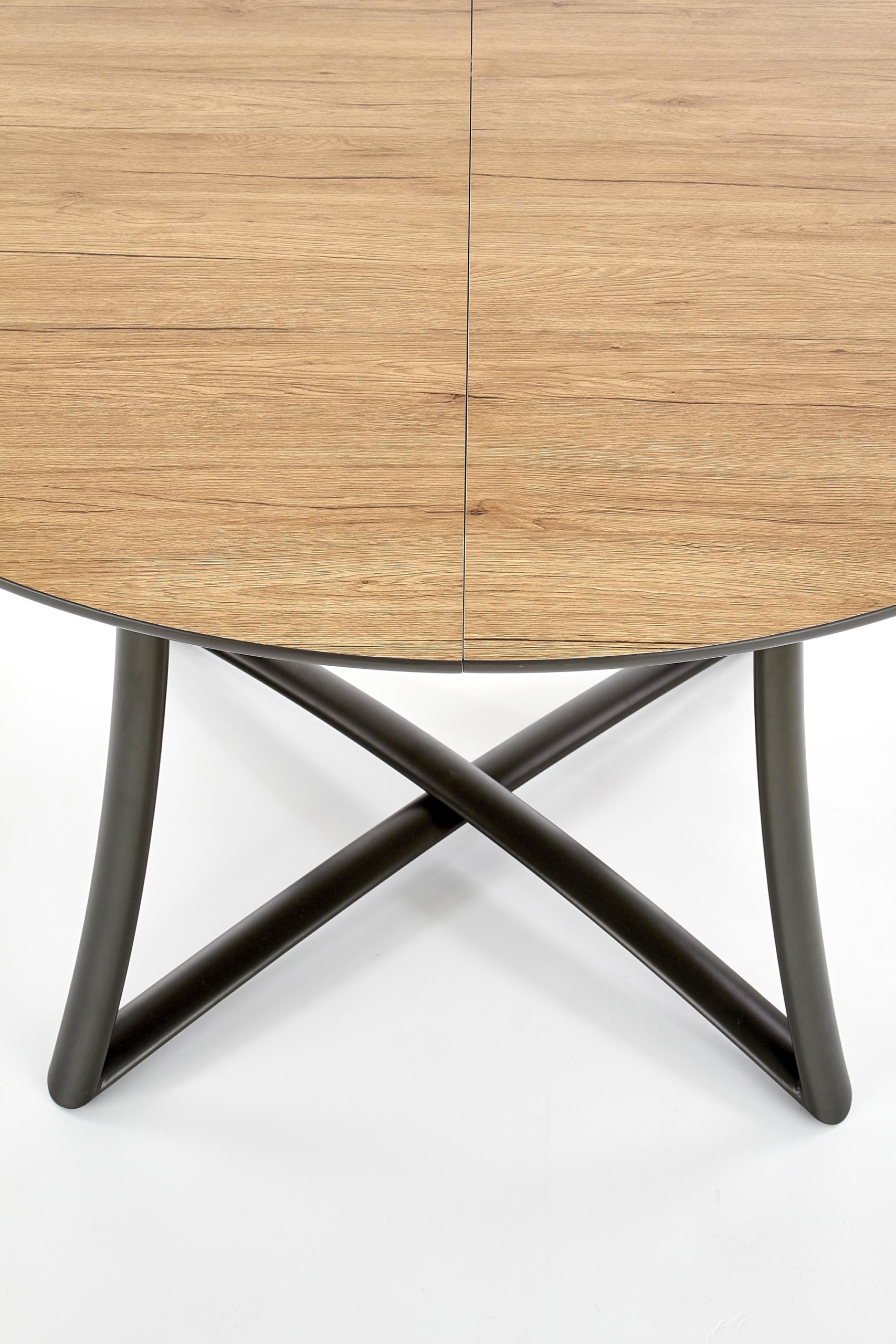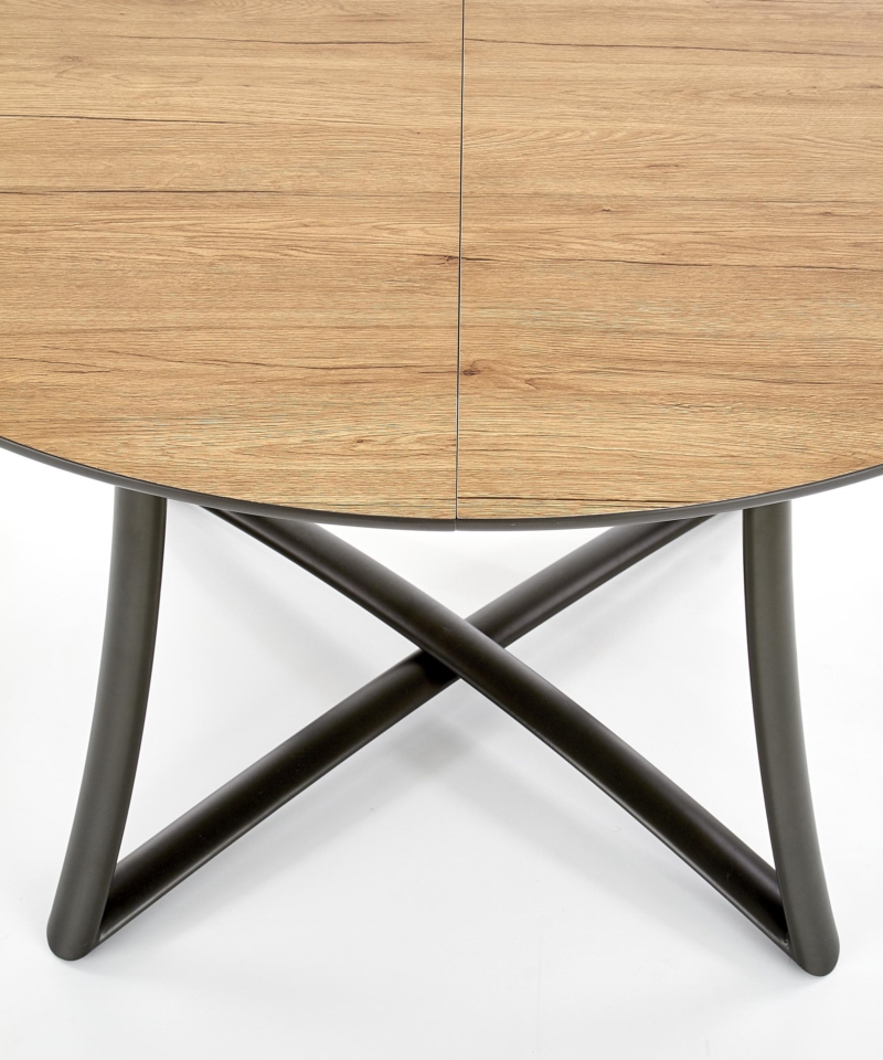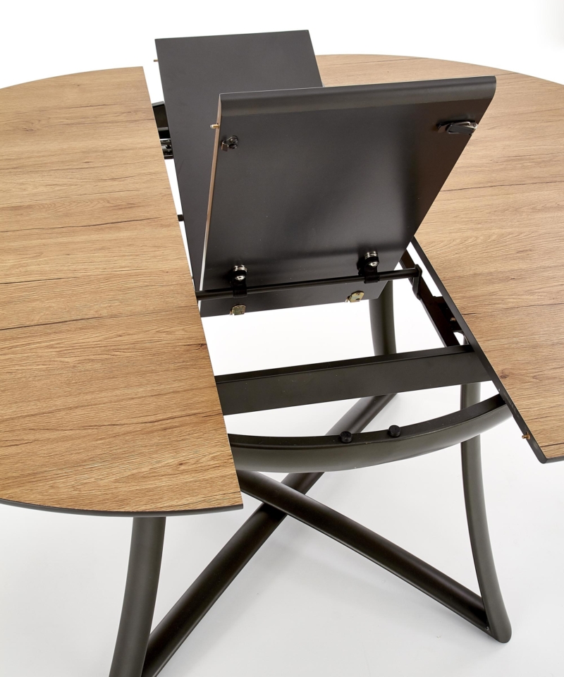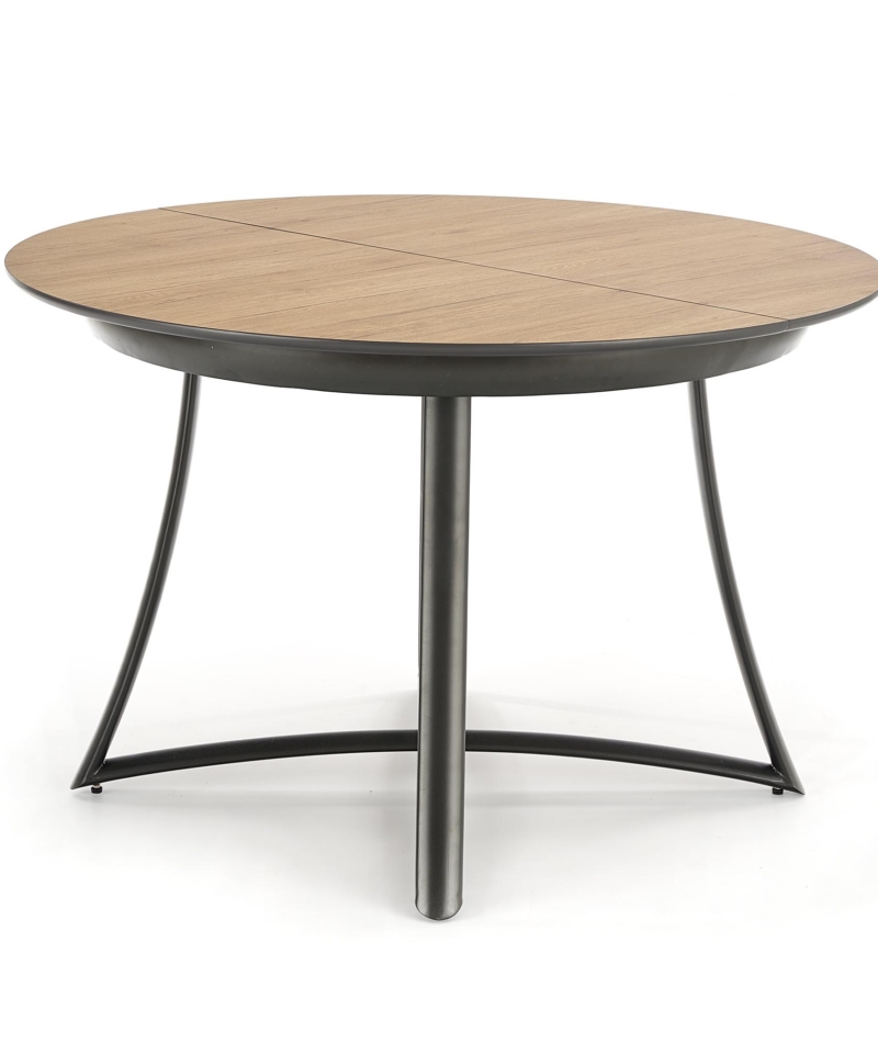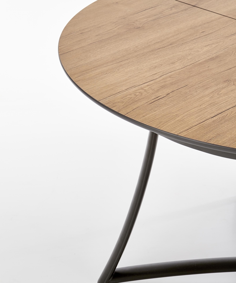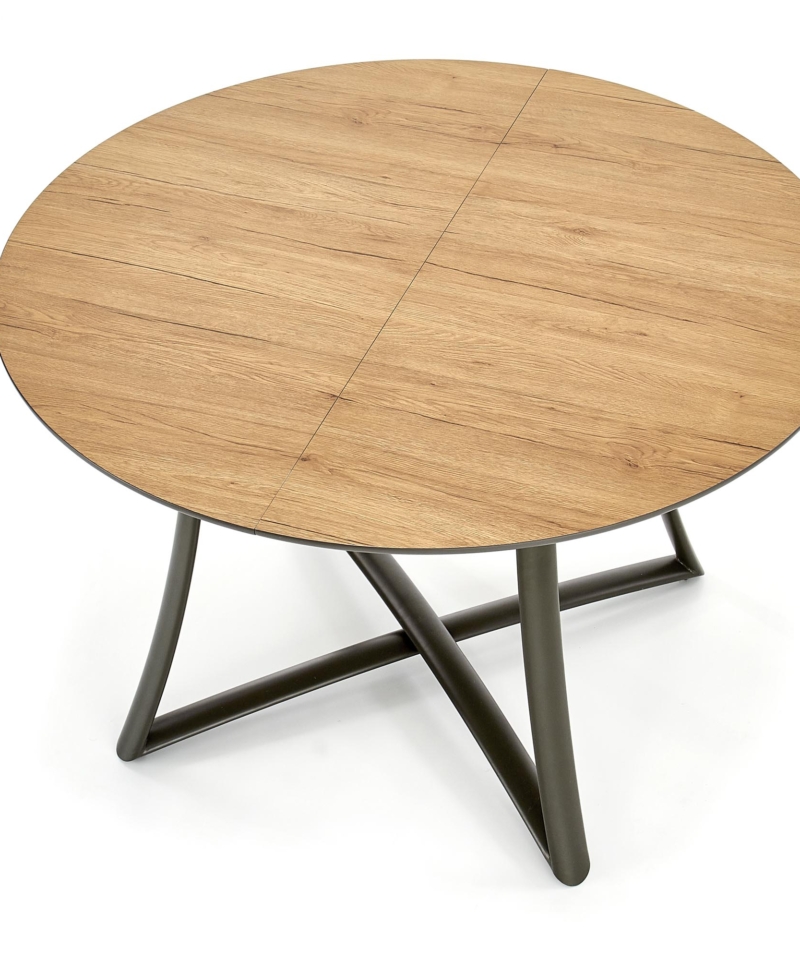 dimensions: 118÷148/118/76 cm, extension table, material: laminated MDF / lacquered MDF / powder coated steel, color: top – golden oak / grey, legs – anthracite