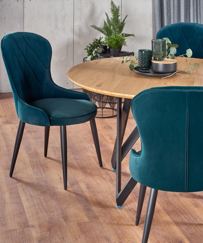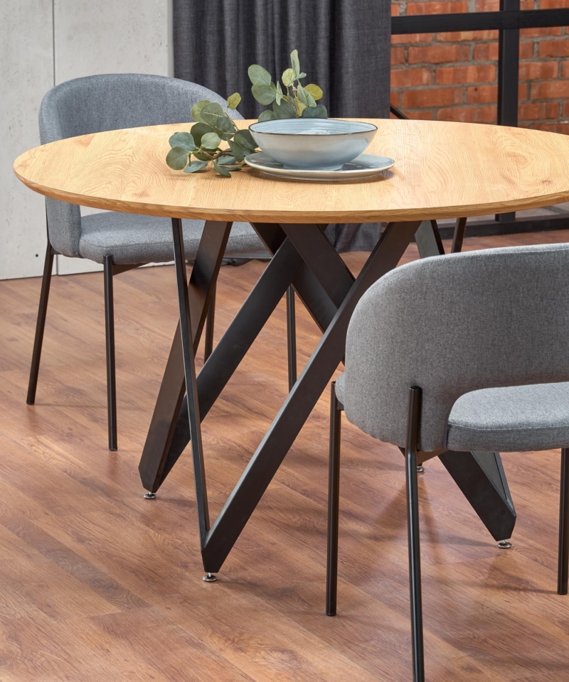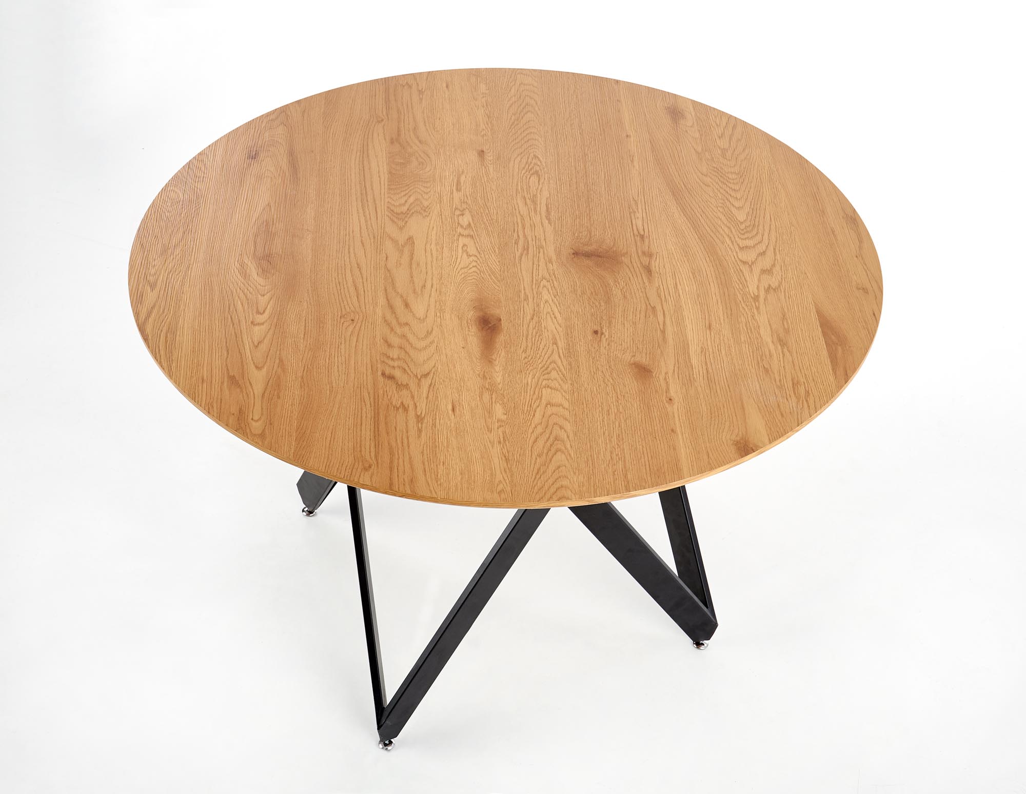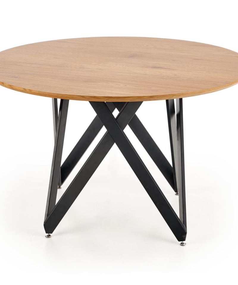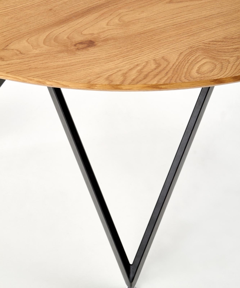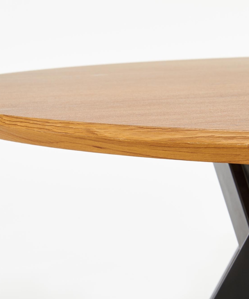 dimensions: 120/75 cm, material: laminated MDF / powder coated steel, color: top – golden oak, legs – black