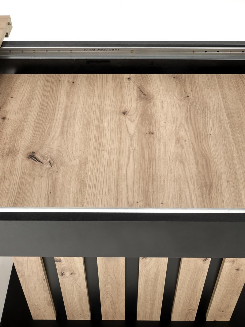 chest, dimensions: 160/40/86 cm, material: laminated MDF / laminated chipboard / powder coated steel, color: artisan oak / black