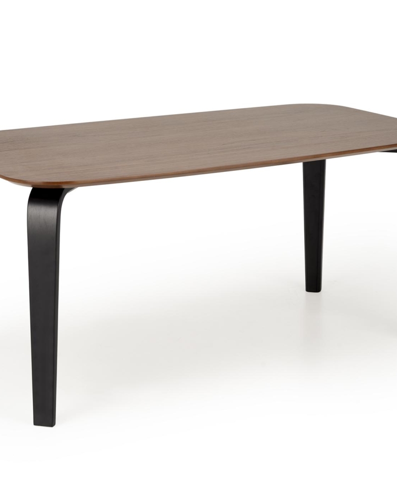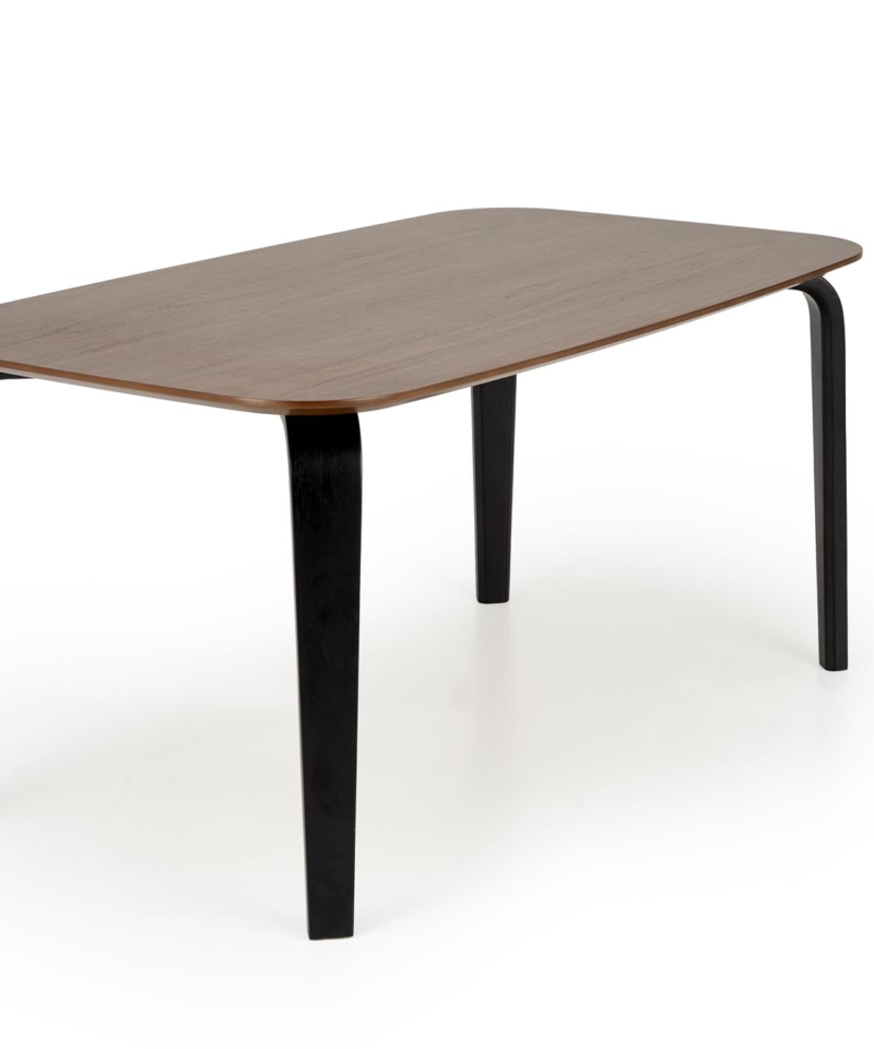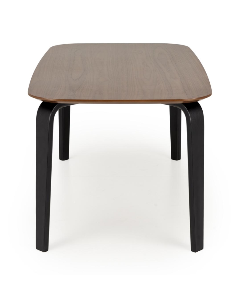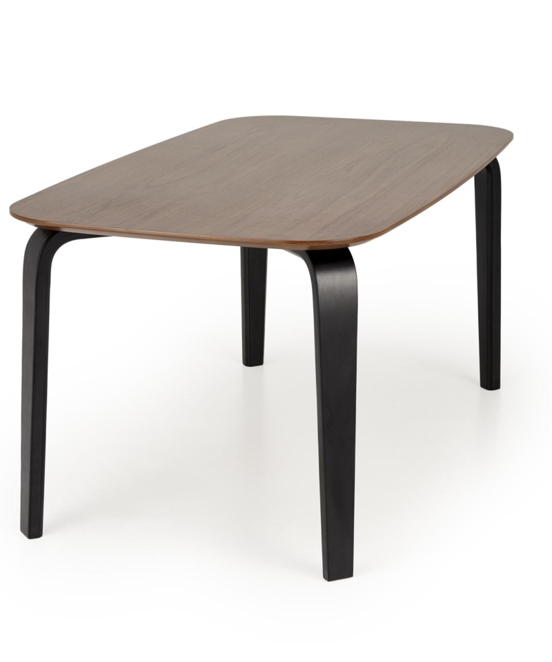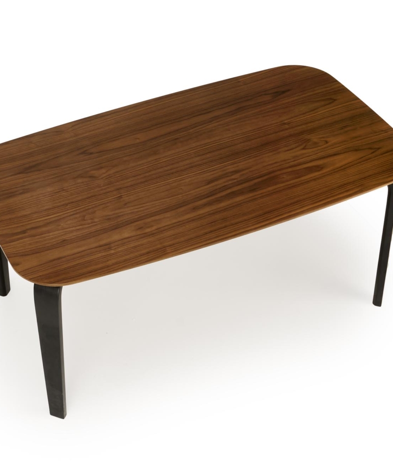 dimensions: 160/90/75/140 cm; material: MDF + natural veneer / solid rubber wood, color: top – walnut, legs – black