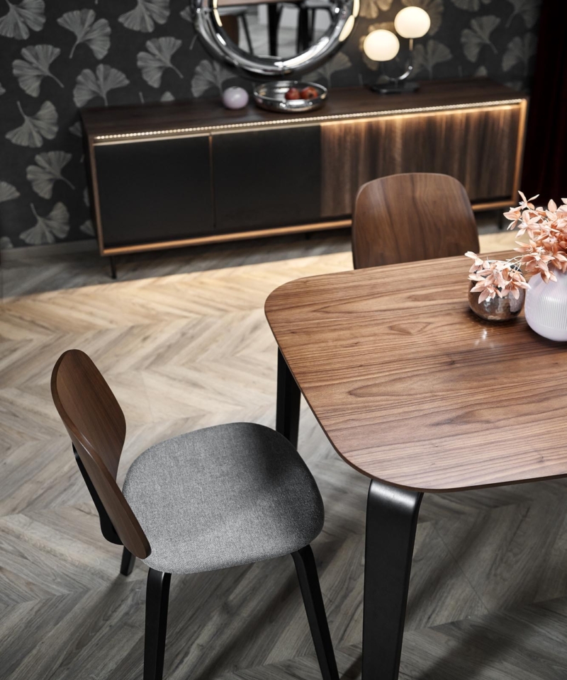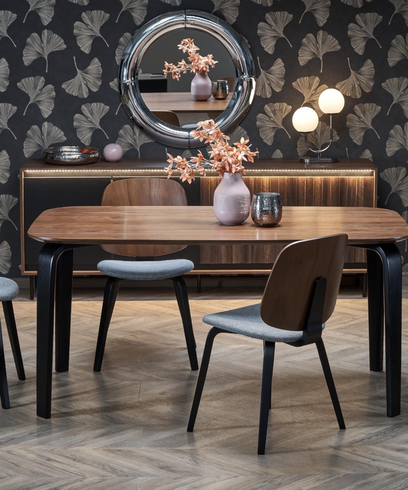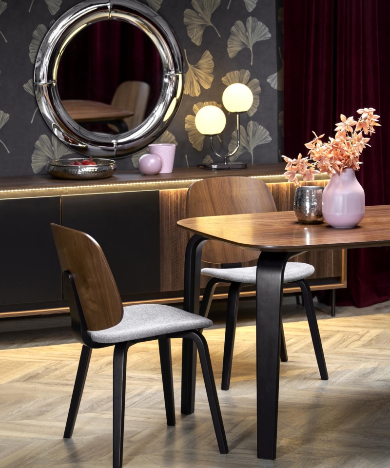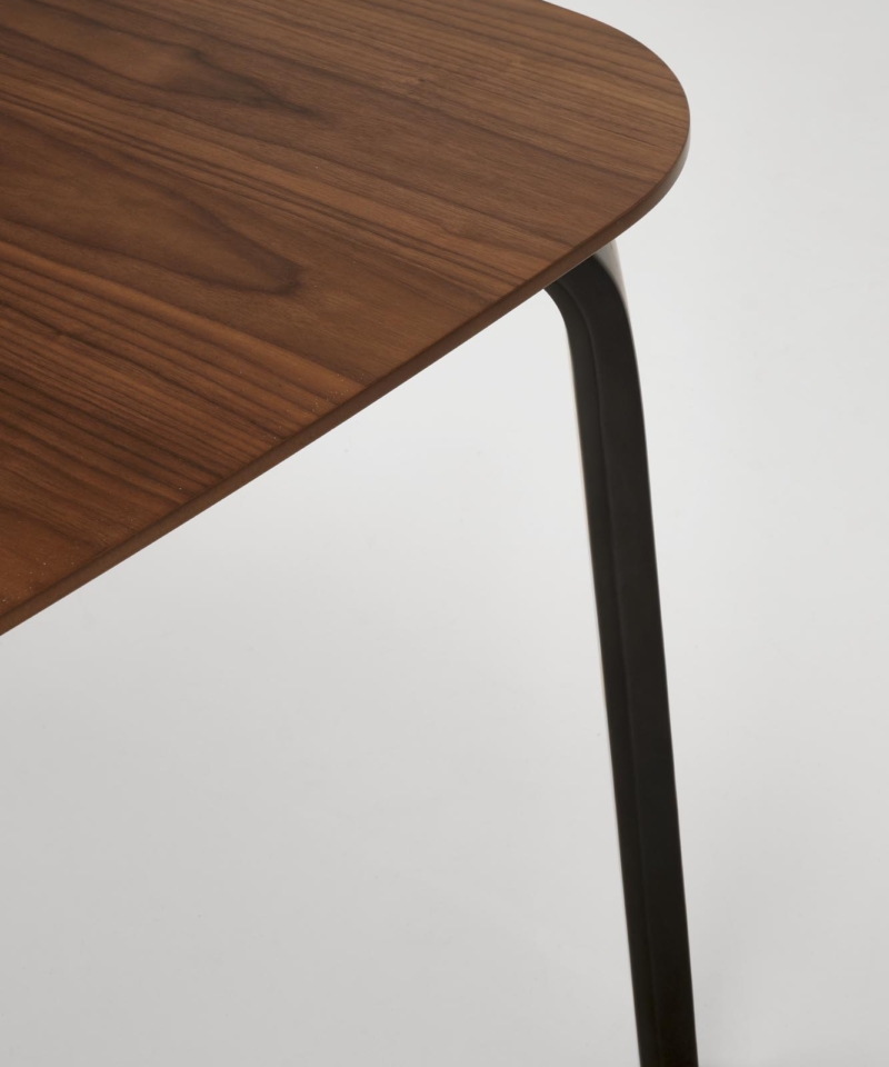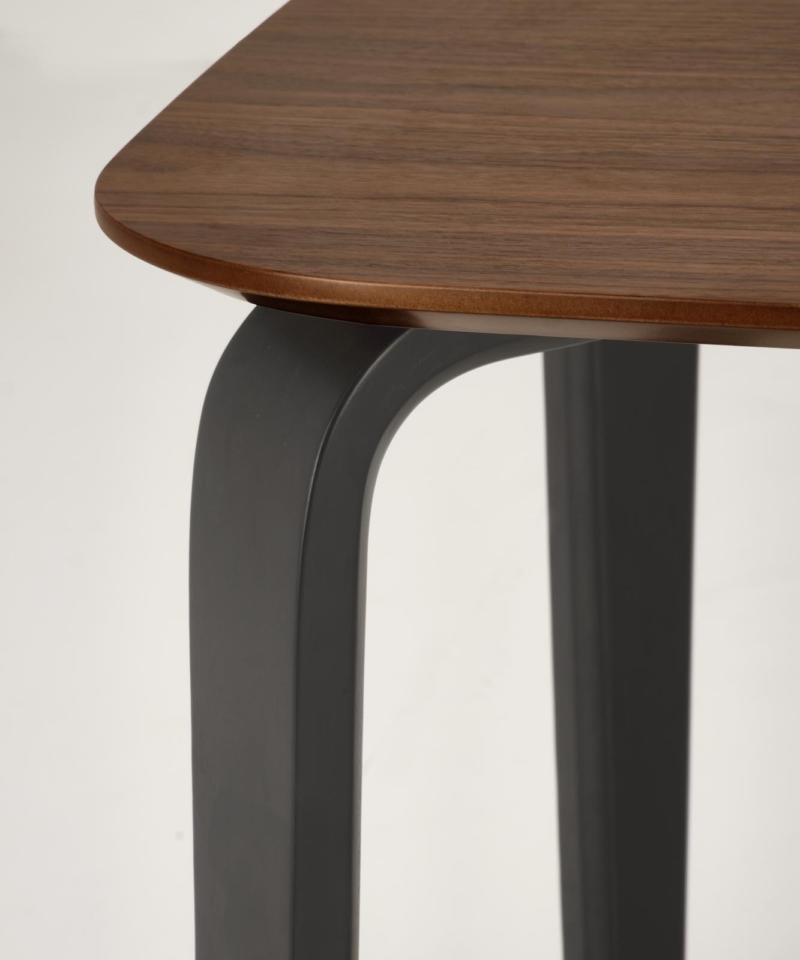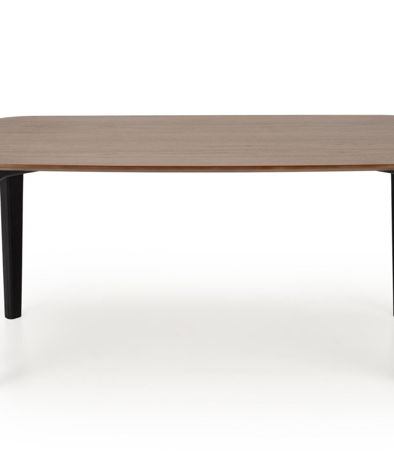 dimensions: 160/90/75/140 cm; material: MDF + natural veneer / solid rubber wood, color: top – walnut, legs – black
