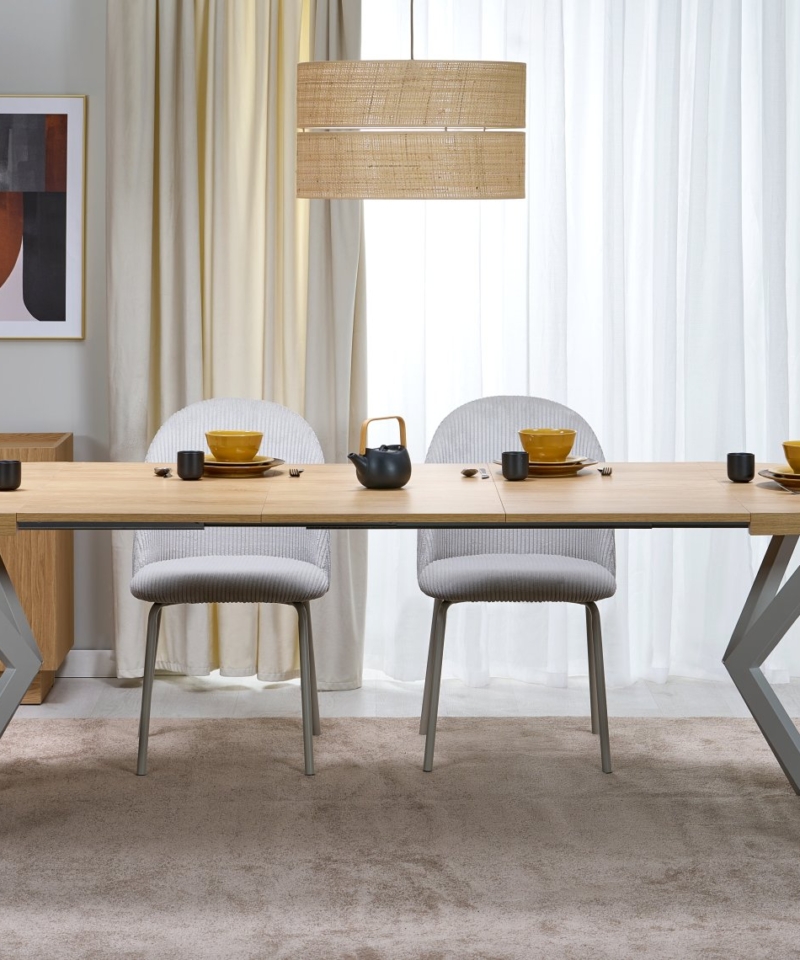 dimensions: fi100-250/100/75 cm, extension table, material: laminated chipboard / powder coated steel, color: hikora oak / cashmere