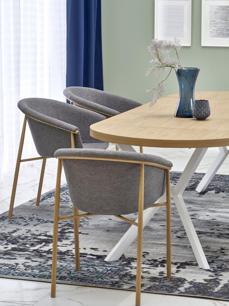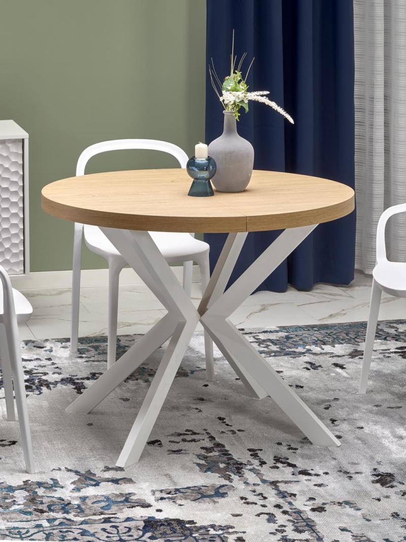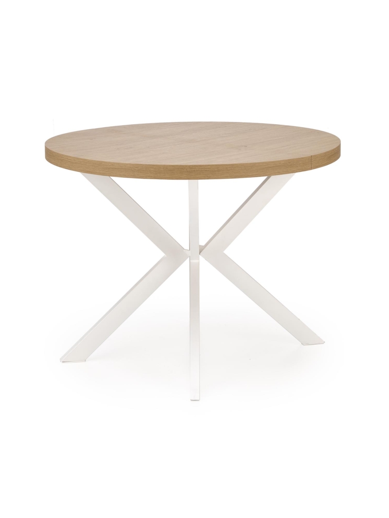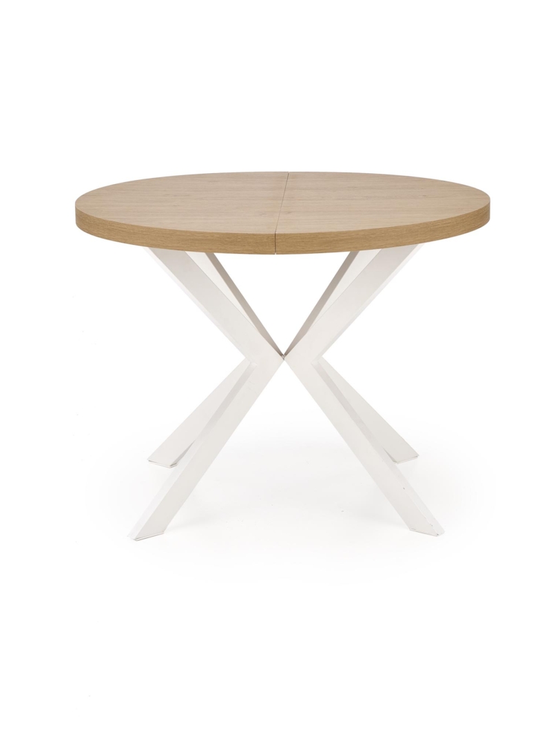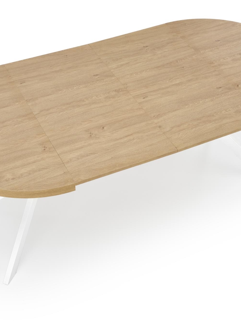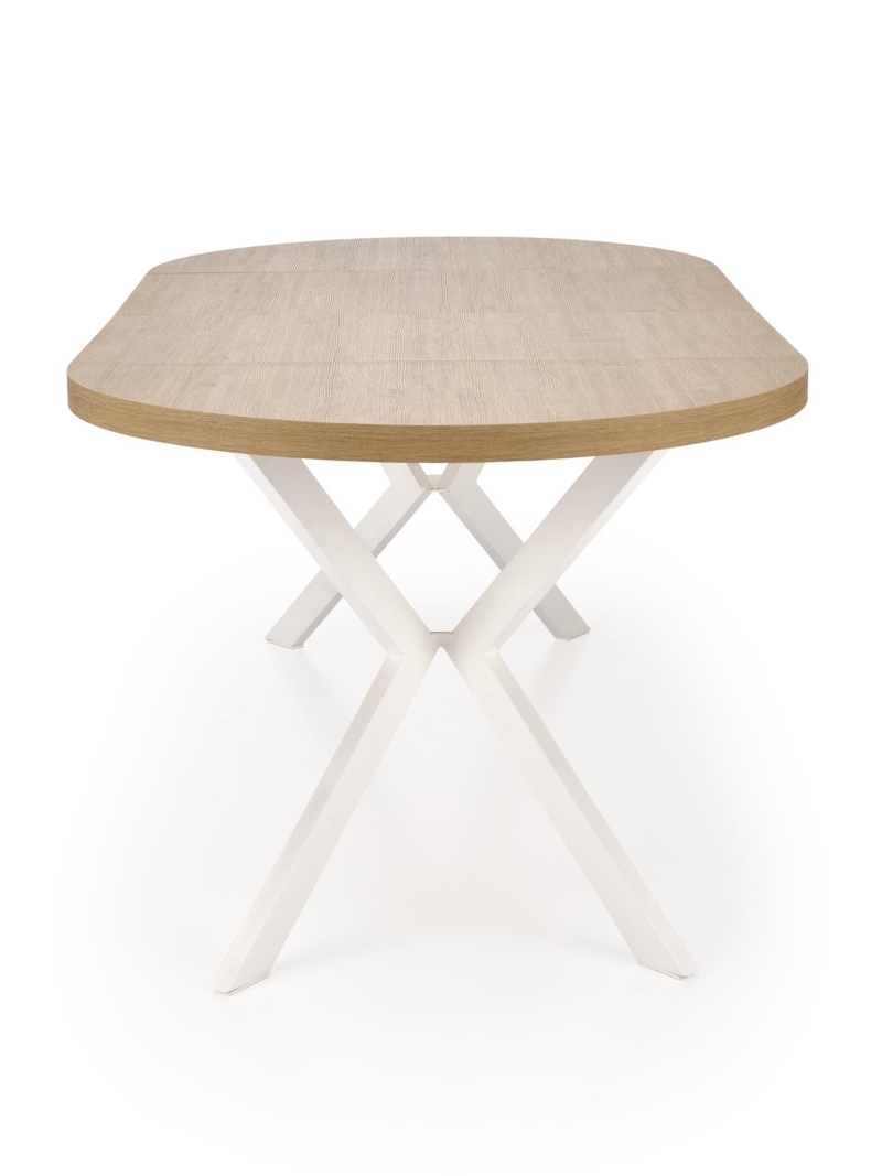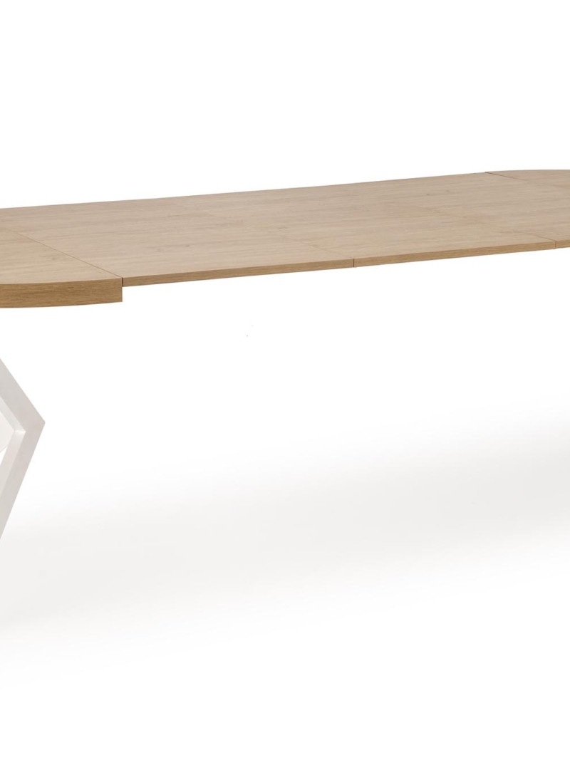 dimensions: fi100-250/100/75 cm, extension table, material: laminated chipboard / powder coated steel, color: golden oak / white