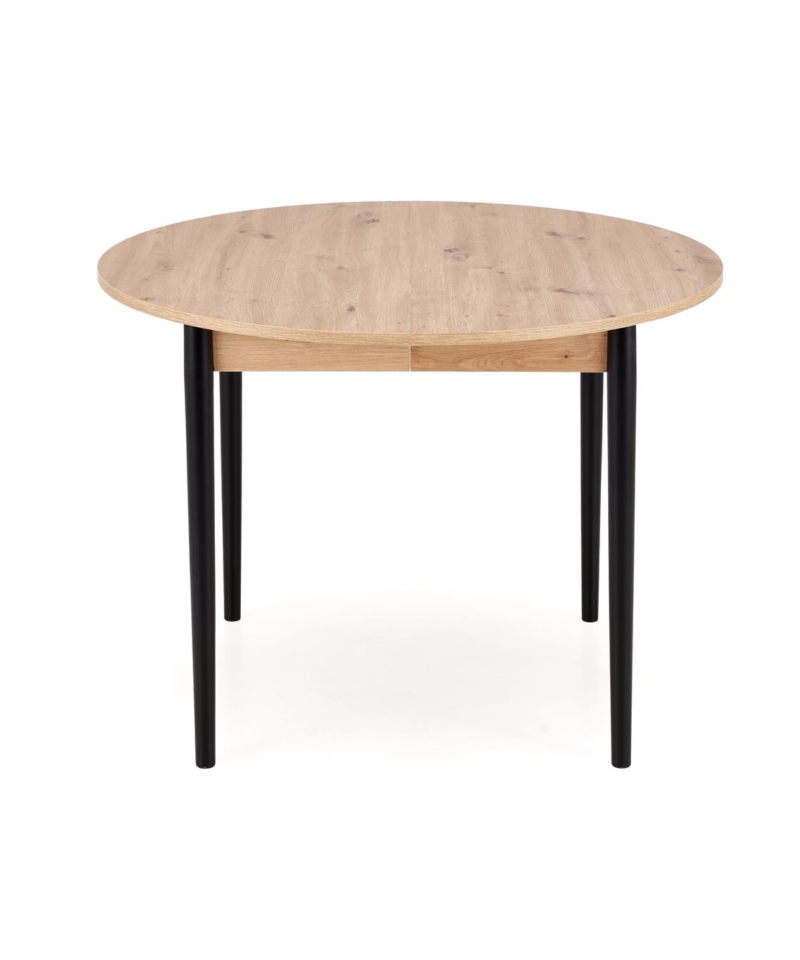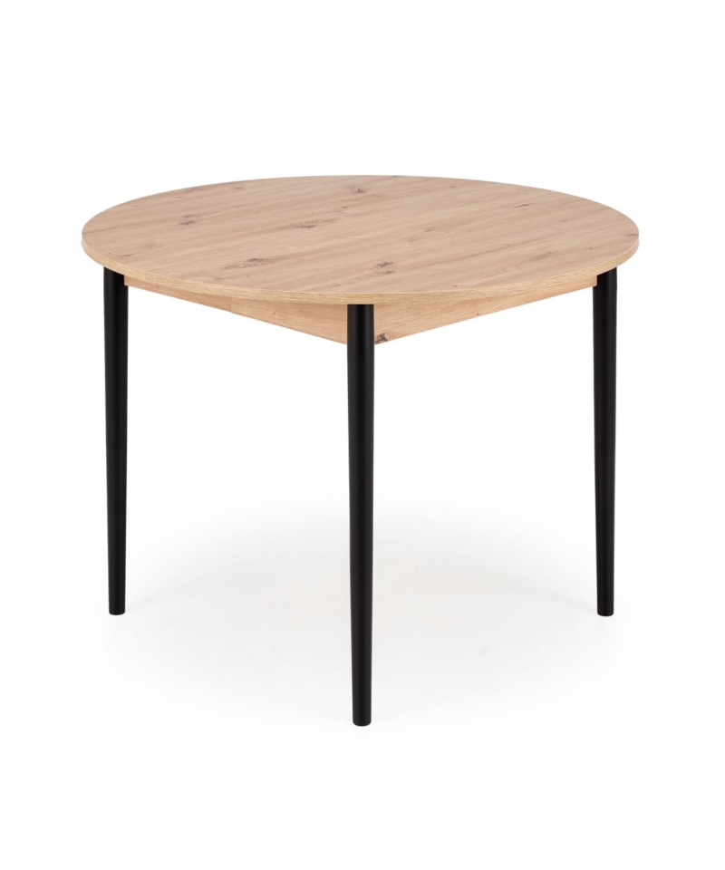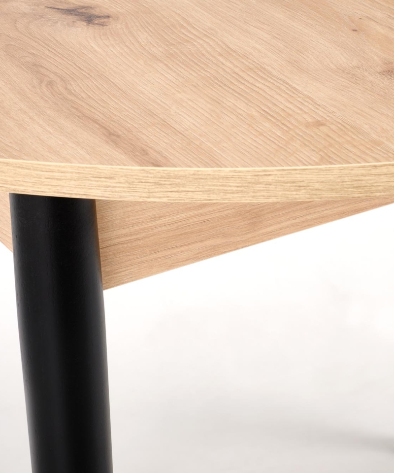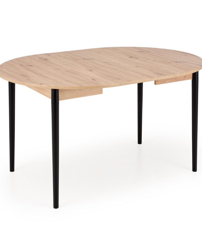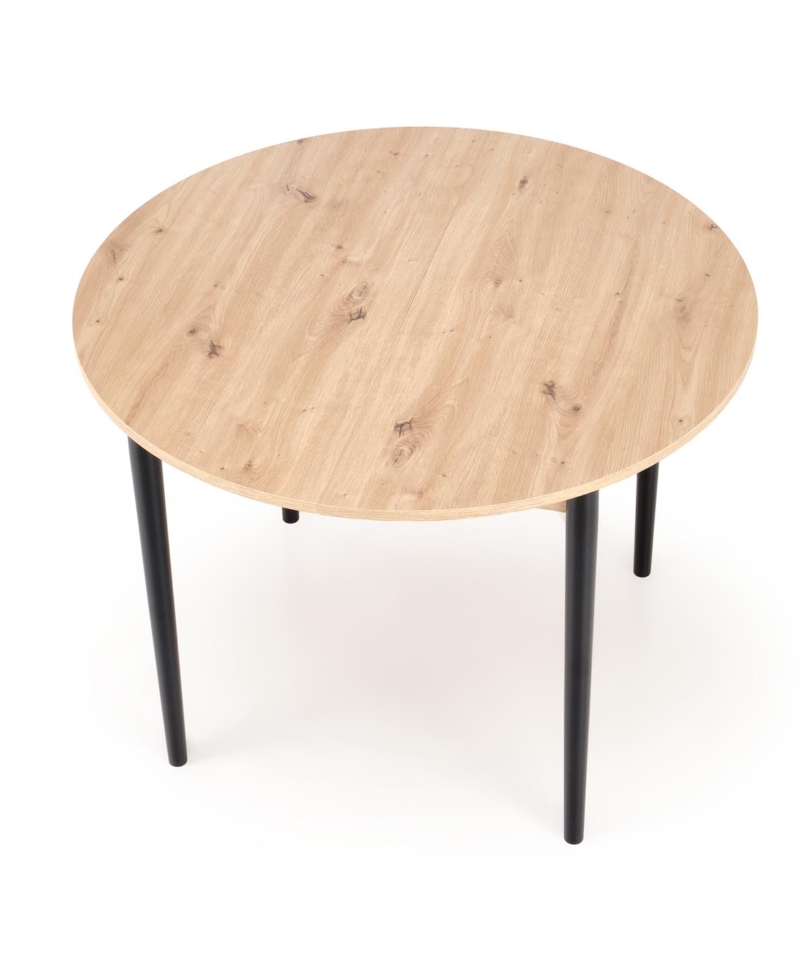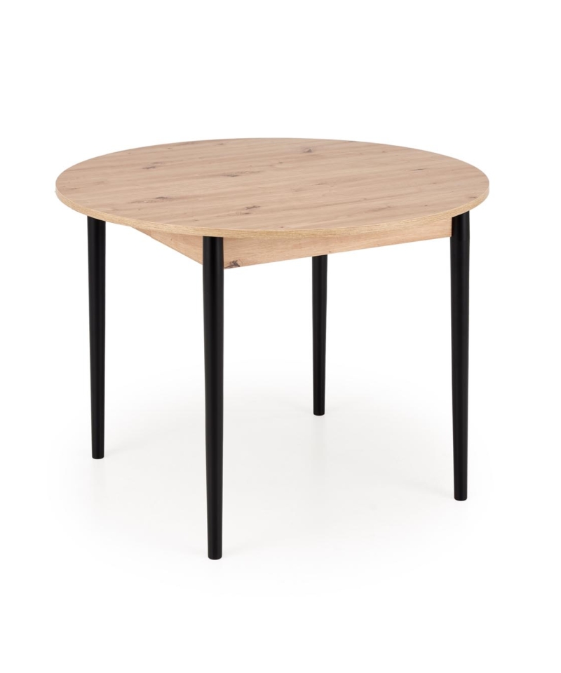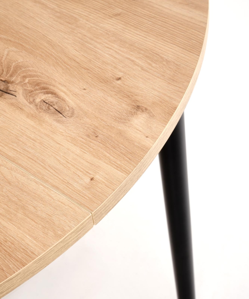 extension table, dimensions: 102-142/102/75 cm, material: laminated chipboard / solid beech wood, color: top – artisan oak, legs – black