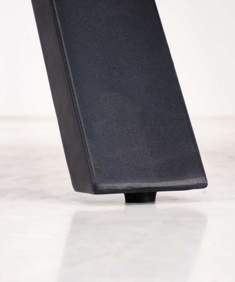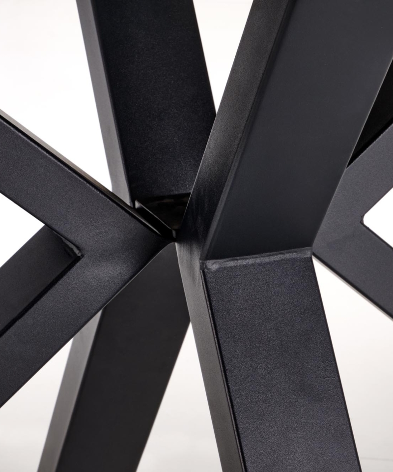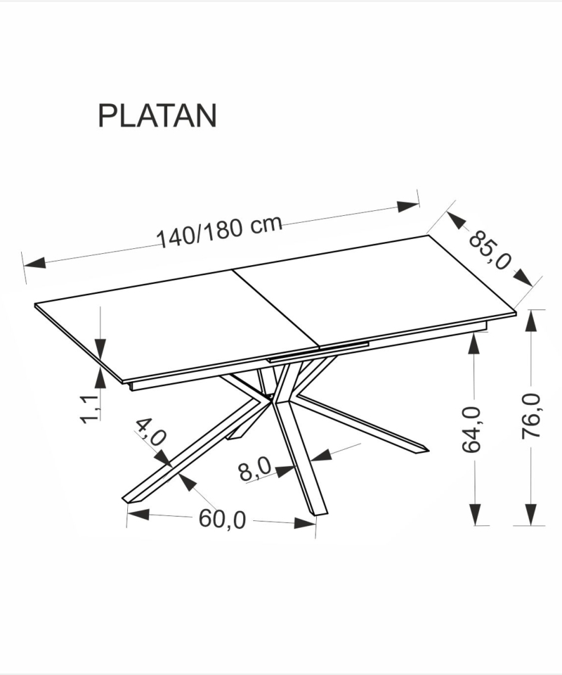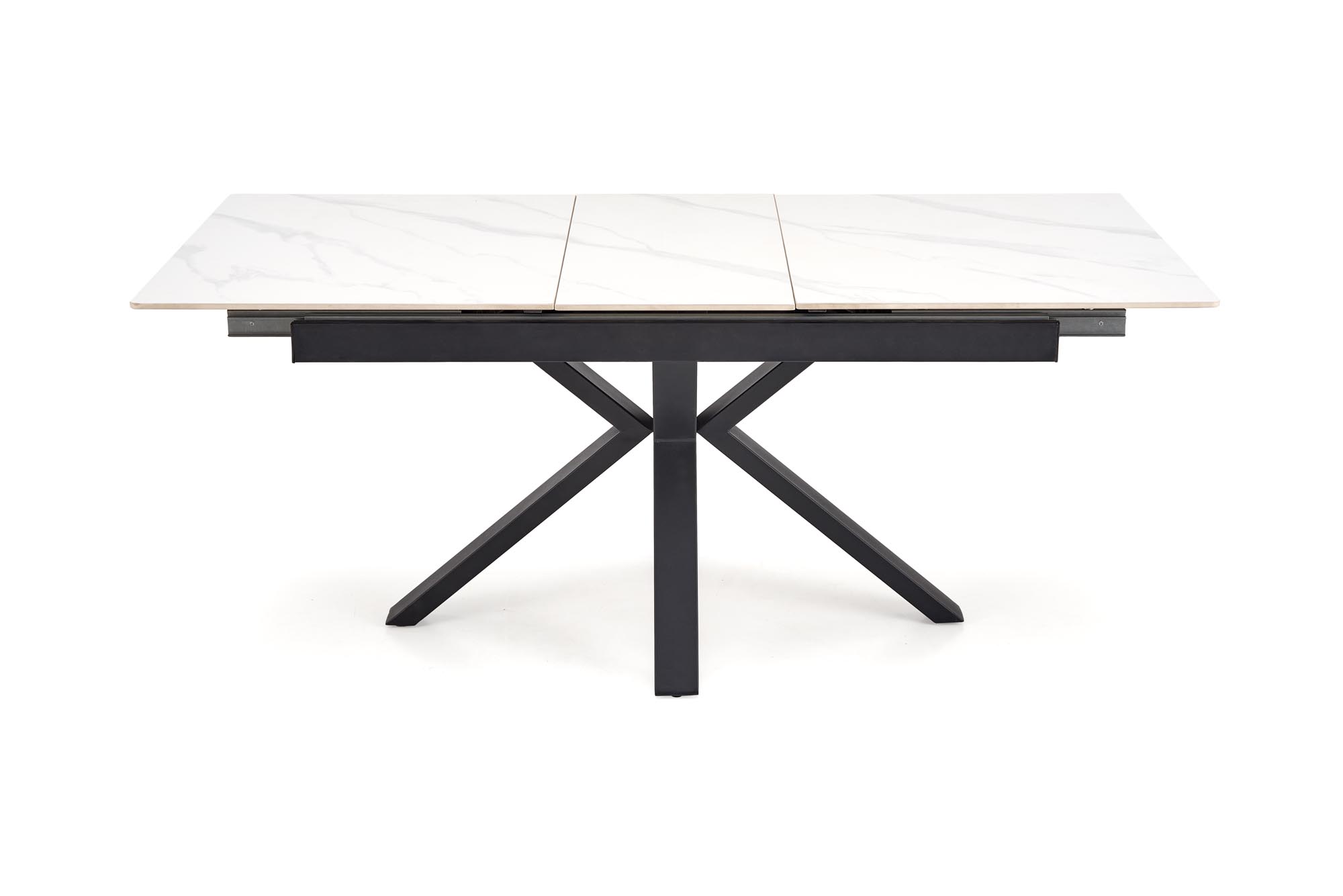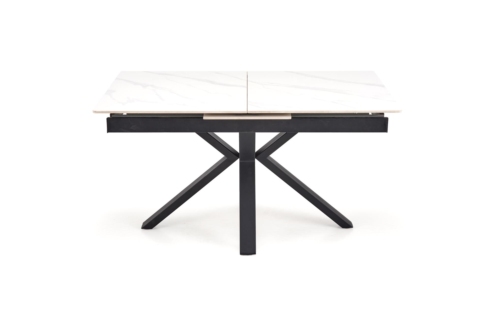dimensions: 140-180/85/76 cm, extension table, material: sintered stone / powder coated steel, color: top – white marble, legs – black