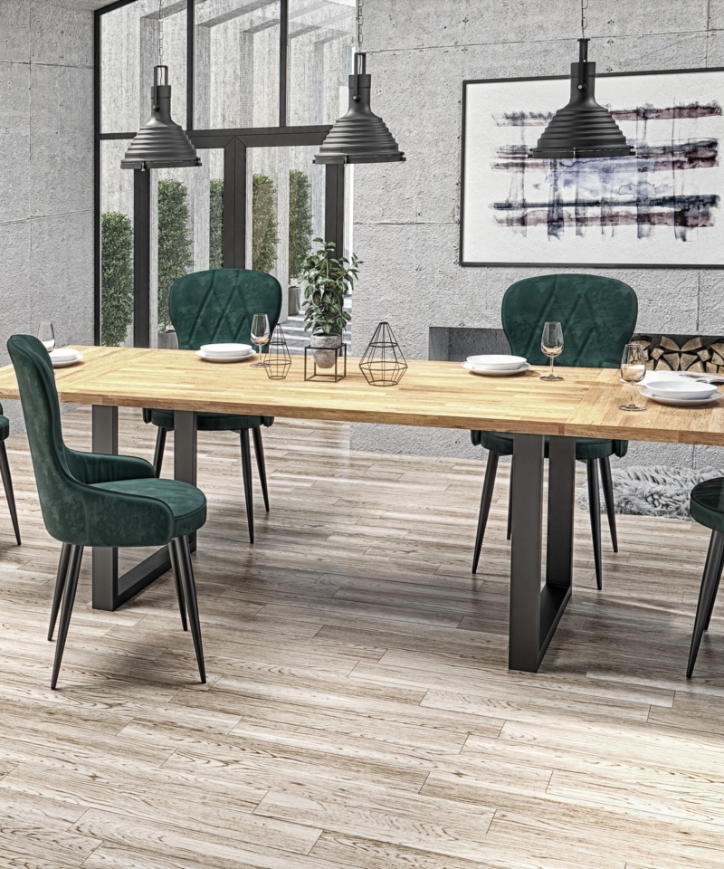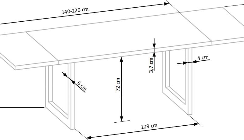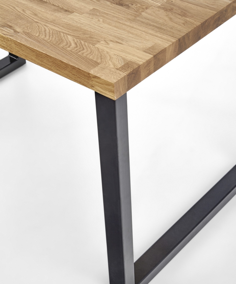 dimensions: 140/85/76 cm, material: solid oak wood / powder coated steel, color: top – natural oak, legs – black