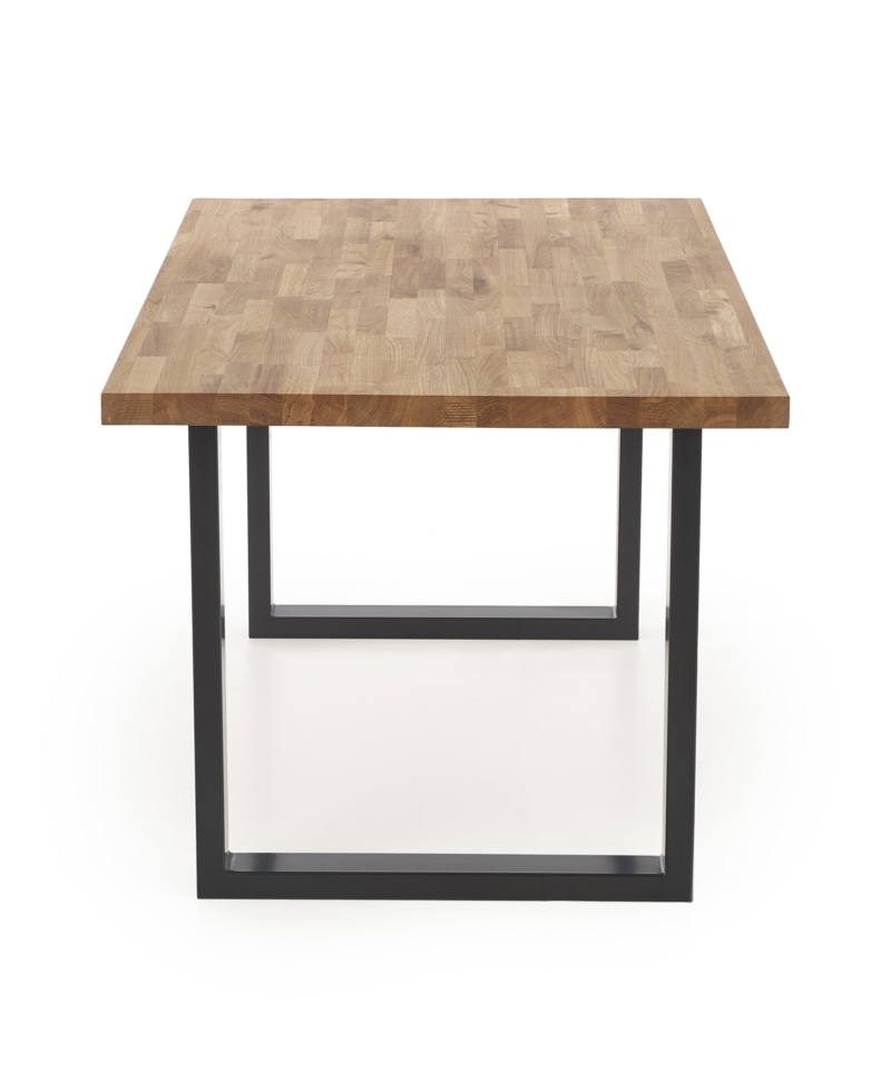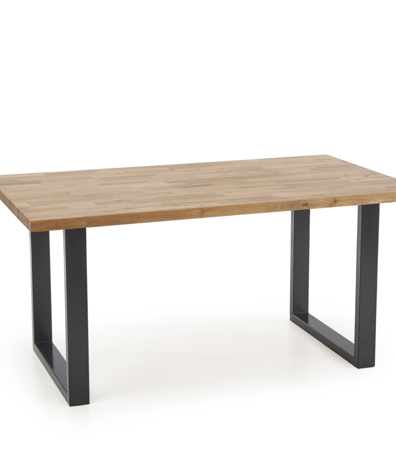 dimensions: 160/90/76 cm, material: solid oak wood / powder coated steel, color: top – natural oak, legs – black