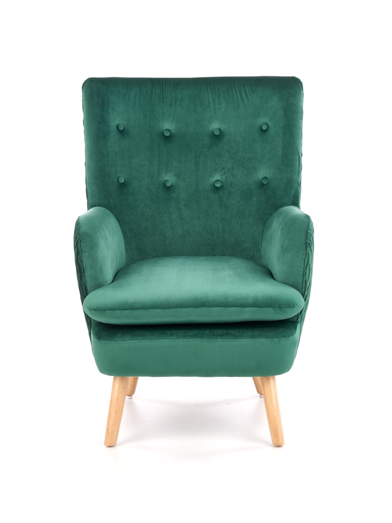 dimensions: 70/78/100/48 cm, material: cloth / solid wood, color: upholstery – dark green, legs – natural