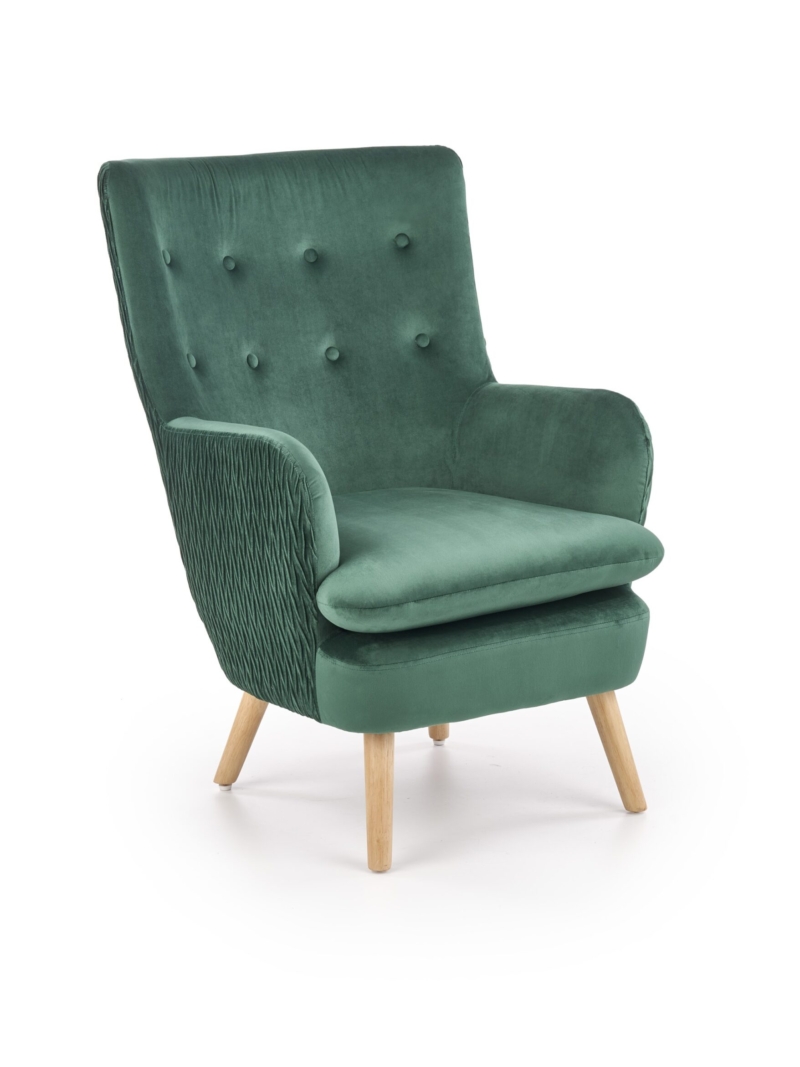 dimensions: 70/78/100/48 cm, material: cloth / solid wood, color: upholstery – dark green, legs – natural