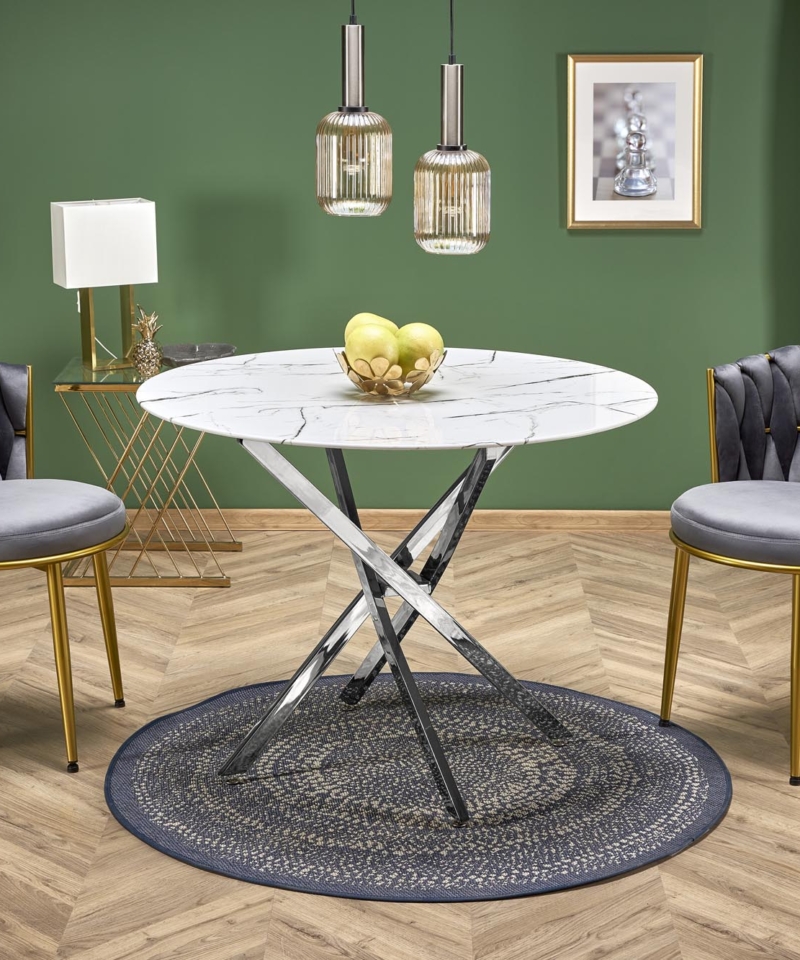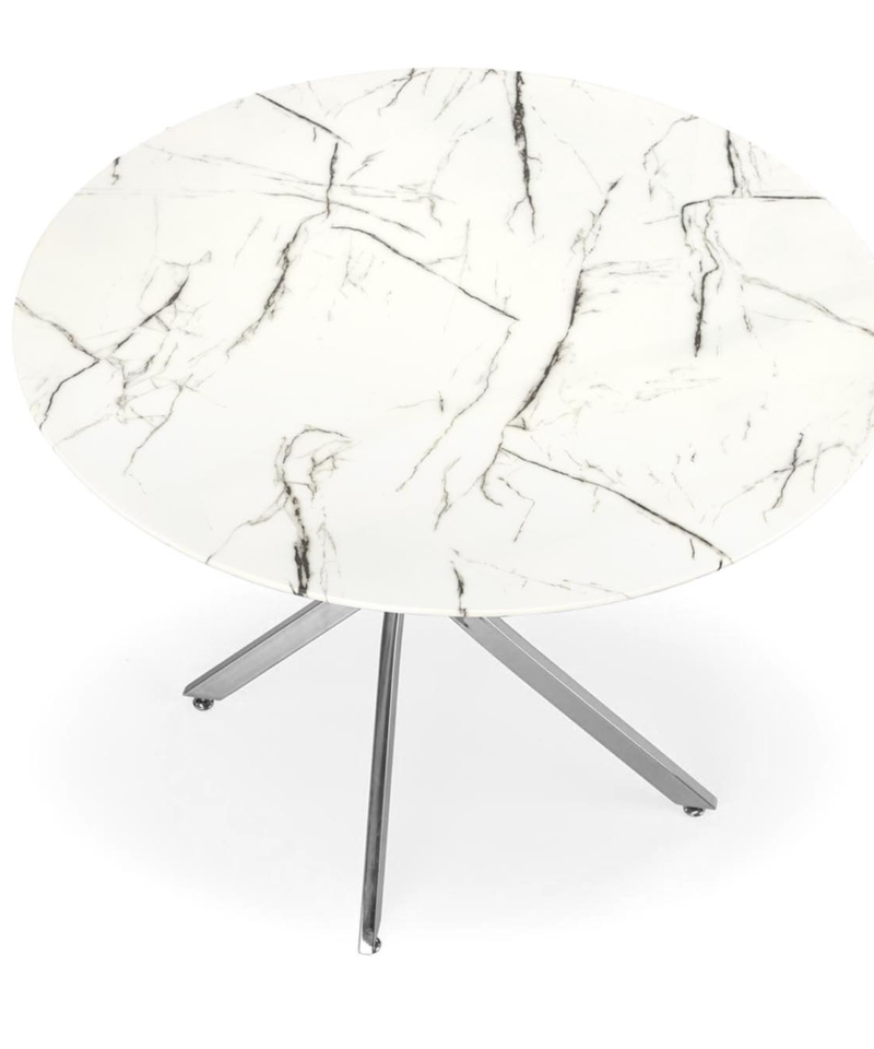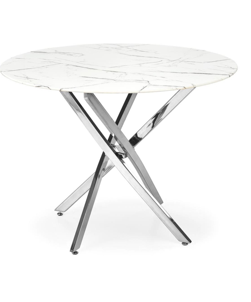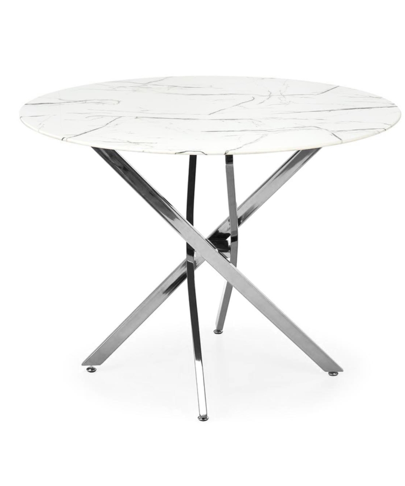 dimensions: fi100/73 cm, material: glass / chrome steel, color: top – white marble, legs – silver