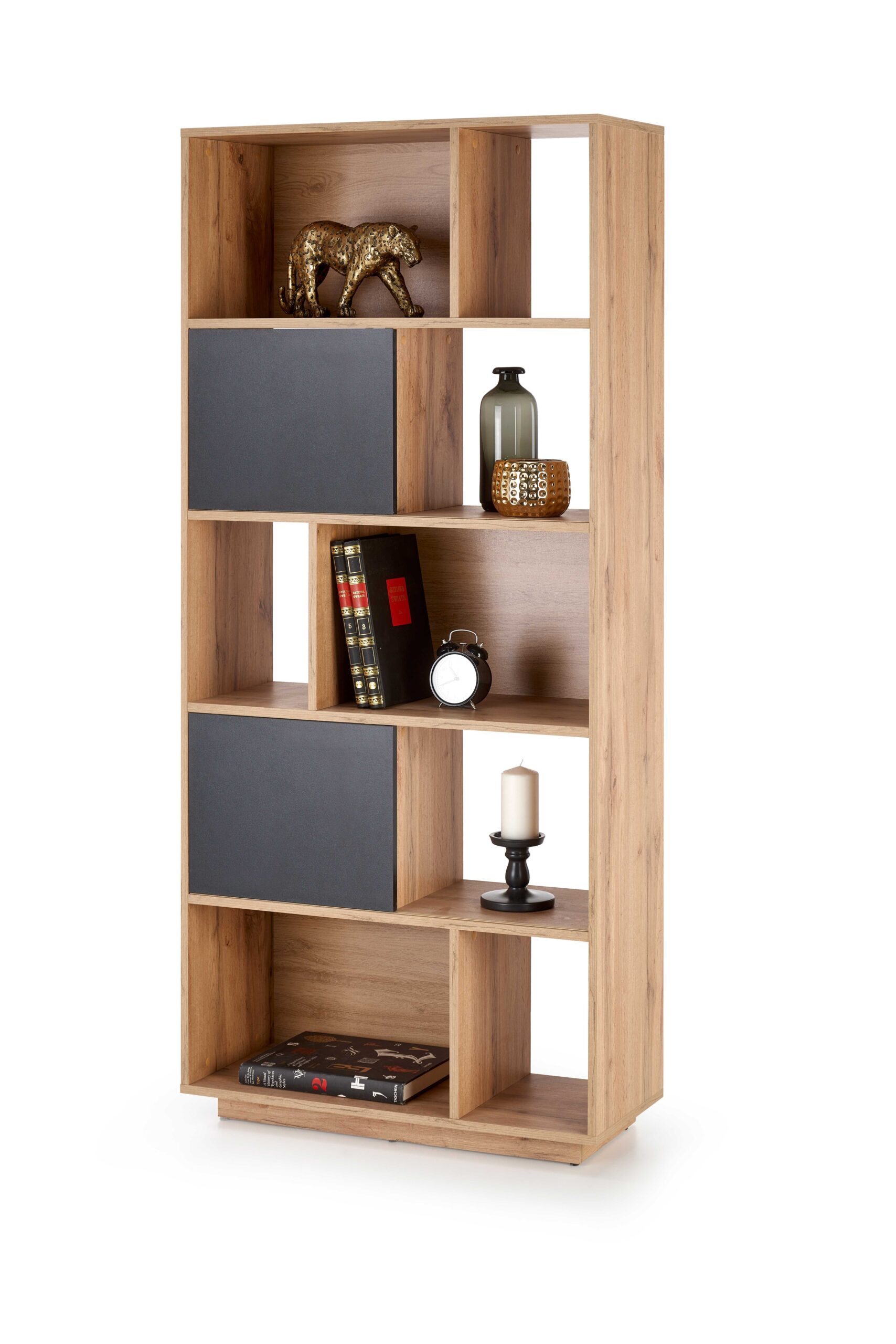 dimensions: 80/33/180 cm, sliding facades, material: laminated chipboard, colors: wotan oak / black matt