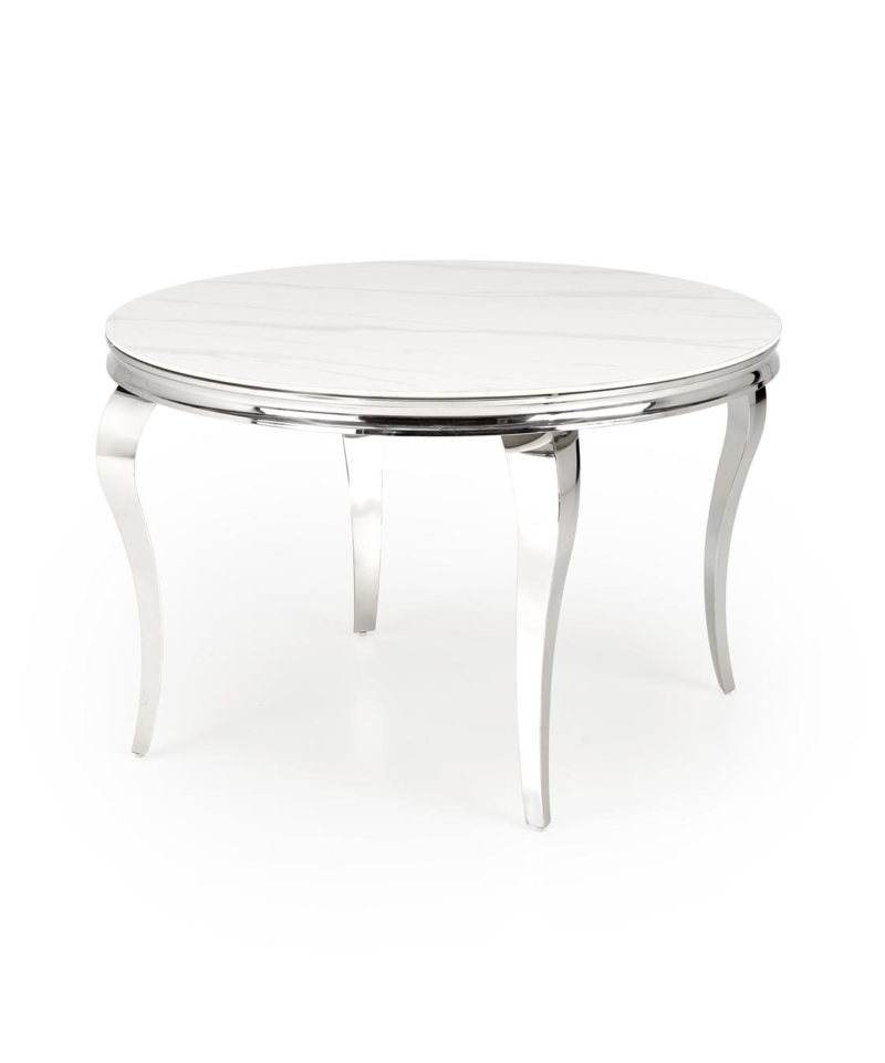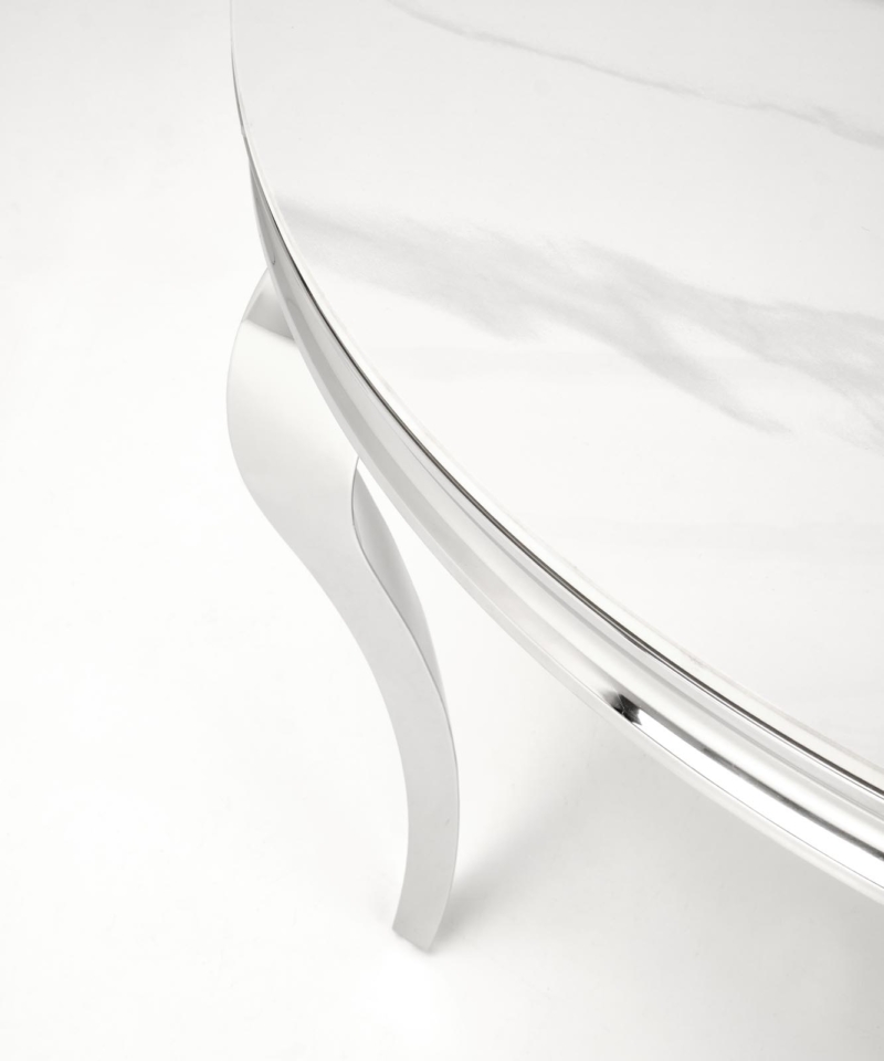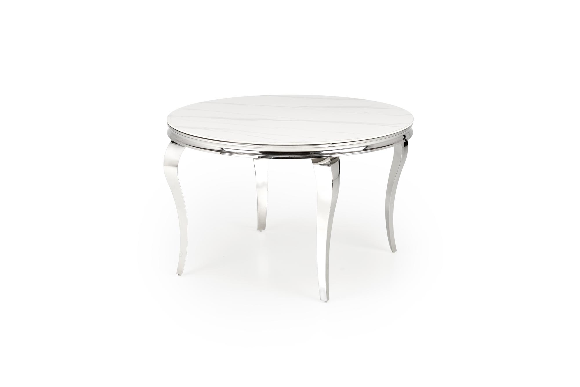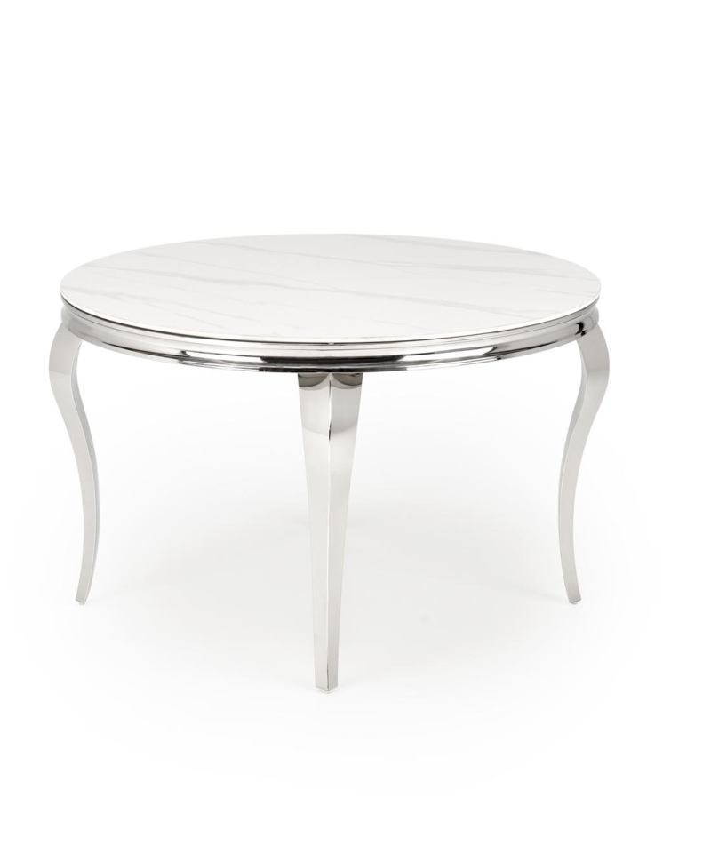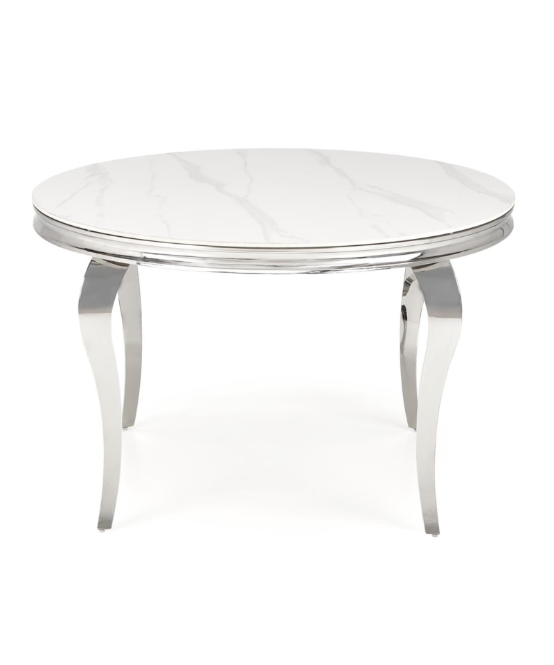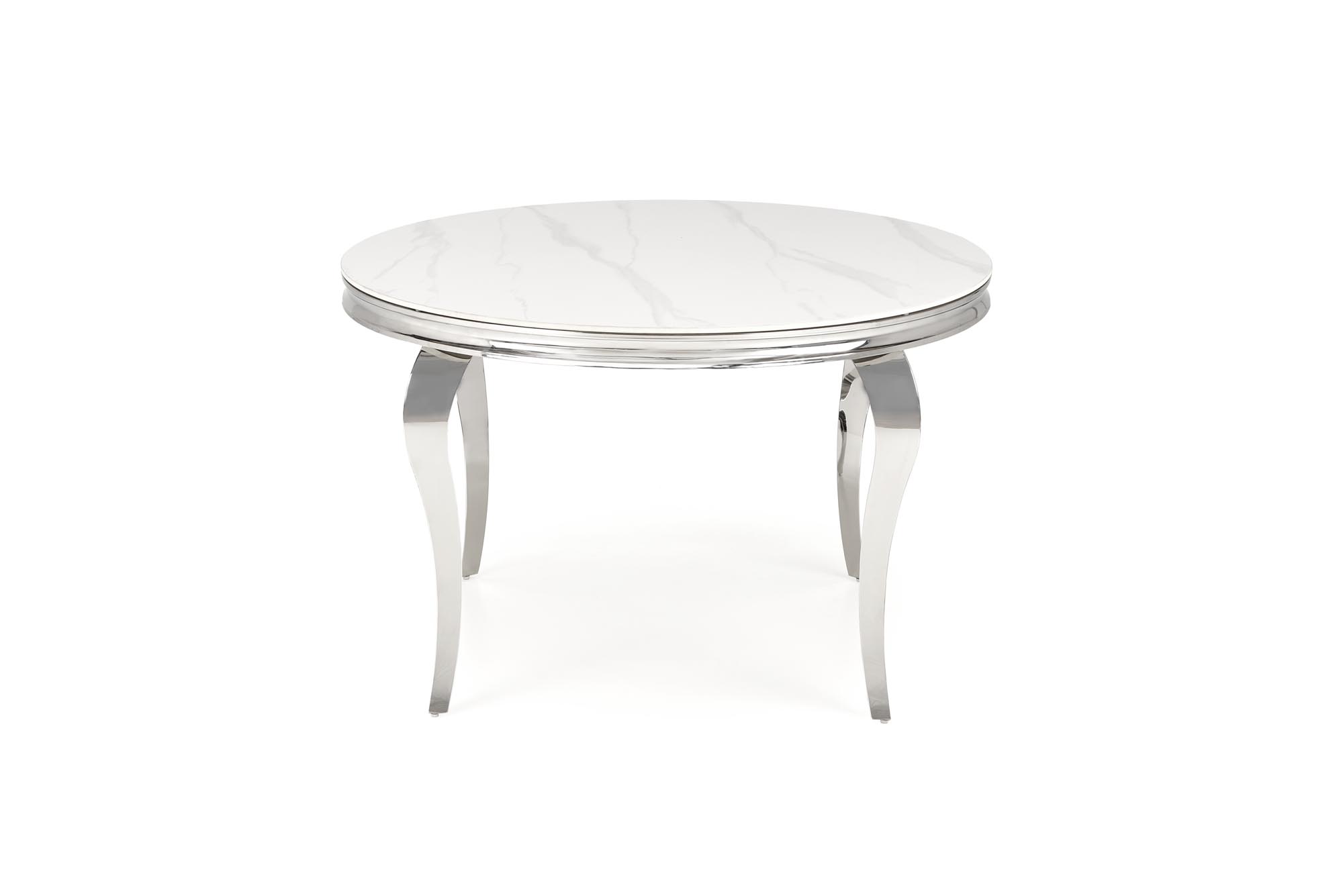 dimensions: 120/76/77 cm; material: sintered stone / stainless steel, color: top – white marble, legs – silver