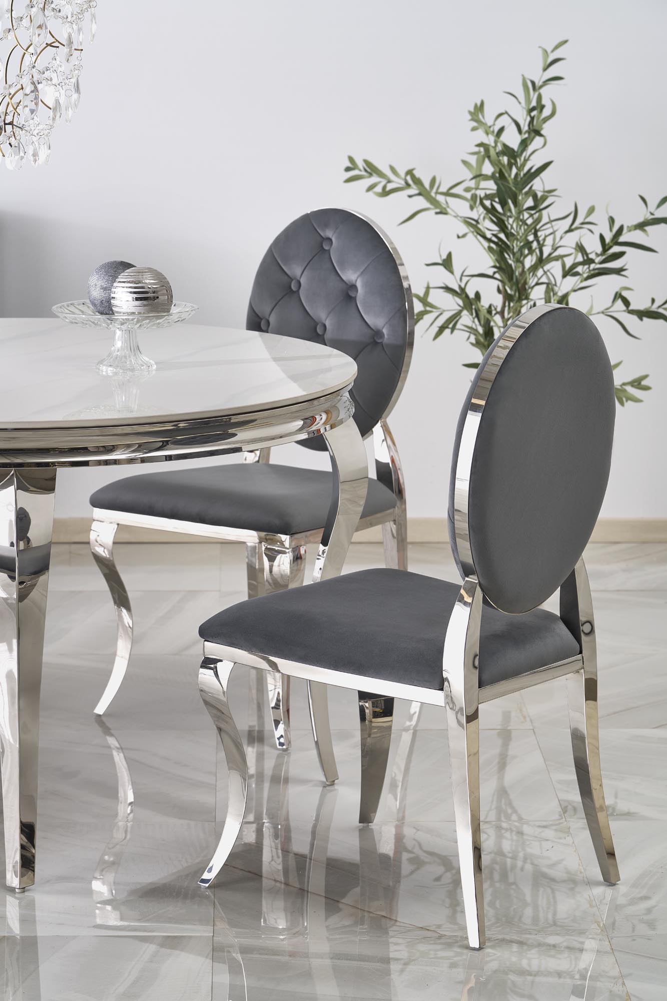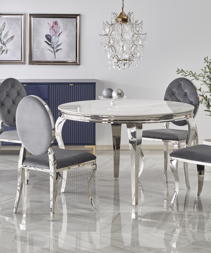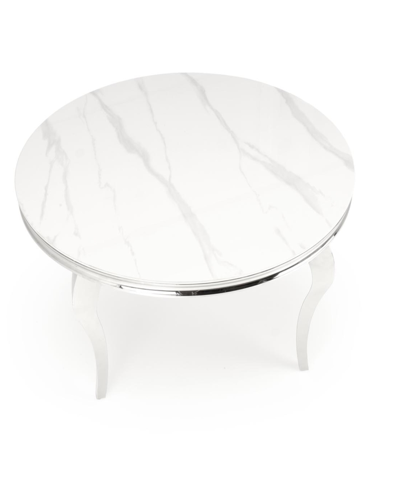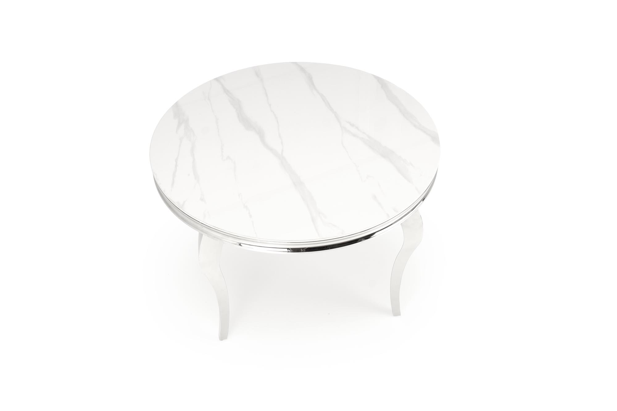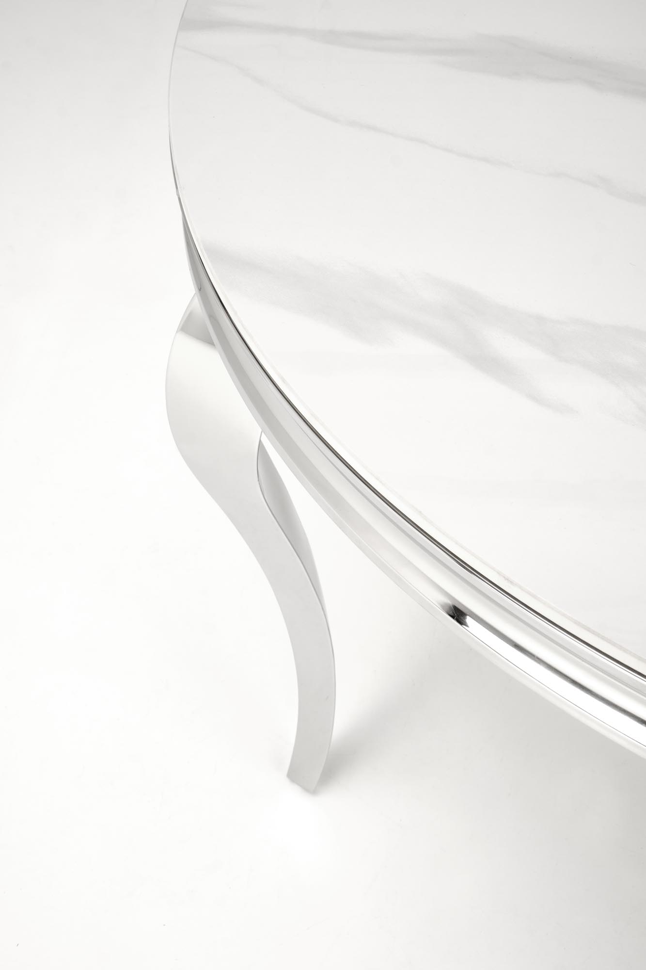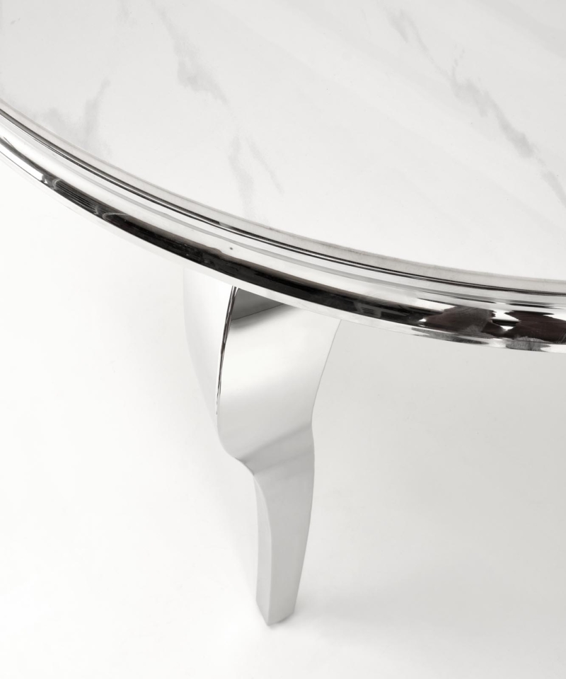 dimensions: 120/76/77 cm; material: sintered stone / stainless steel, color: top – white marble, legs – silver