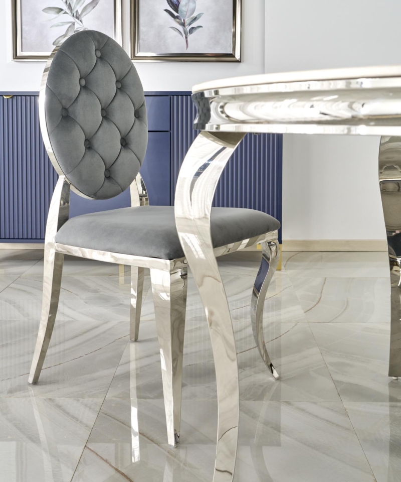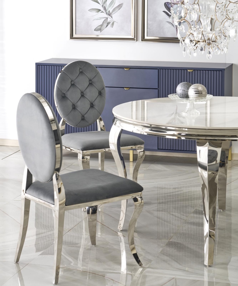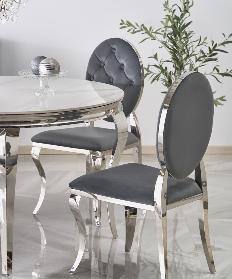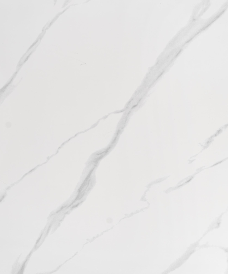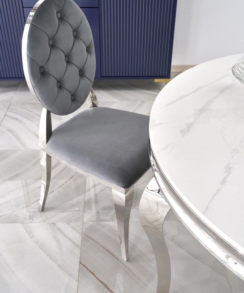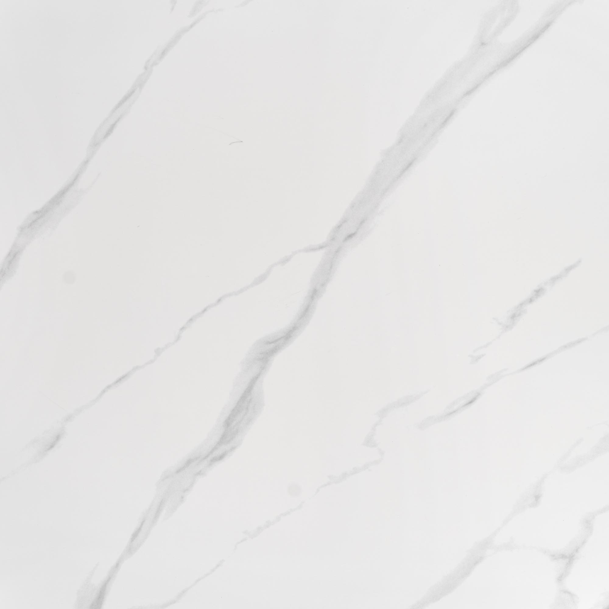 dimensions: 120/76/77 cm; material: sintered stone / stainless steel, color: top – white marble, legs – silver