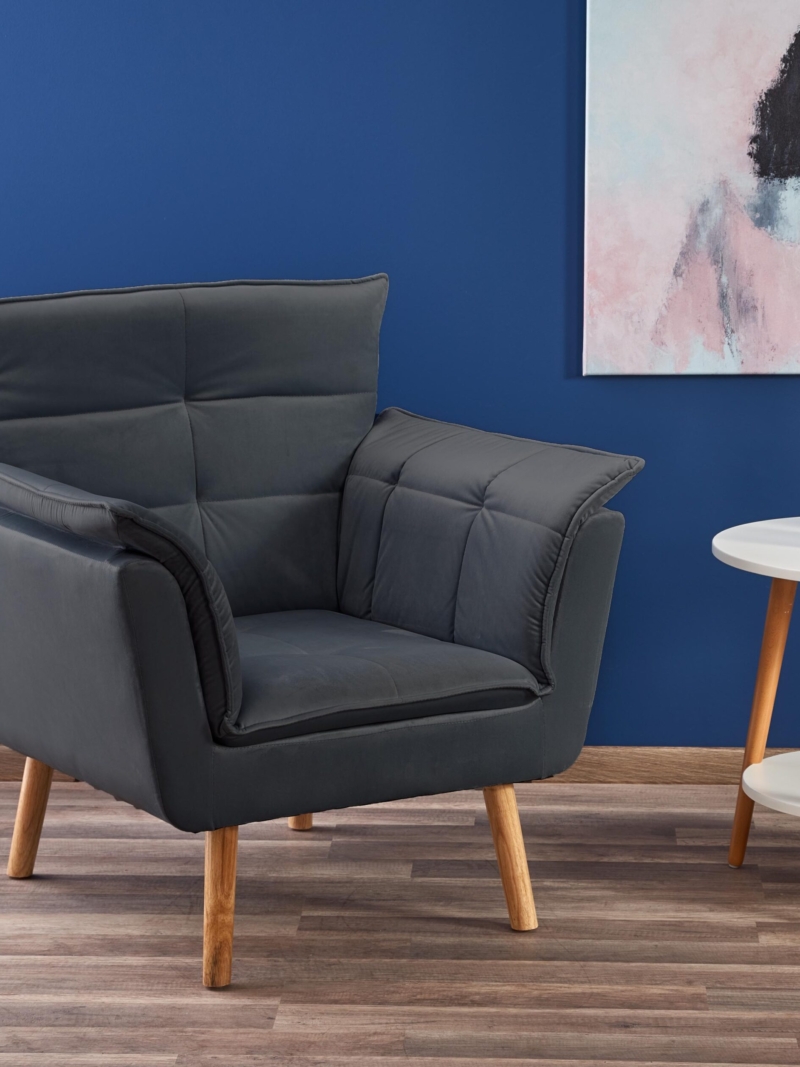 dimensions: 80/73/84/41 cm, material: cloth / rubber solid wood, colors: uphostery – dark grey, legs – natural