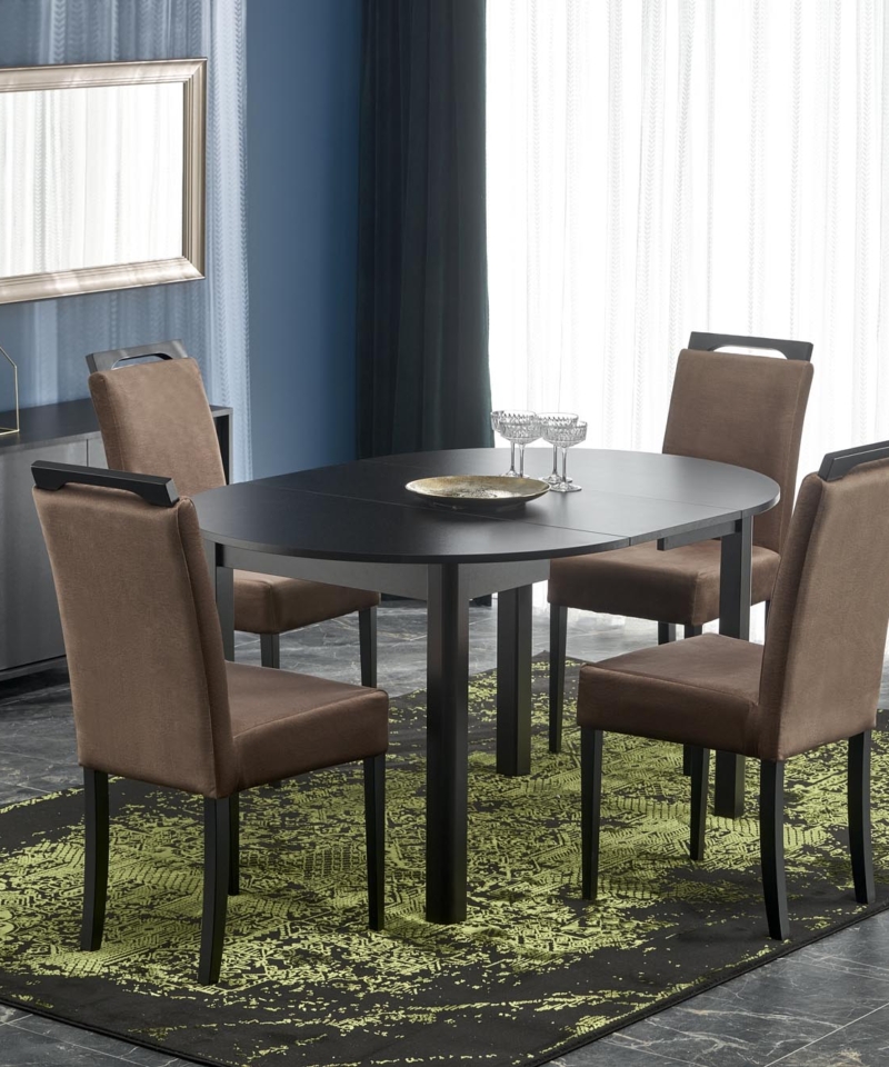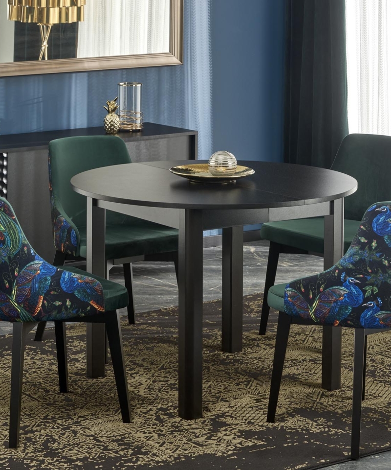 extension table, dimensions: 102-142/102/76 cm, material: laminated chipboard / laminated MDF, color: top – black, legs, legs – black