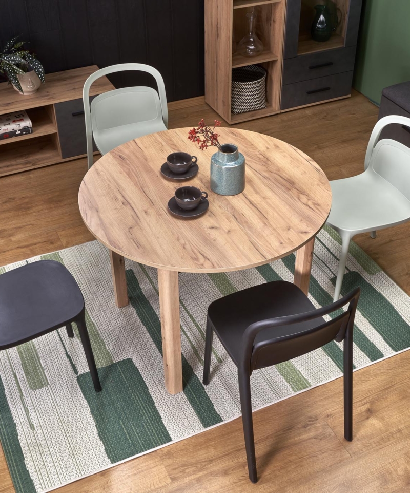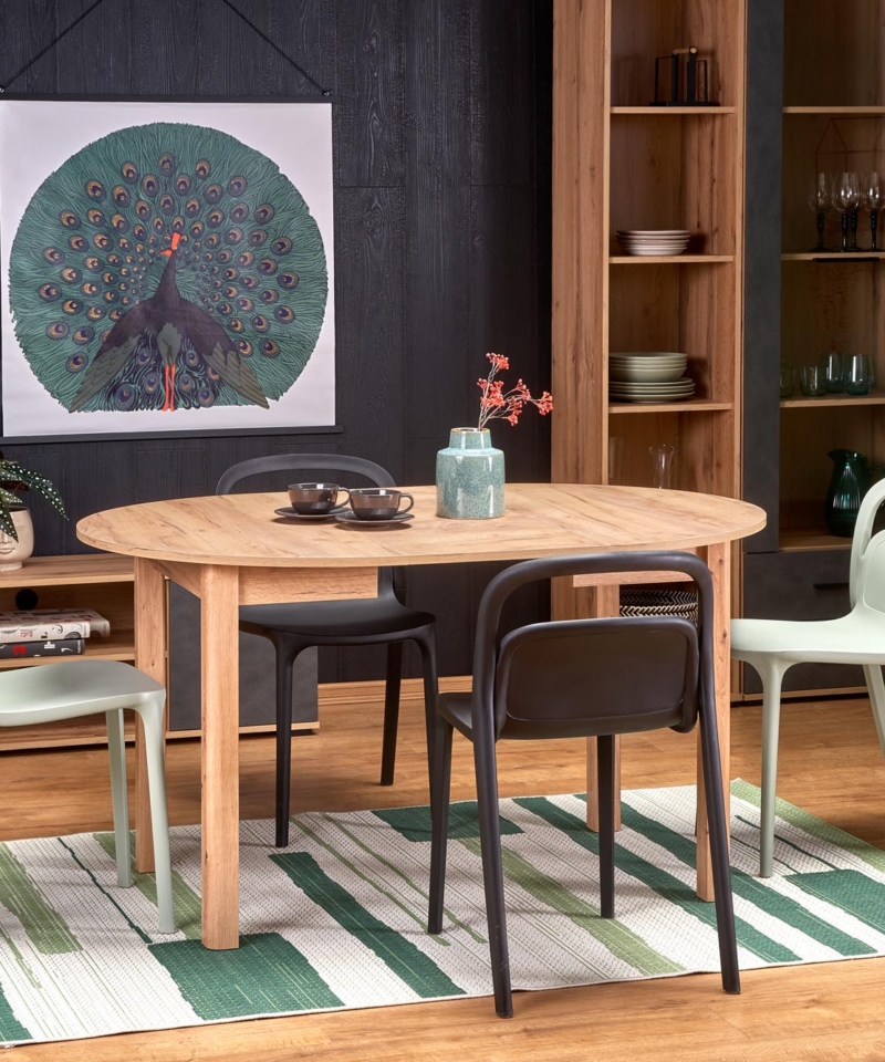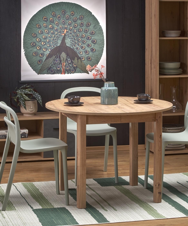 extension table, dimensions: 102-142/102/76 cm, material: laminated chipboard / laminated MDF, color: top – craft oak, legs, legs – craft oak