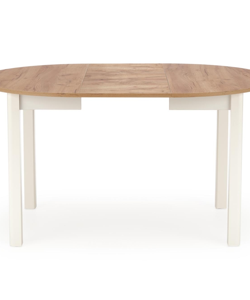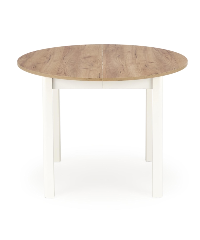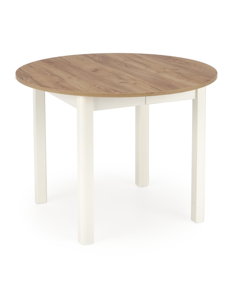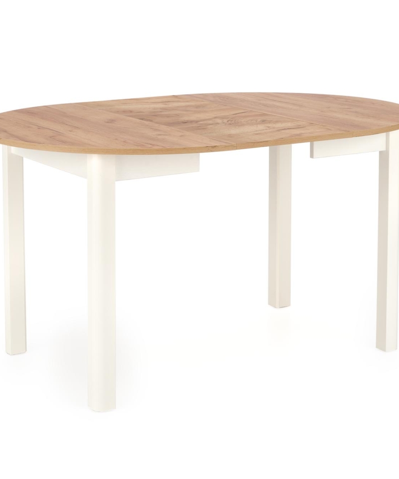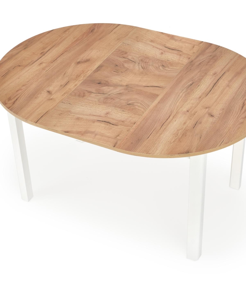 extension table, dimensions: 102-142/102/76 cm, material: laminated chipboard / laminated MDF, color: top – craft oak, legs, legs – white