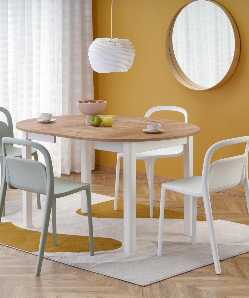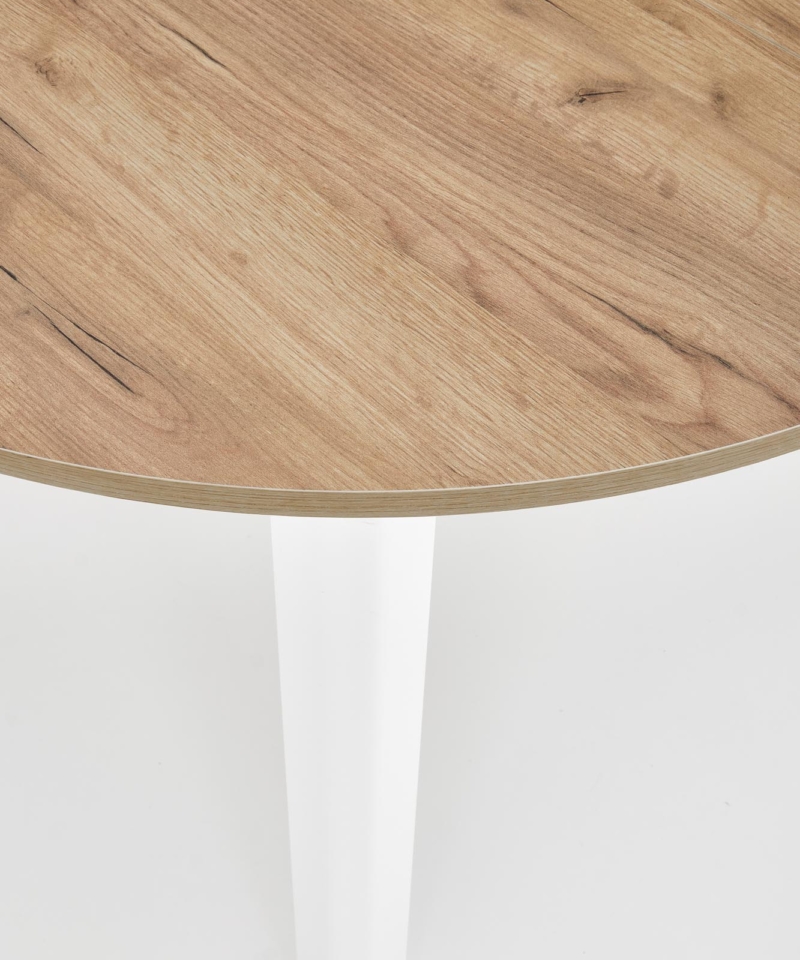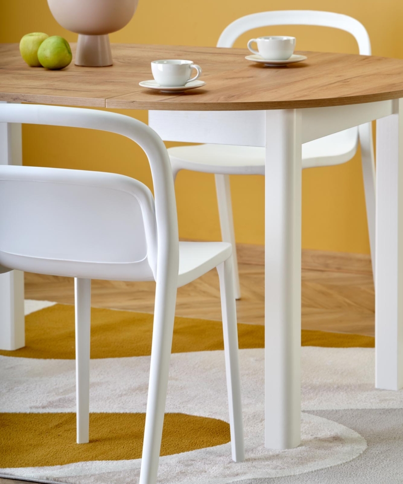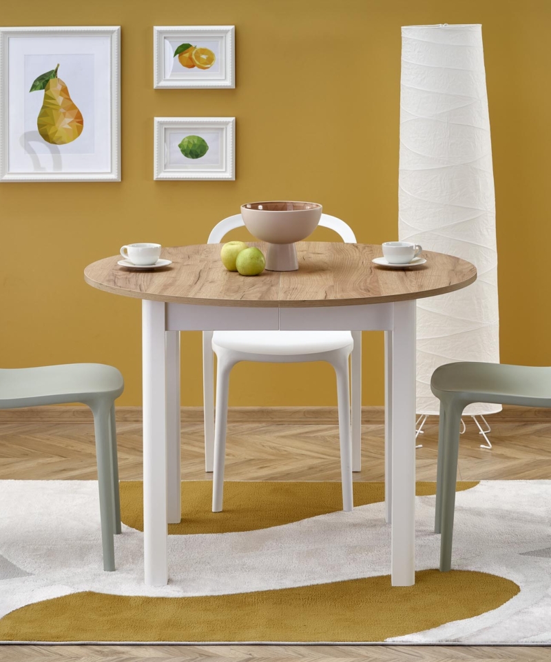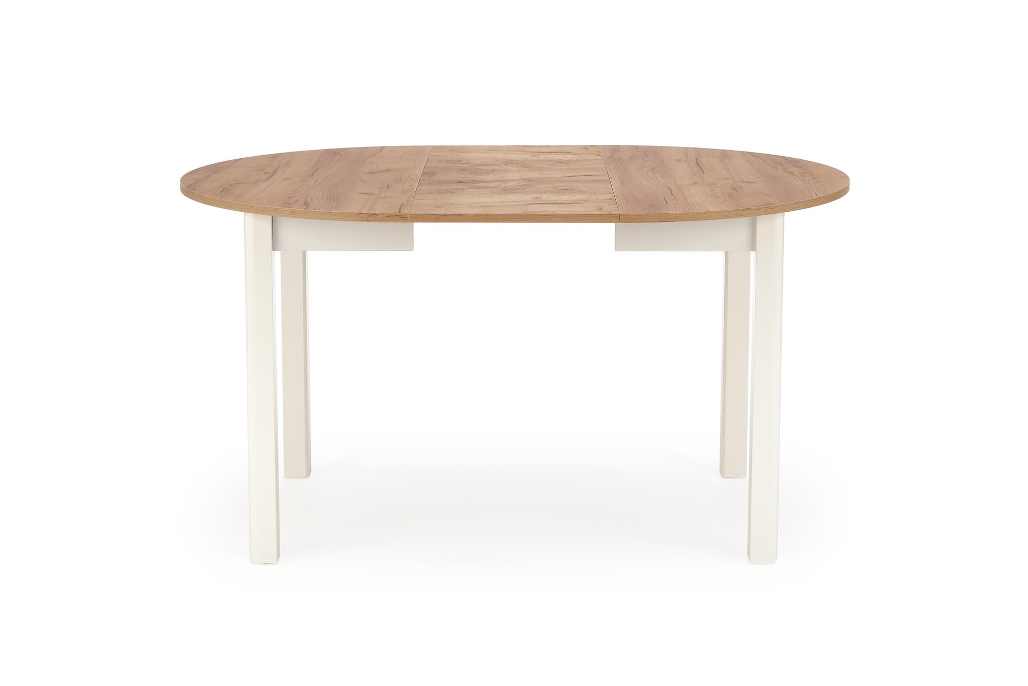 extension table, dimensions: 102-142/102/76 cm, material: laminated chipboard / laminated MDF, color: top – craft oak, legs, legs – white