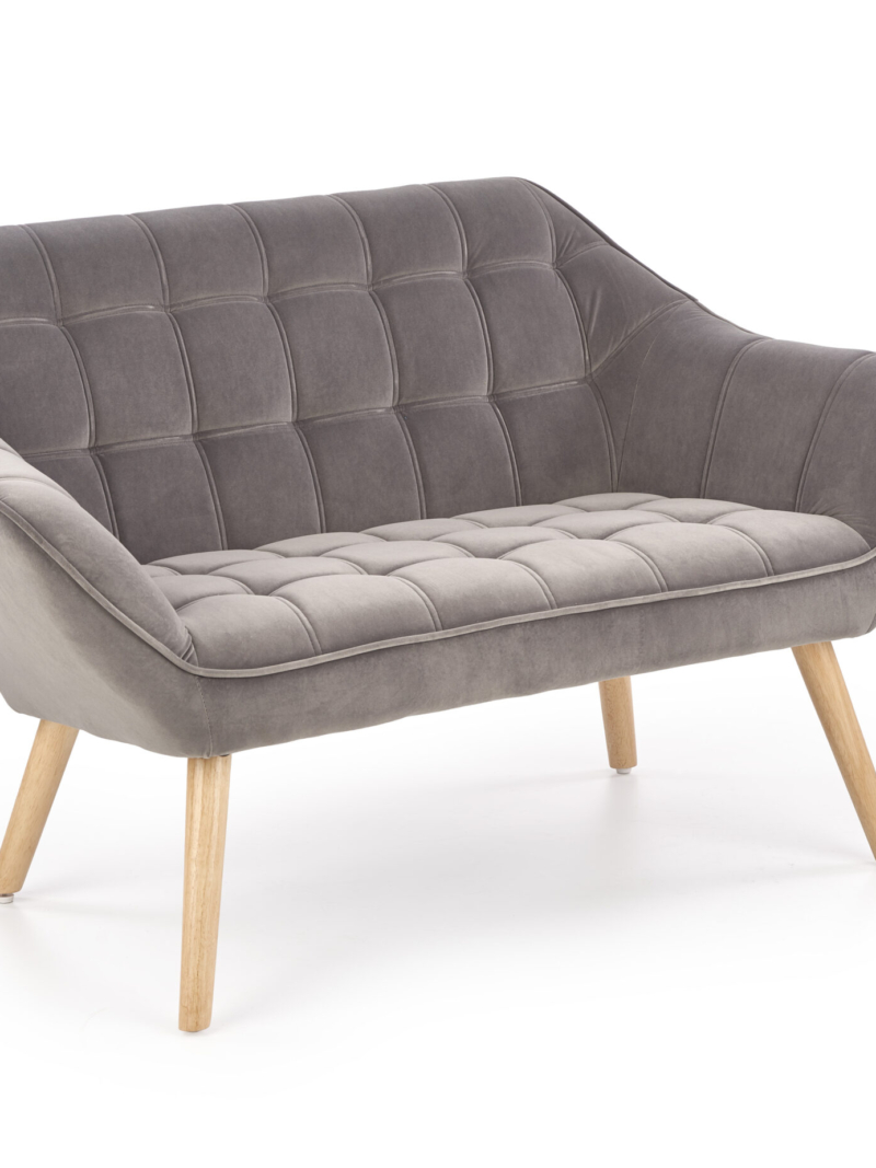 dimensions: 128/75/75/47 cm, material: cloth / solid wood, color: upholstery – grey, legs – natural