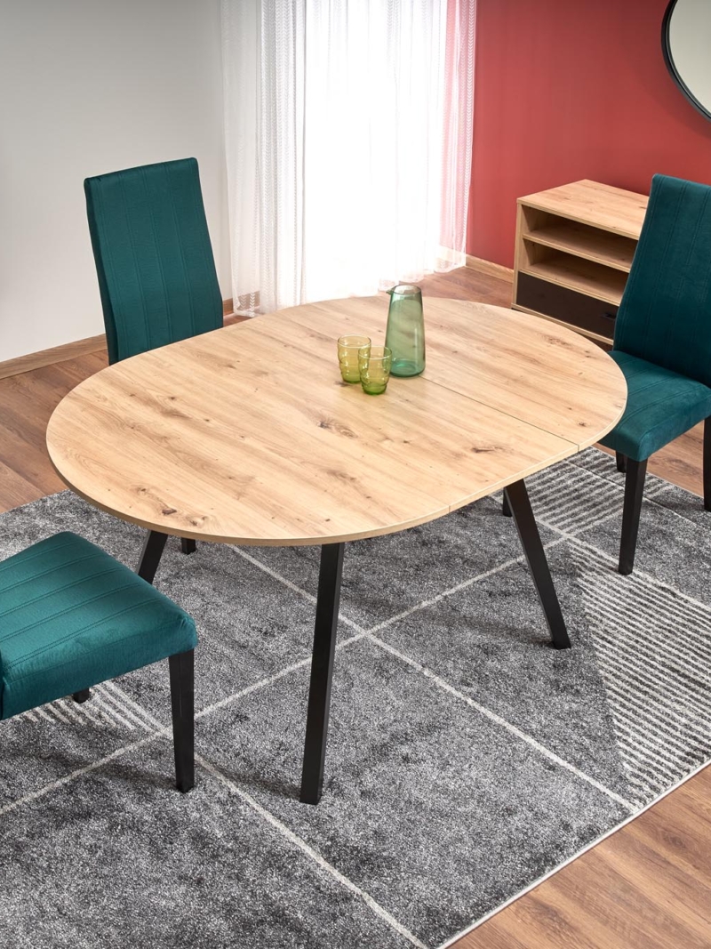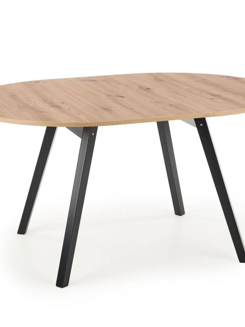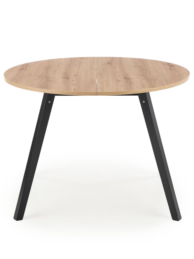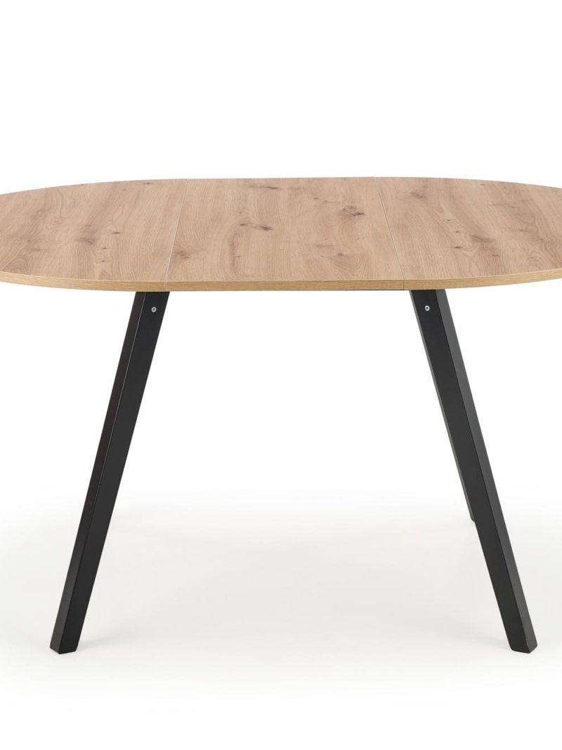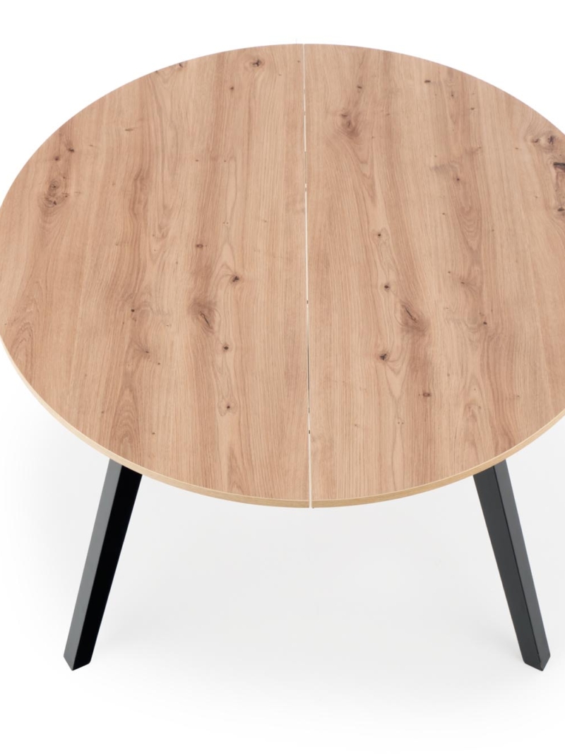 dimensions: 102-142/102/73 cm, extension table, material: laminated chipboard / solid beech wood, color: top – artisan oak, legs – black