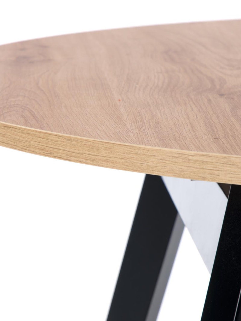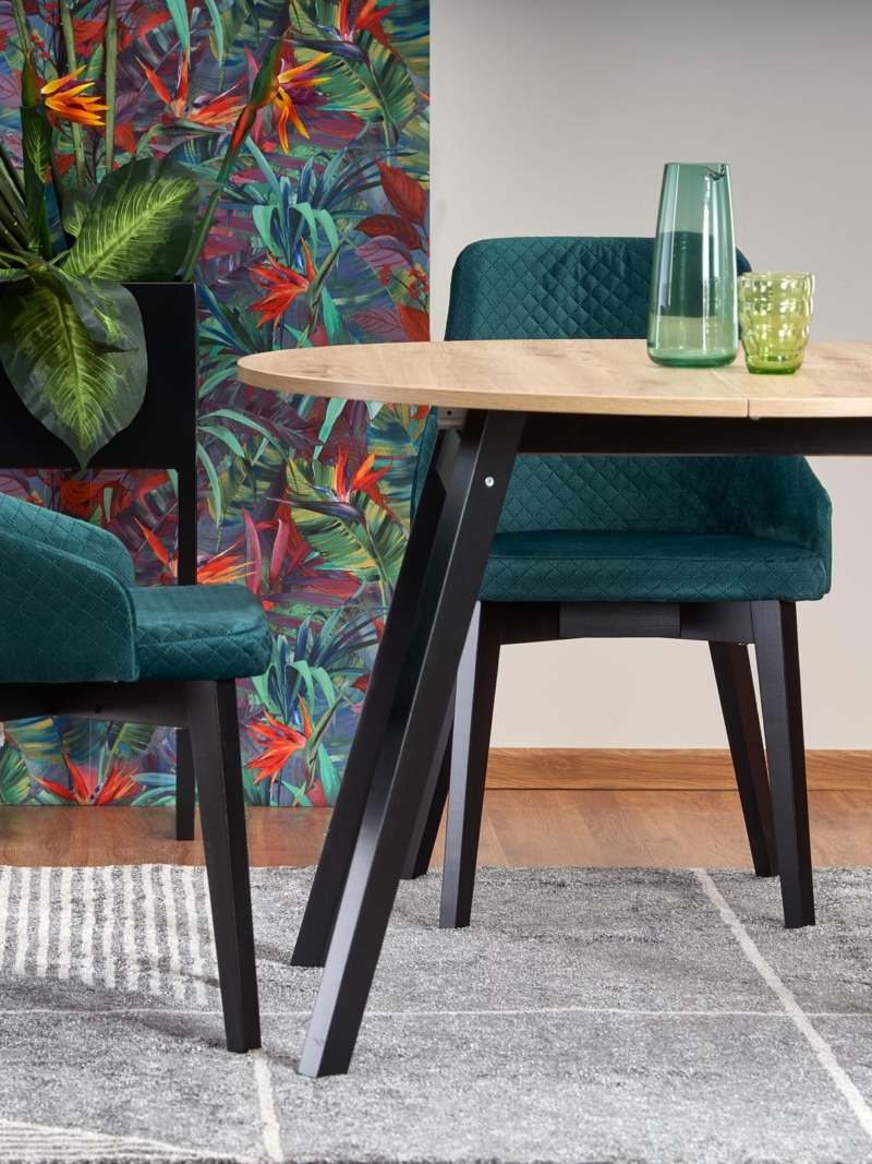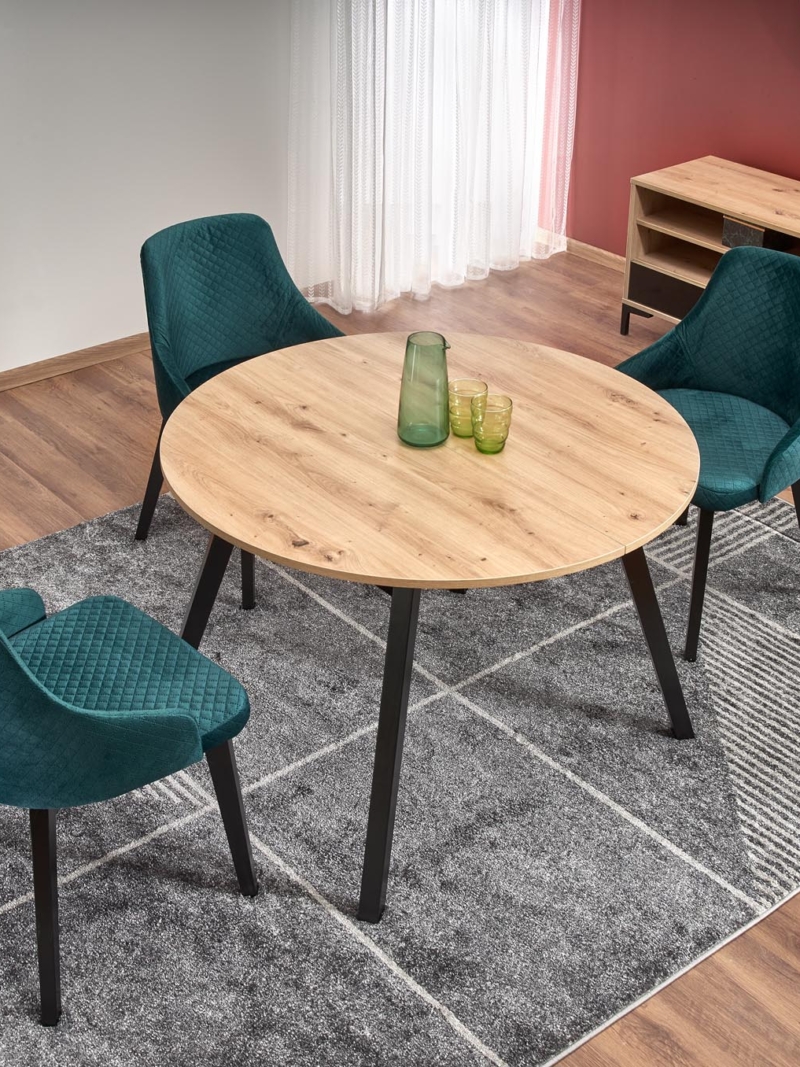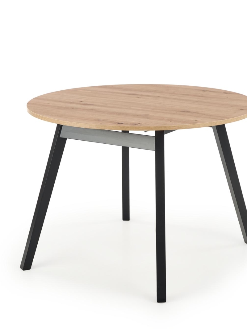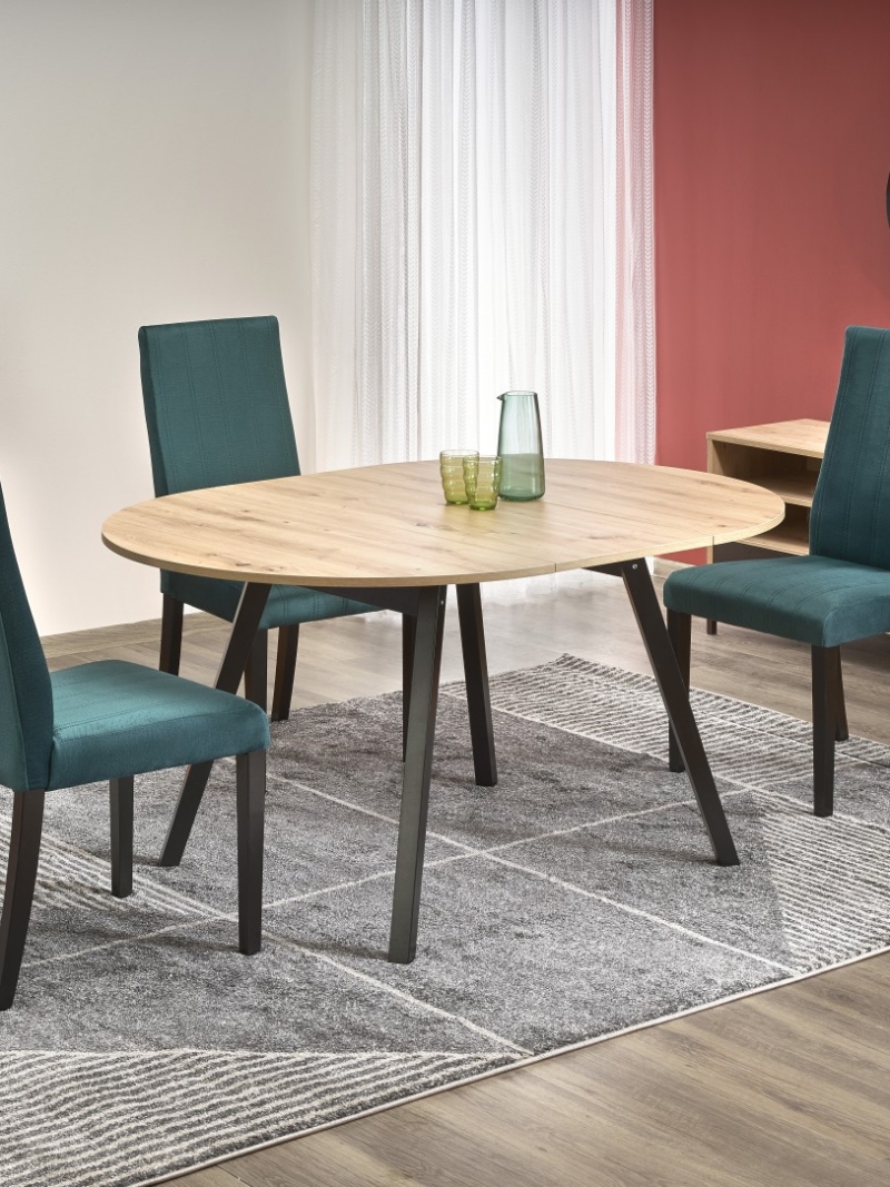 dimensions: 102-142/102/73 cm, extension table, material: laminated chipboard / solid beech wood, color: top – artisan oak, legs – black