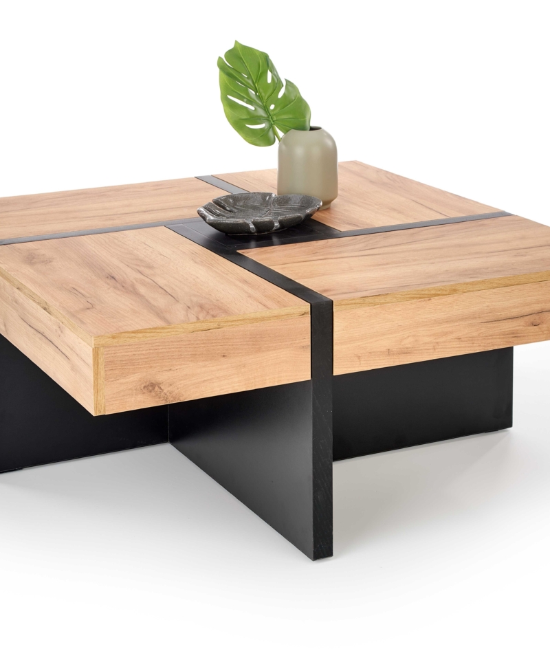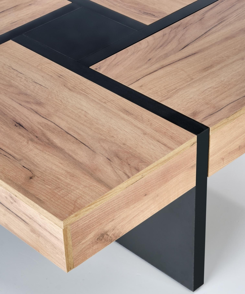 dimension: 100/100/47 cm, material: laminated chipboard, color: carft oak / black matt