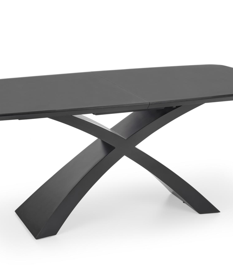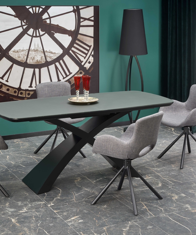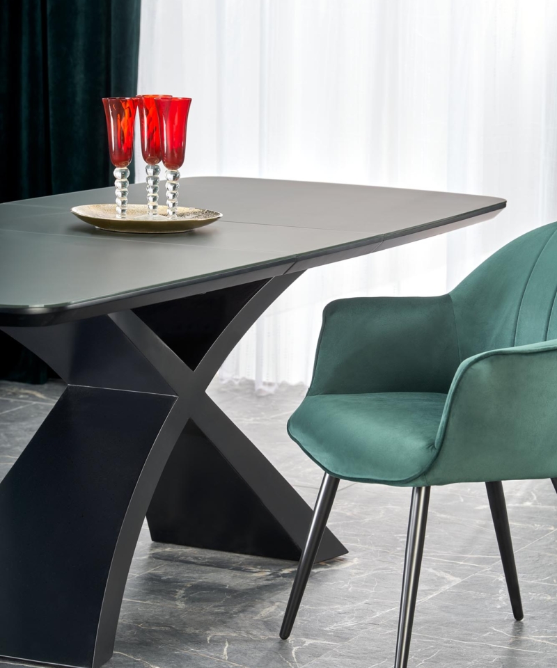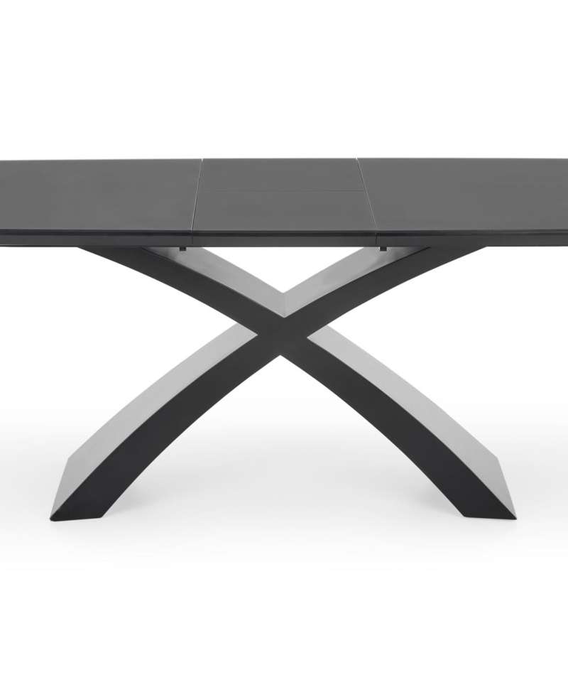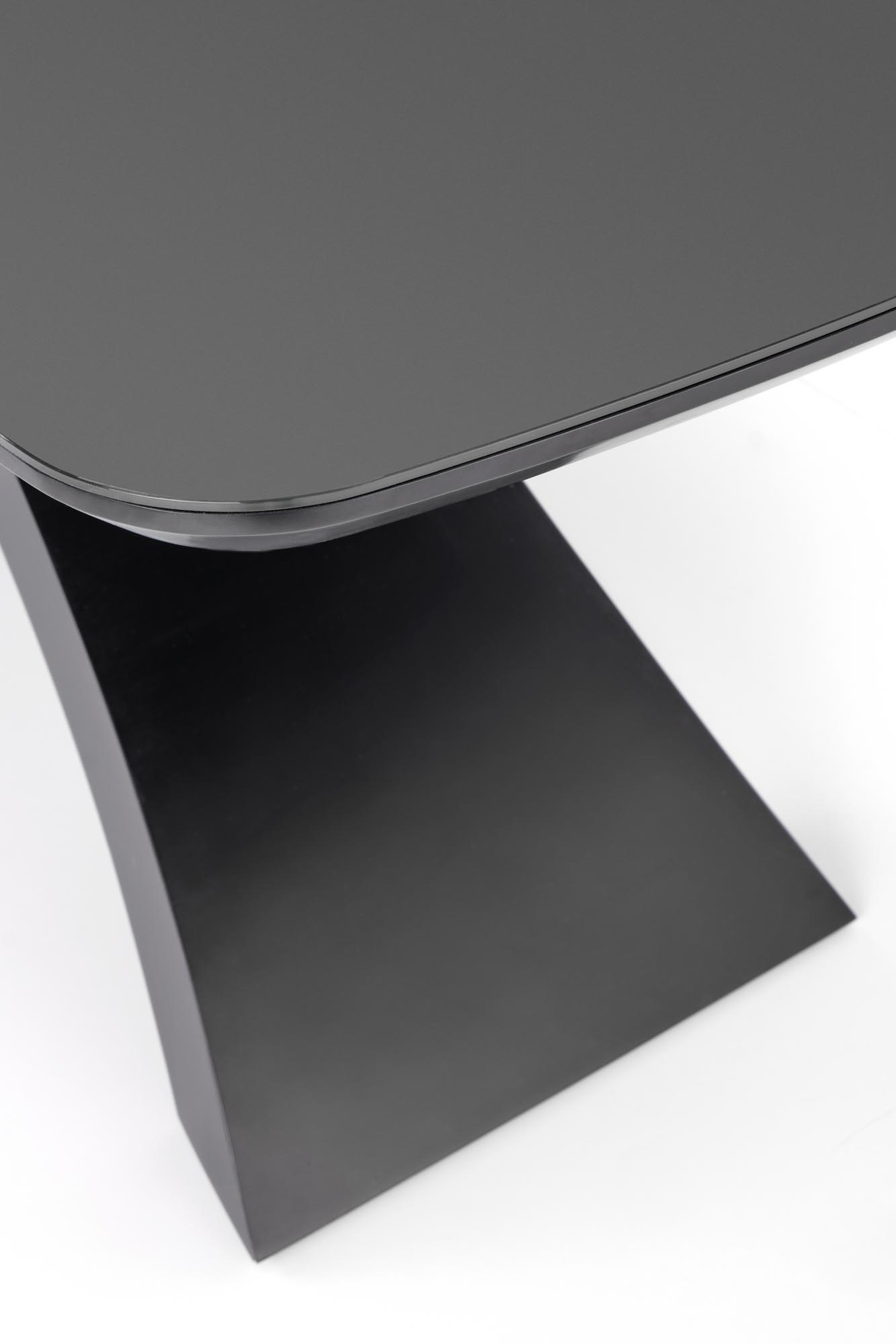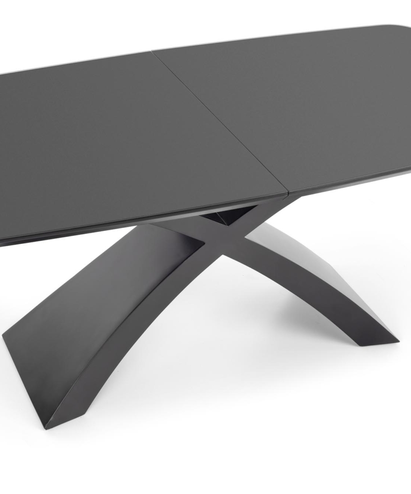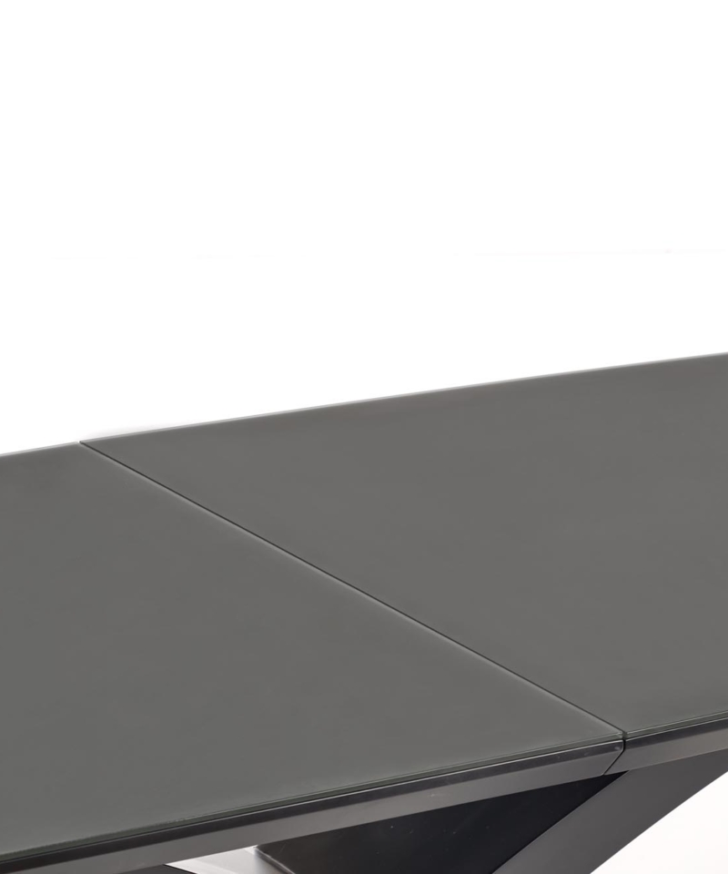 dimensions: 180-220/89/75 cm, extension table, material: glass / lacquered MDF, color: top – dark grey, legs – black