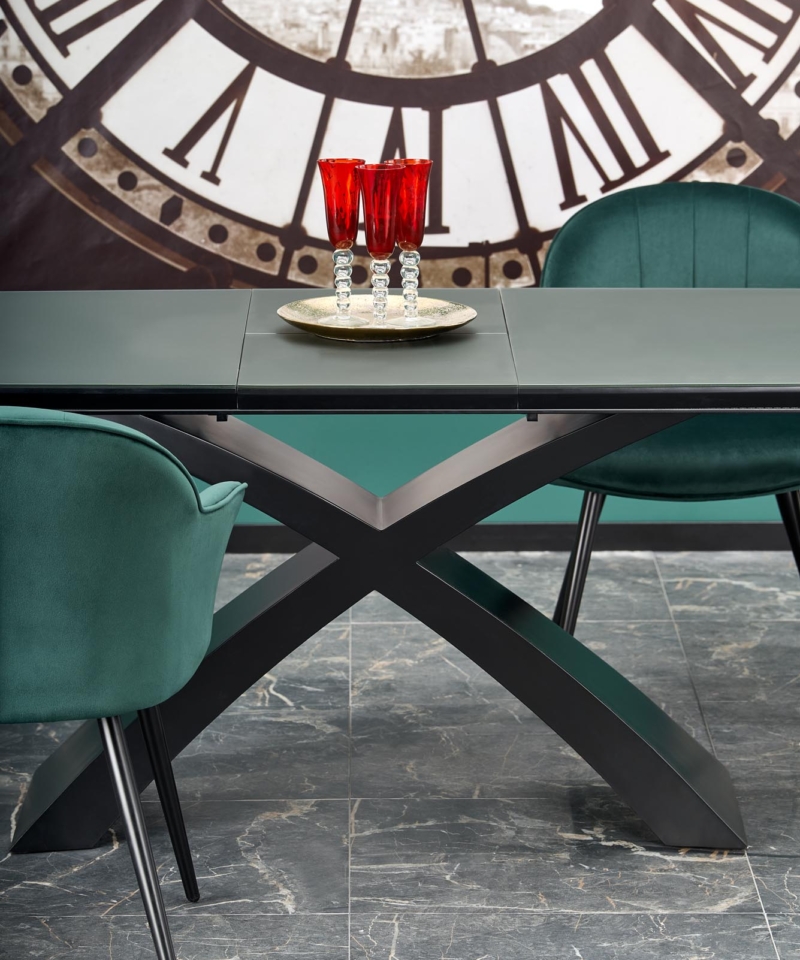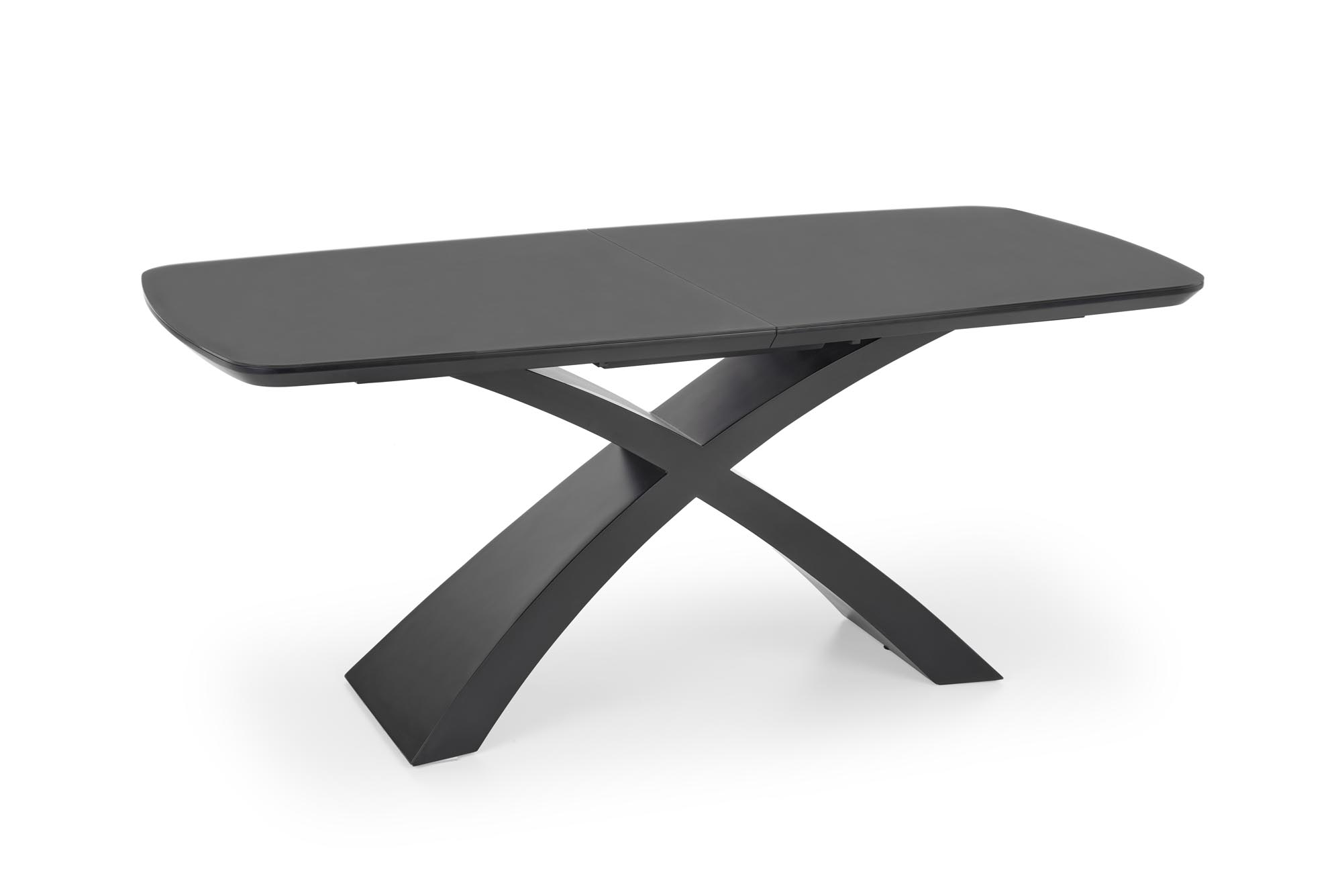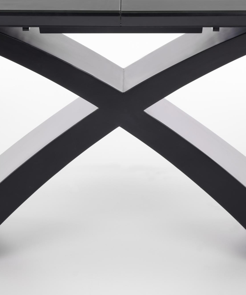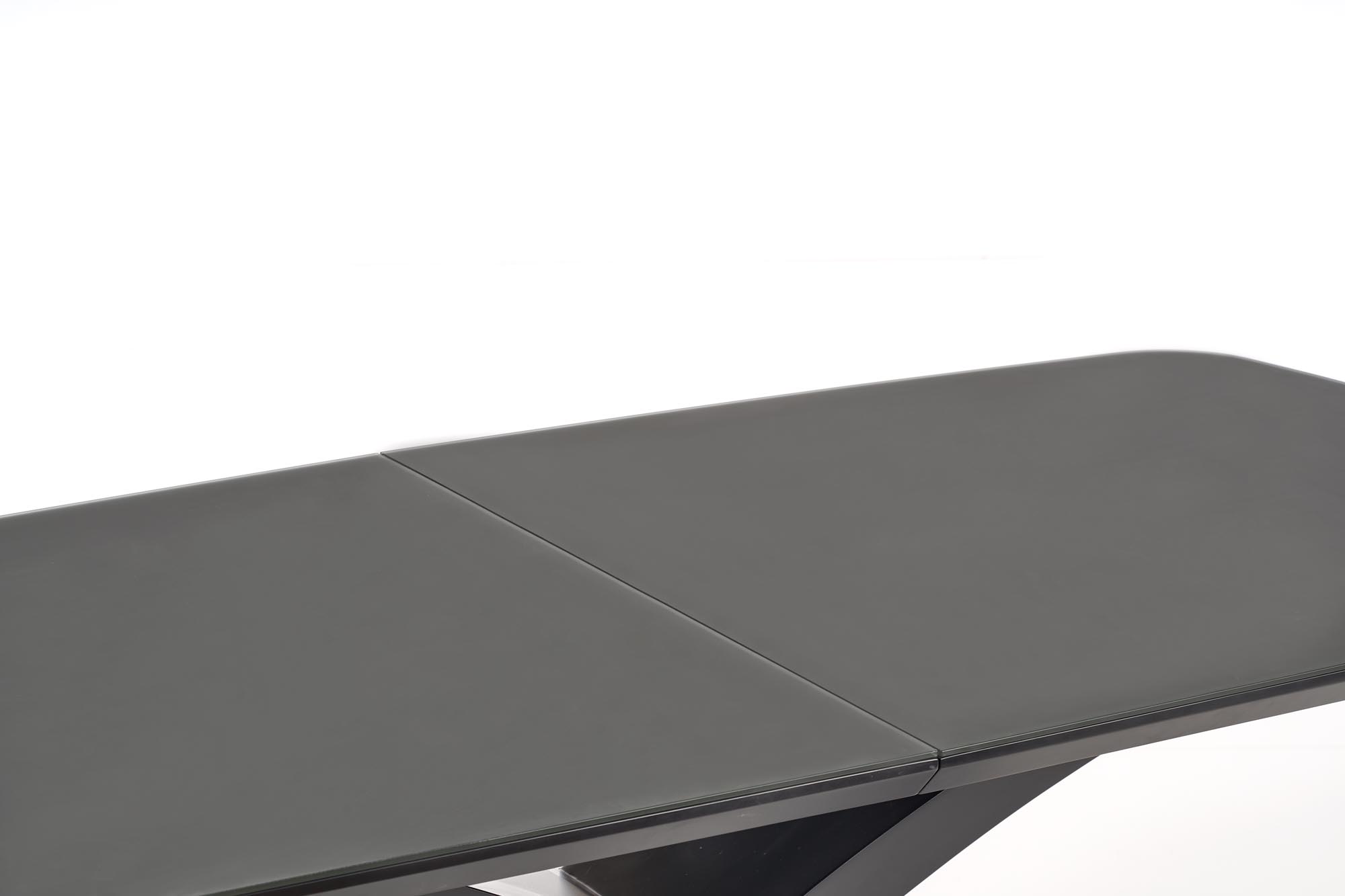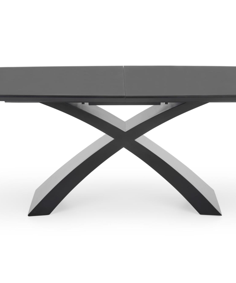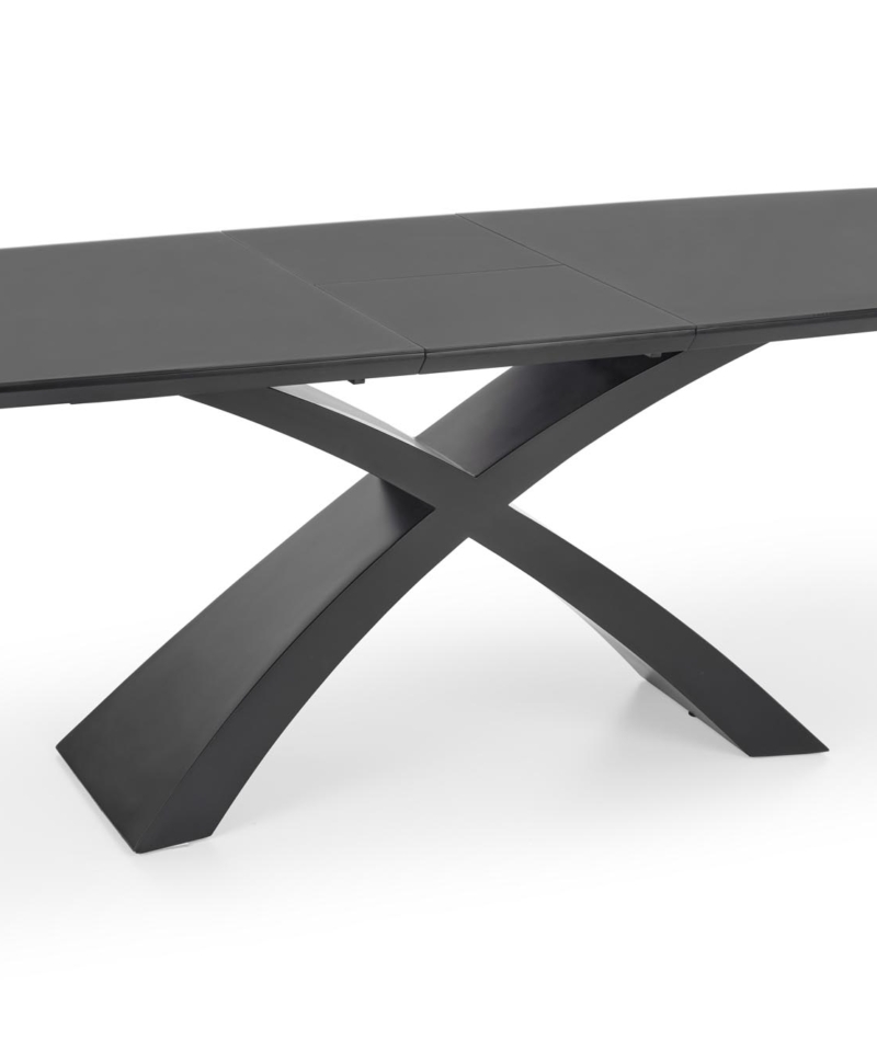 dimensions: 180-220/89/75 cm, extension table, material: glass / lacquered MDF, color: top – dark grey, legs – black