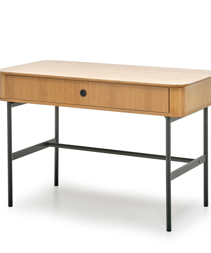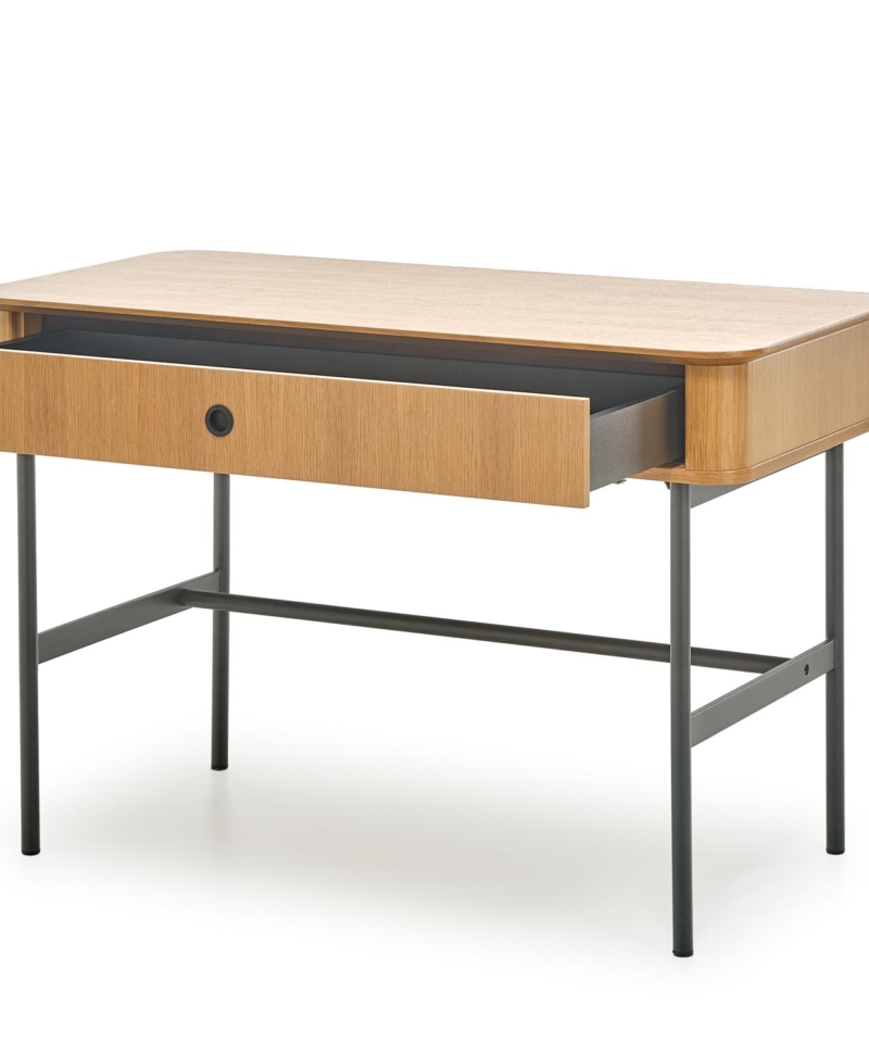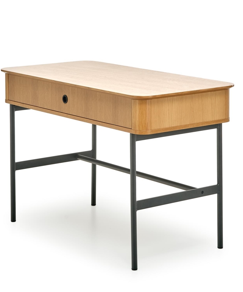desk, dimensions: 117/59/76 cm, material: MDF + natural oak venner / chipboard + natural oak venner / powder coated steel, color: natural oak / black