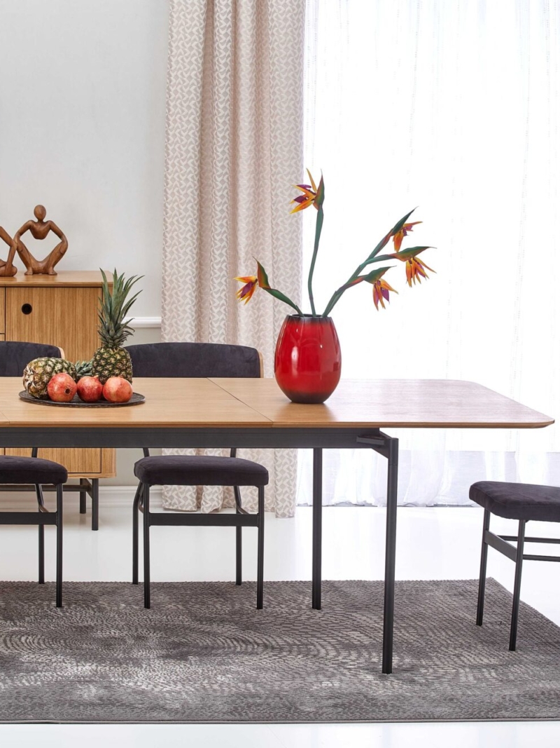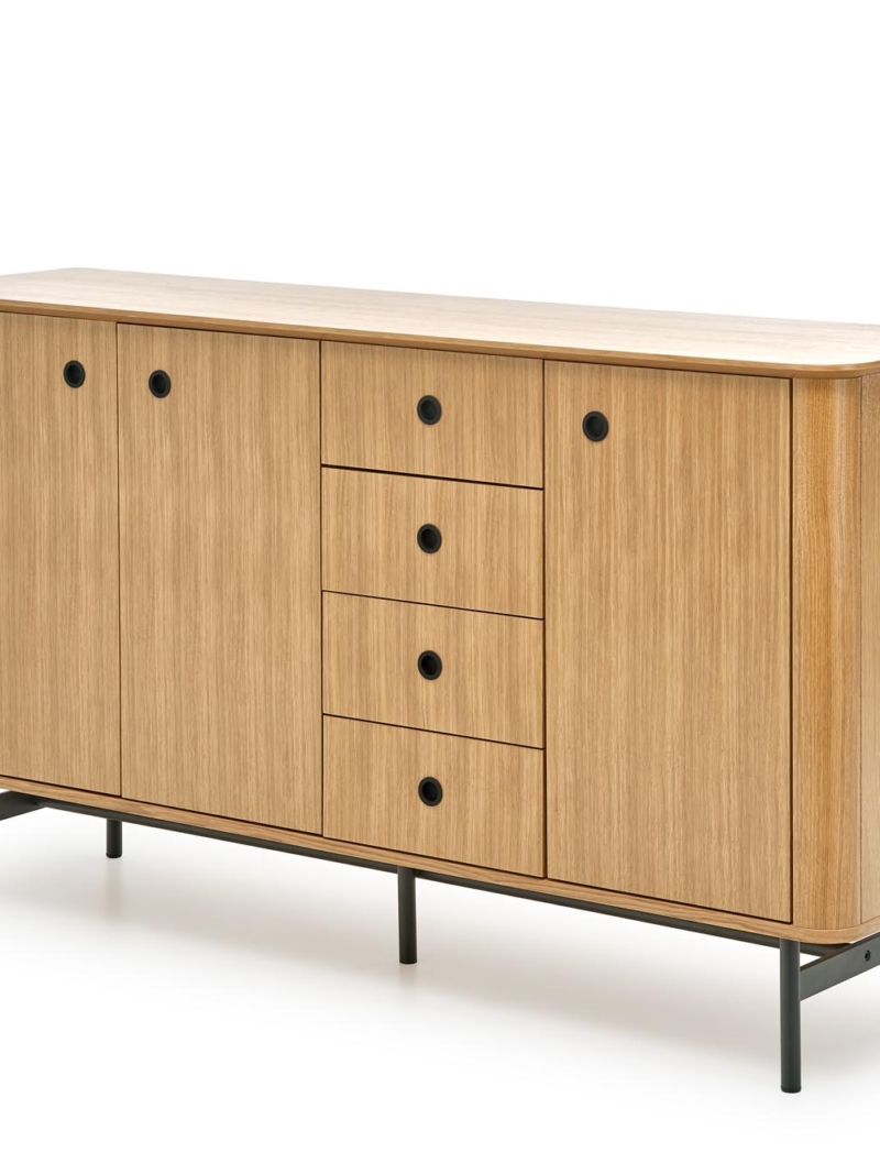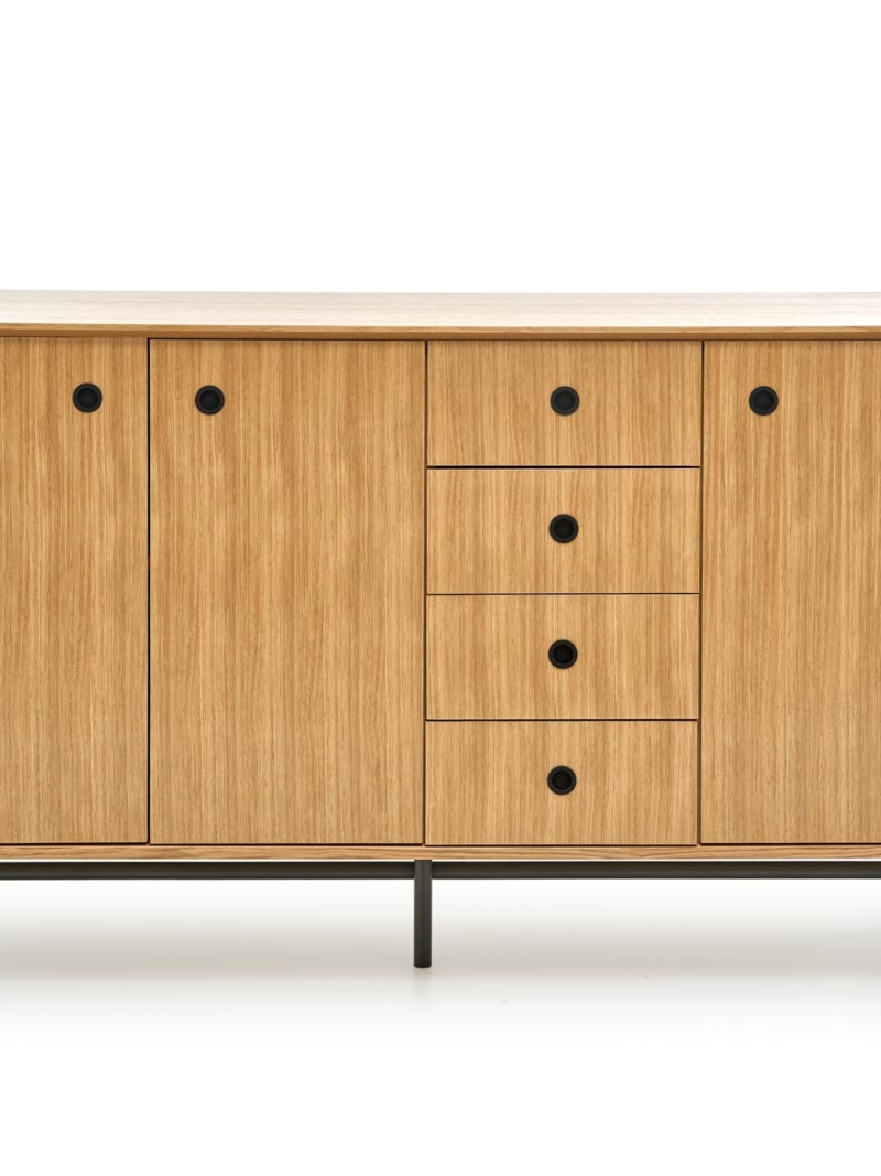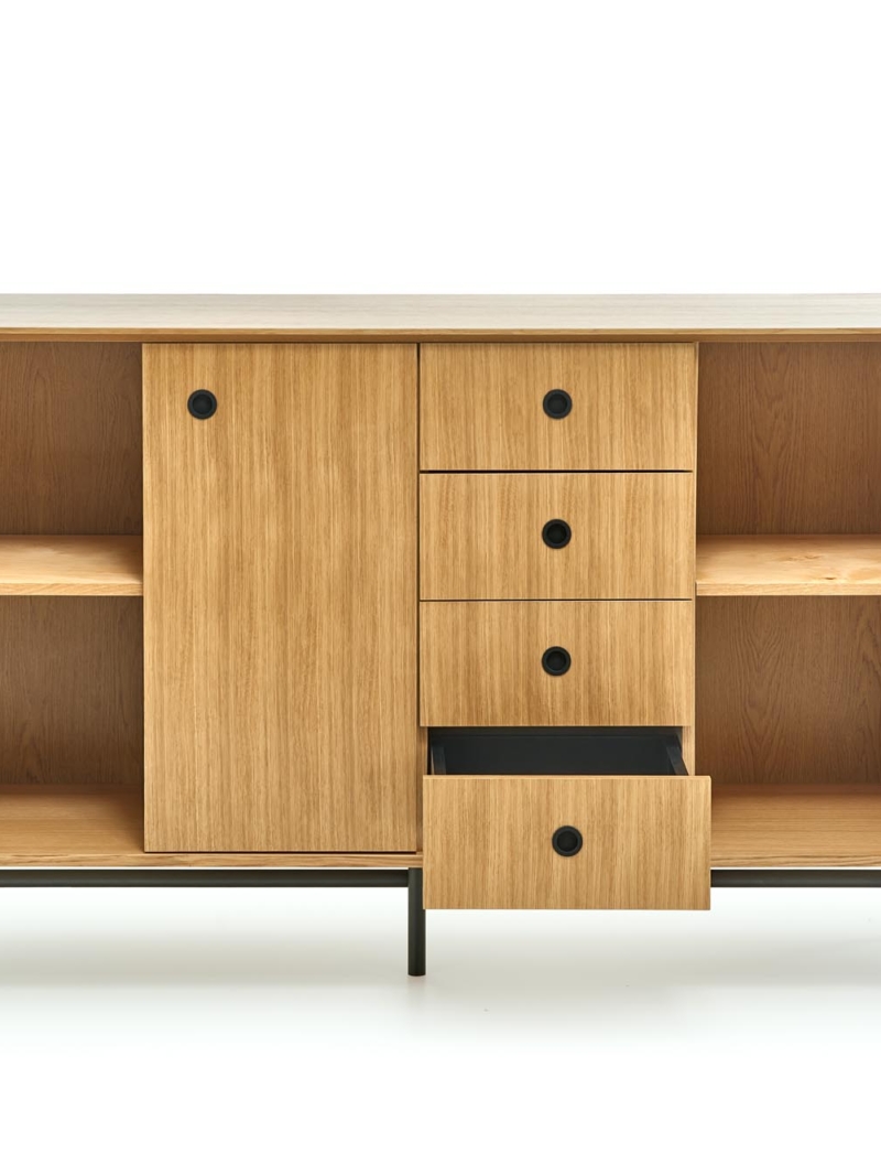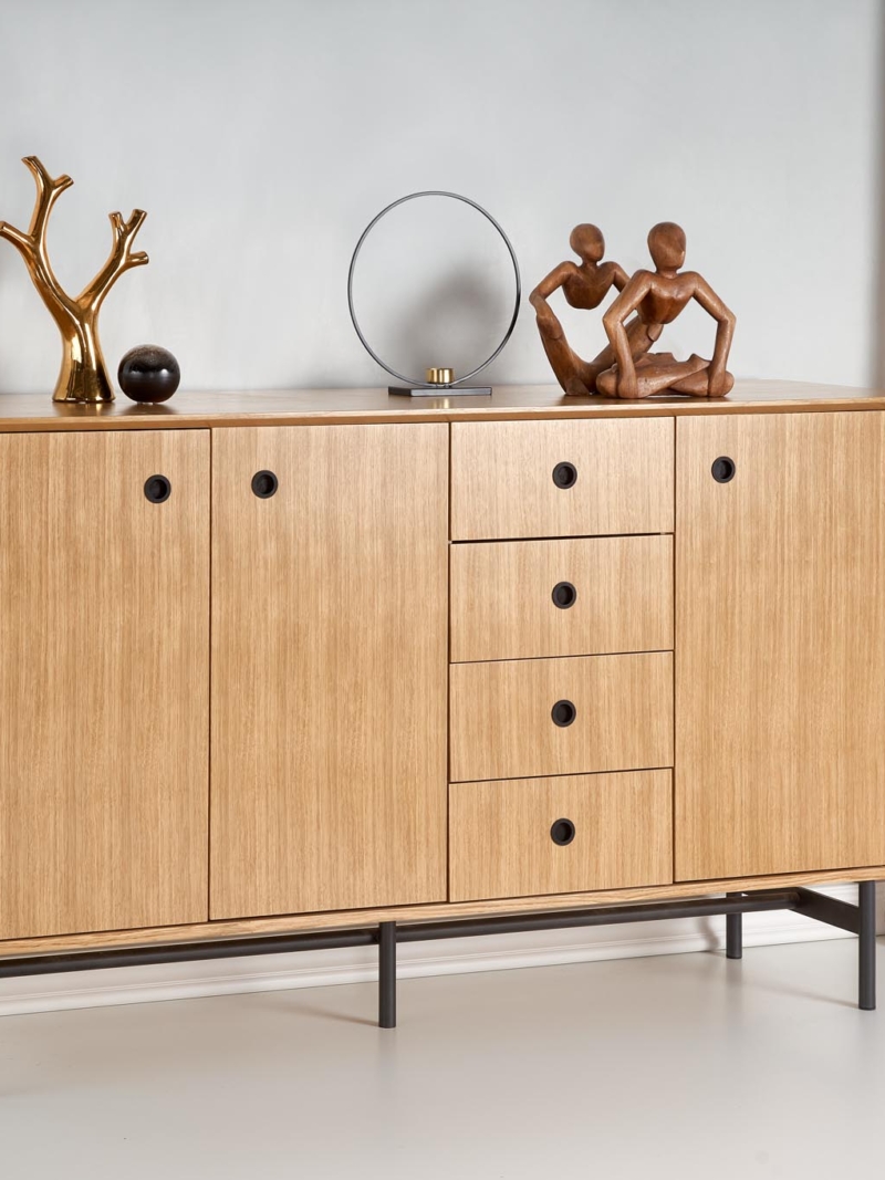 chest, dimensions: 167/44/93 cm, material: MDF + natural oak venner / chipboard + natural oak venner / powder coated steel, color: natural oak / black