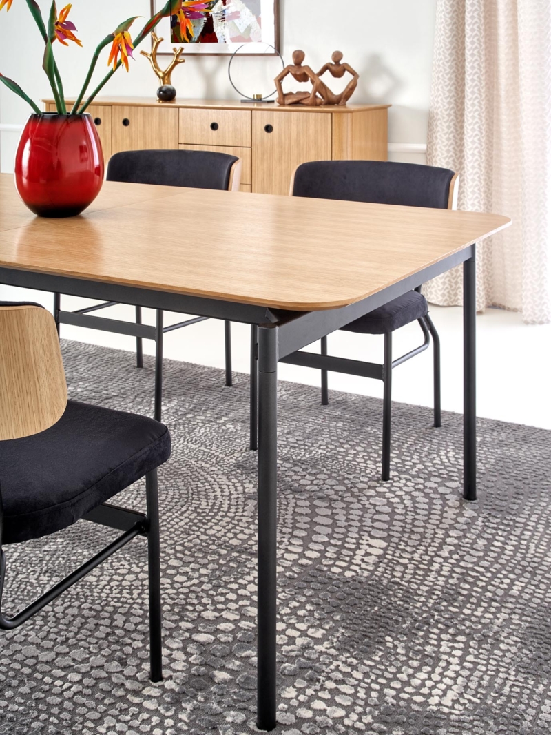 table, dimensions: 170÷250/100/76 cm, material: MDF + natural oak venner / chipboard + natural oak venner / powder coated steel, color: natural oak / black