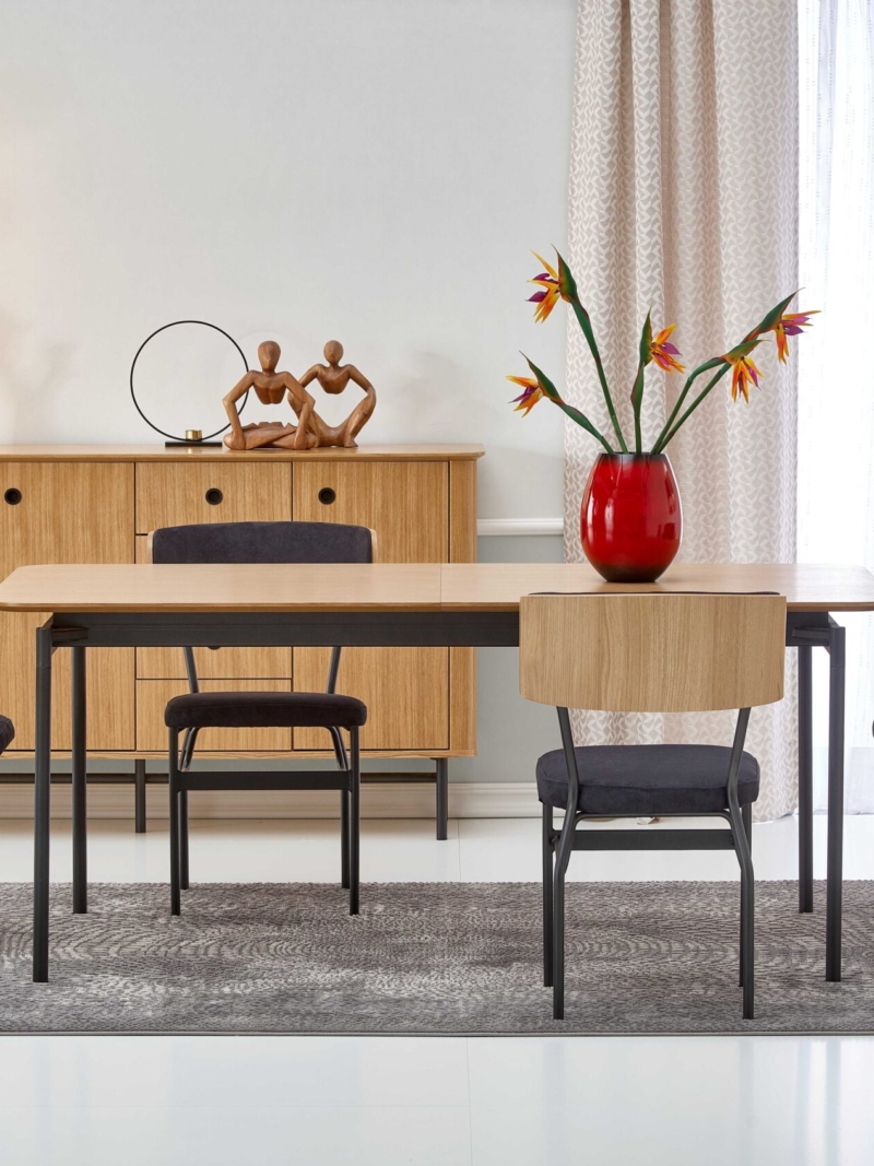 table, dimensions: 170÷250/100/76 cm, material: MDF + natural oak venner / chipboard + natural oak venner / powder coated steel, color: natural oak / black