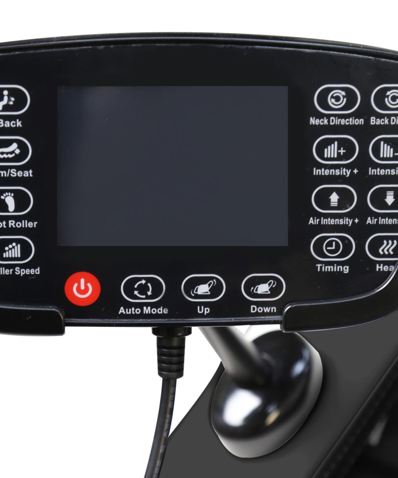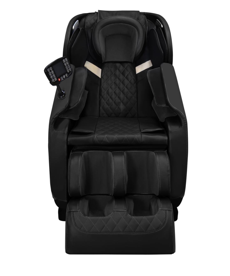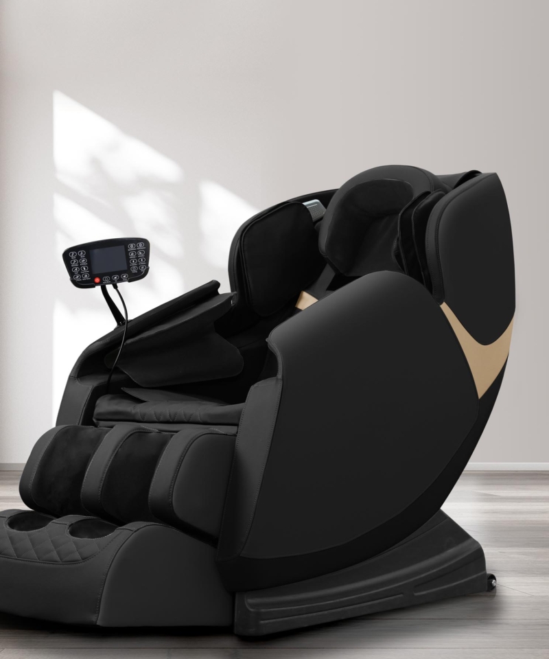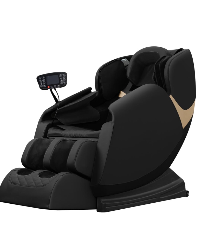 dimensions: 72/140-187/105-85 cm; massage chair / 20 auto massage programs / heating function / speakers / touch screen, material, eco leather, colors: black / gold