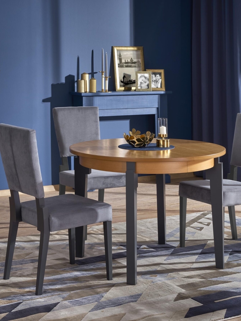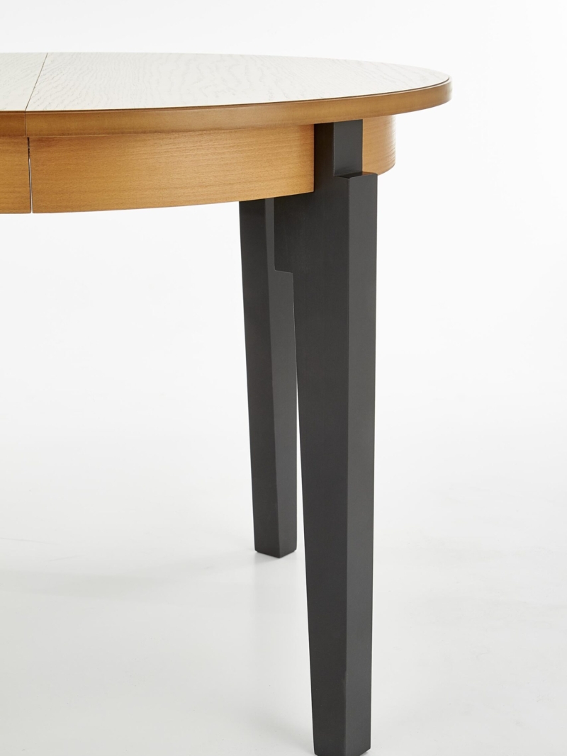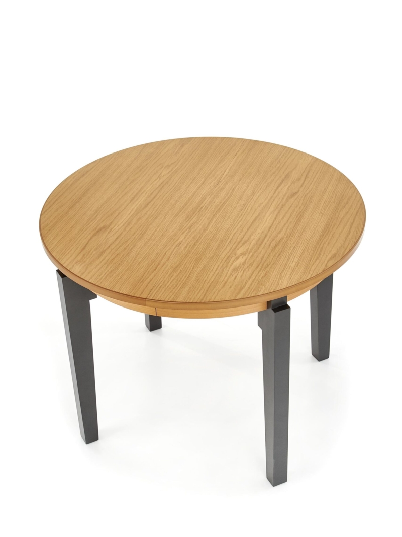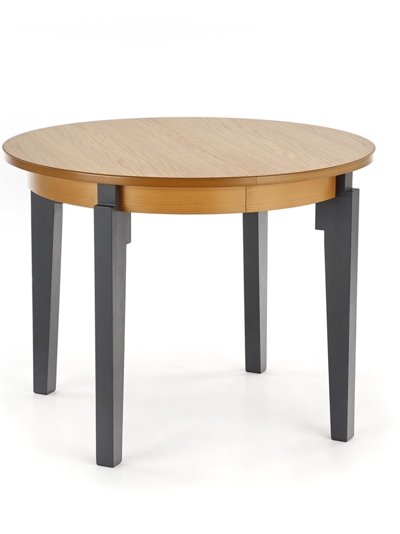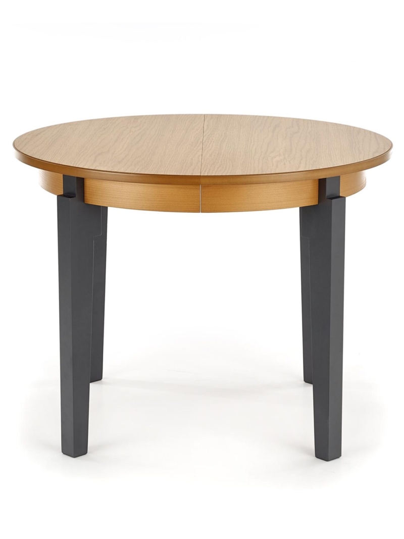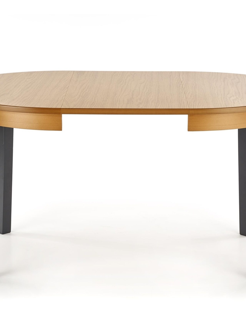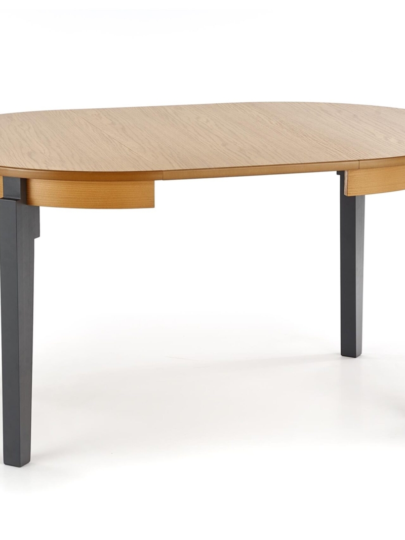 dimensions: 100÷200/100/77 cm, extension table, material: MDF + natural oak veneer / solid wood – beech, color: top – honey oak, legs – graphite