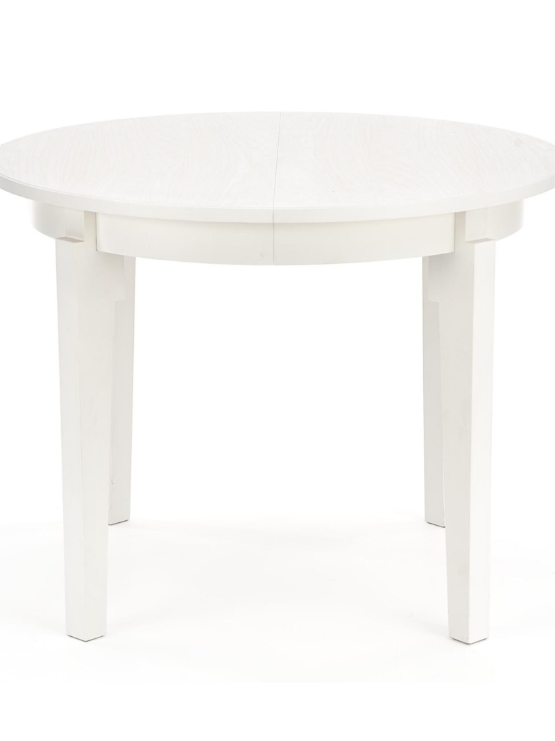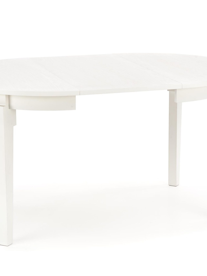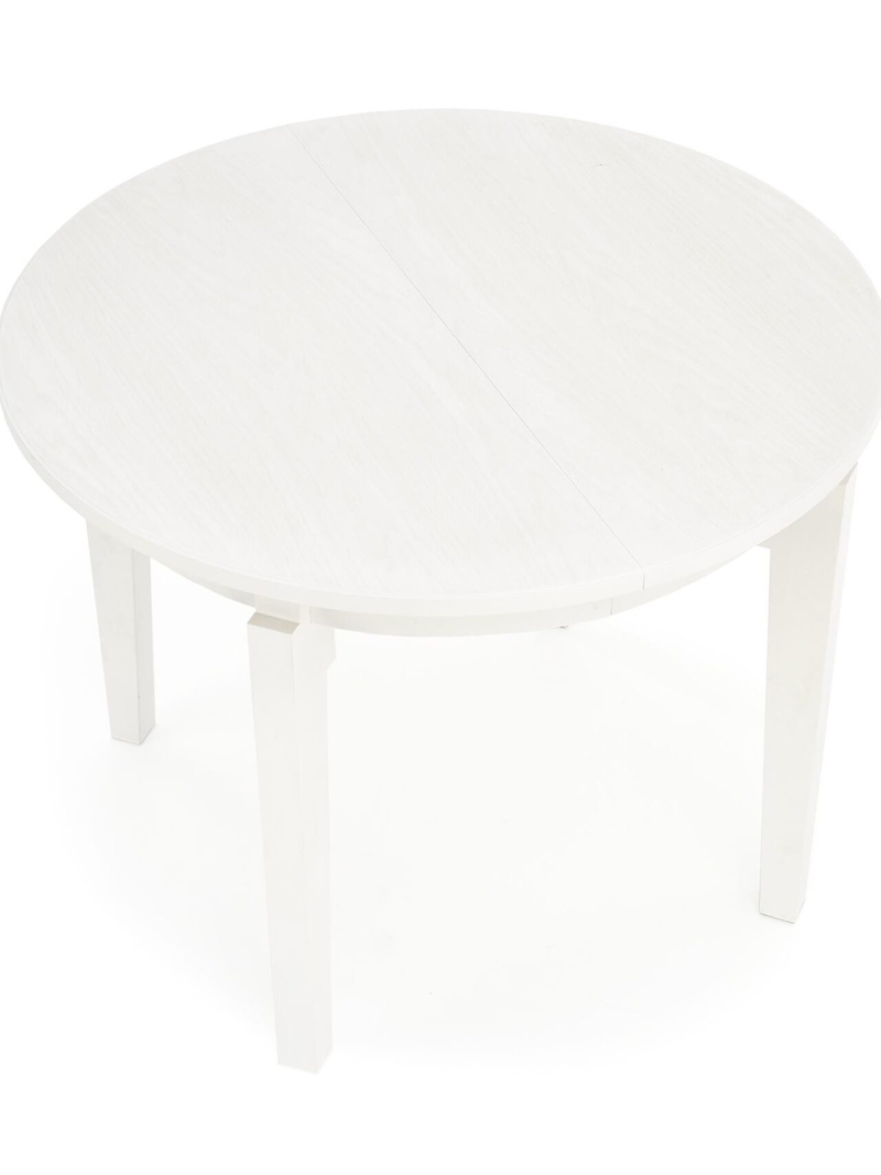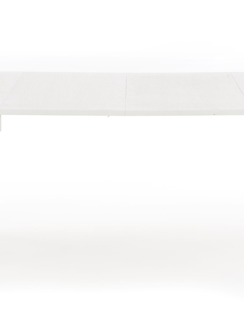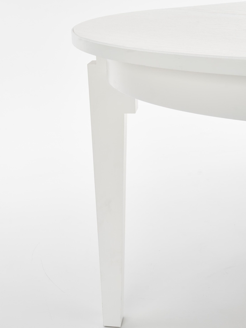 dimensions: 100÷200/100/77 cm, extension table, material: MDF + natural oak veneer / solid wood – beech, color: top – white, legs – white