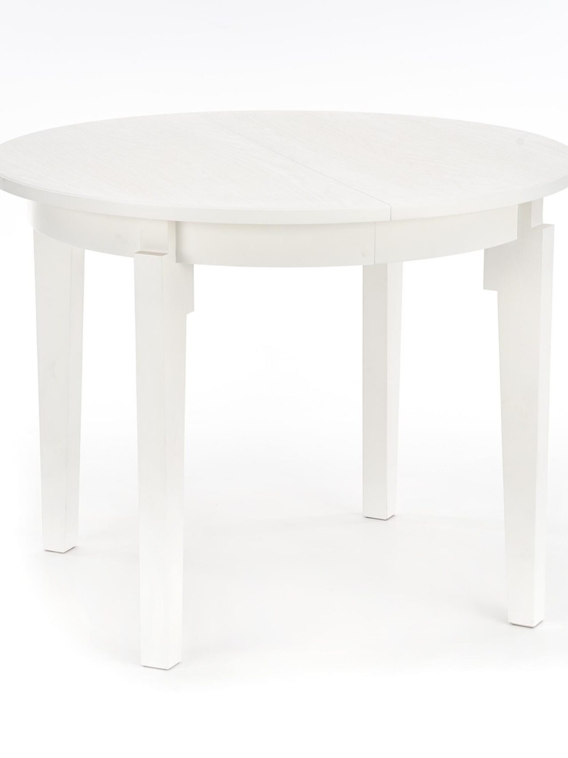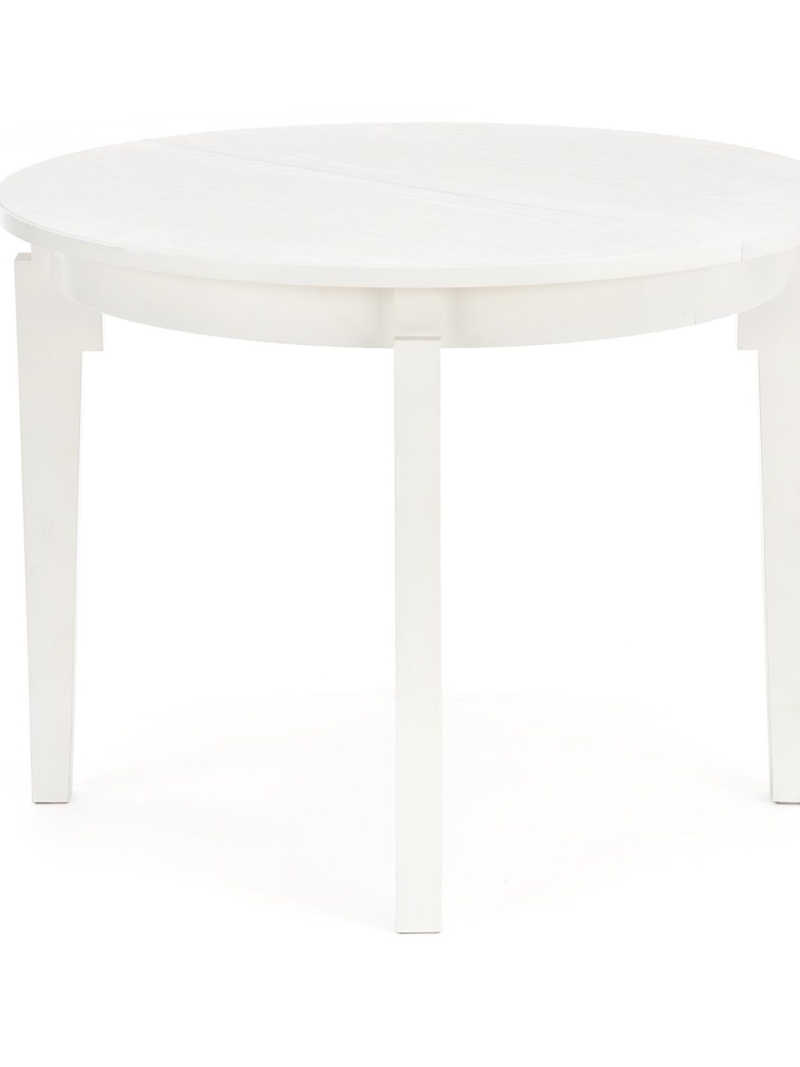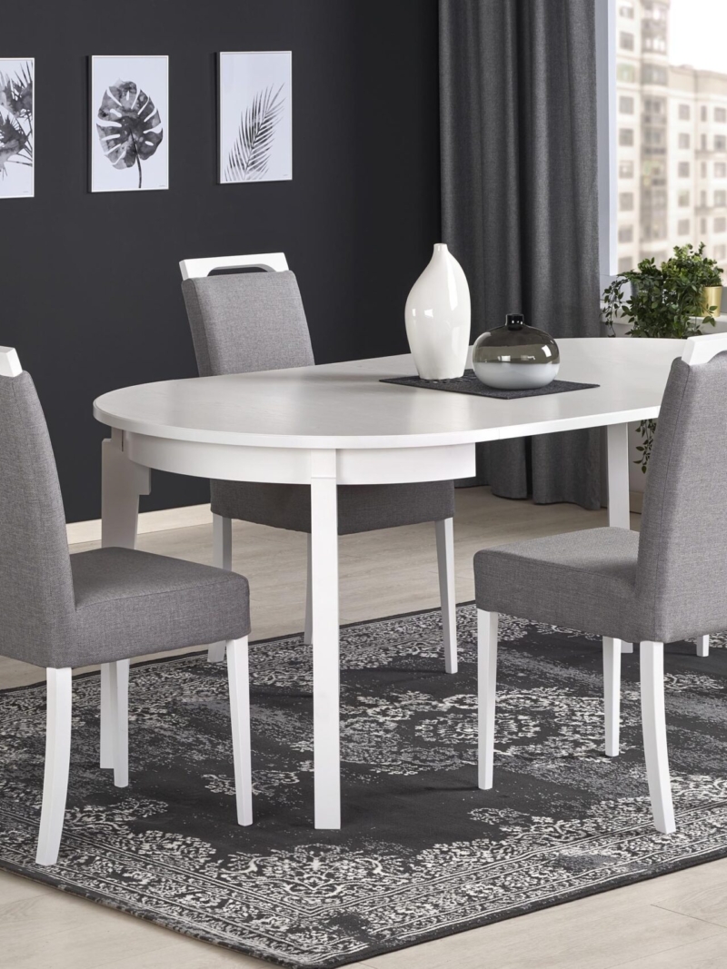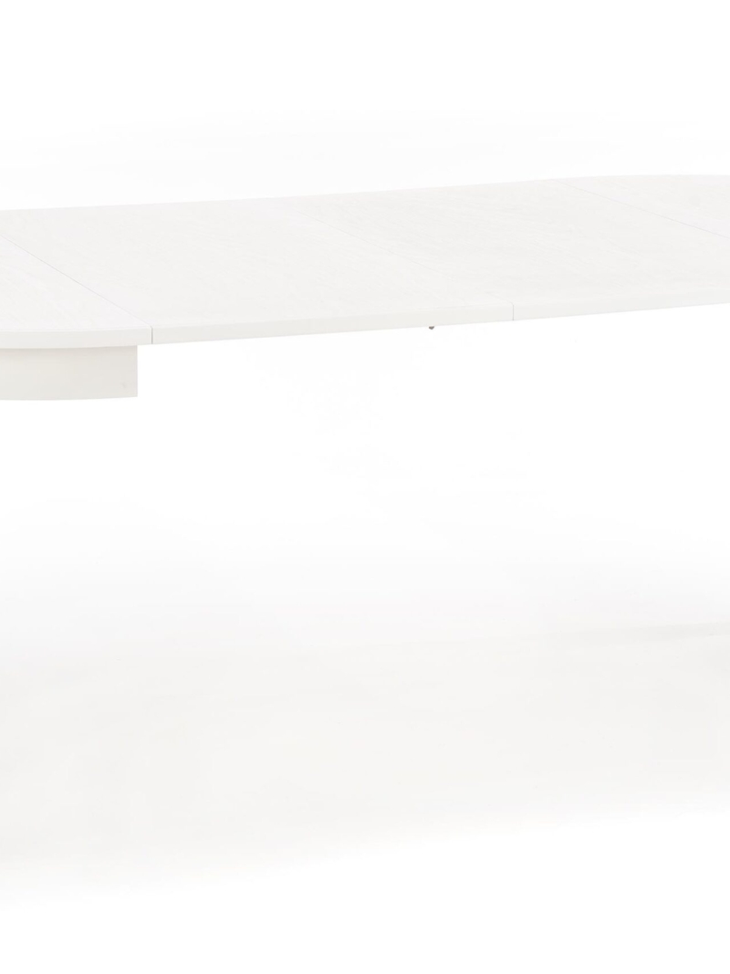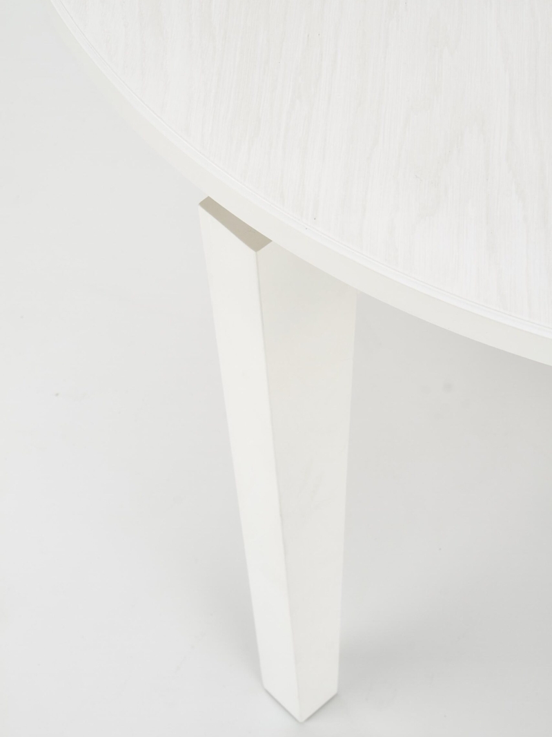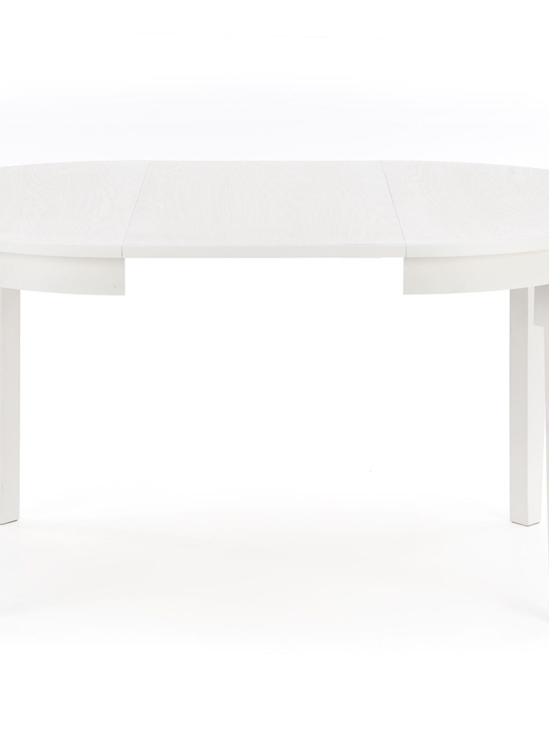 dimensions: 100÷200/100/77 cm, extension table, material: MDF + natural oak veneer / solid wood – beech, color: top – white, legs – white