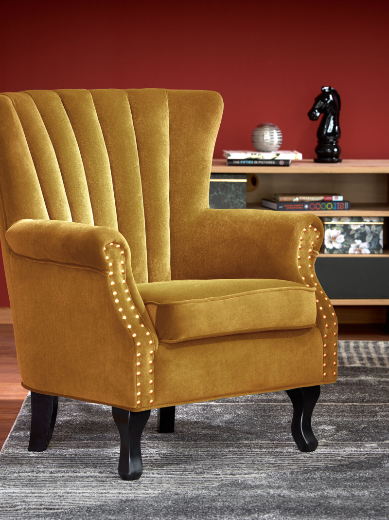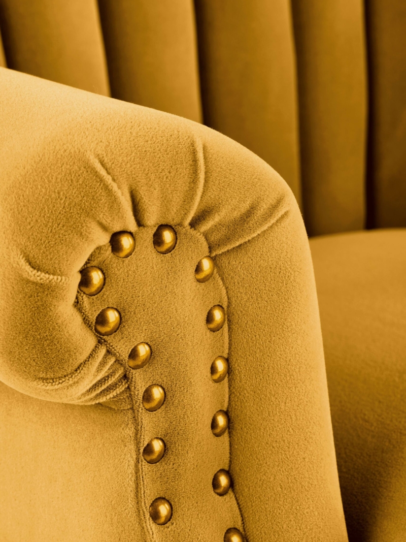 dimensions: 73/70/87/45 cm, material: velvet cloth / solid wood, color: mustard