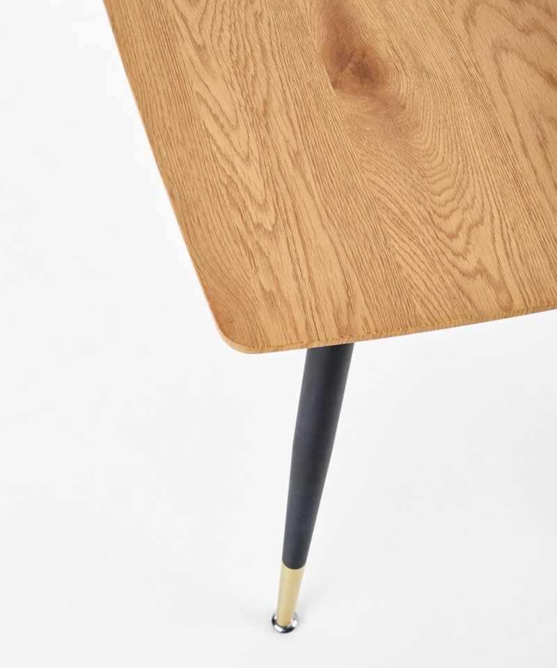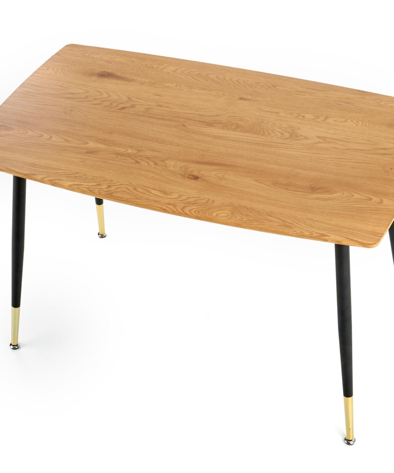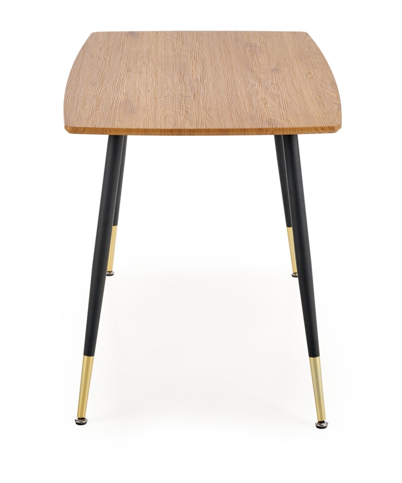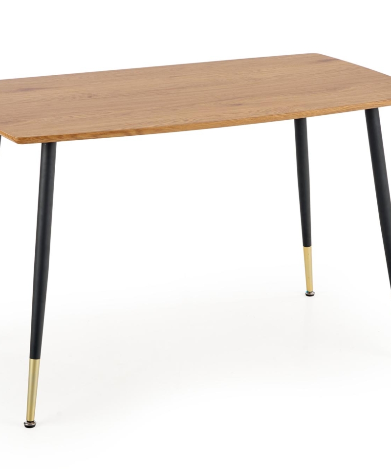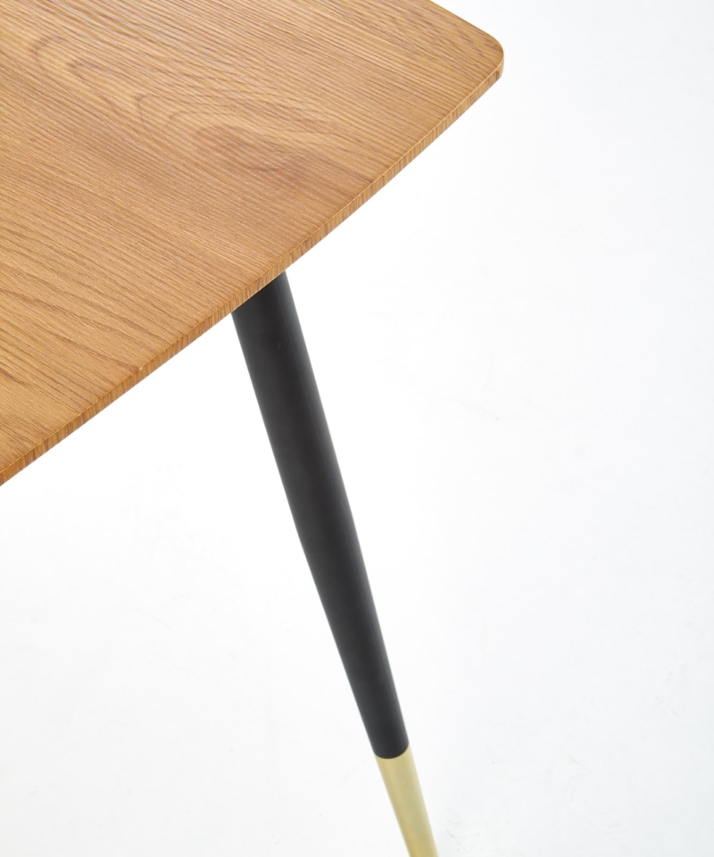 dimensions: 120/70/76 cm, material: laminated MDF / powder coated steel / chrome steel, color: top – golden oak, legs – black / gold