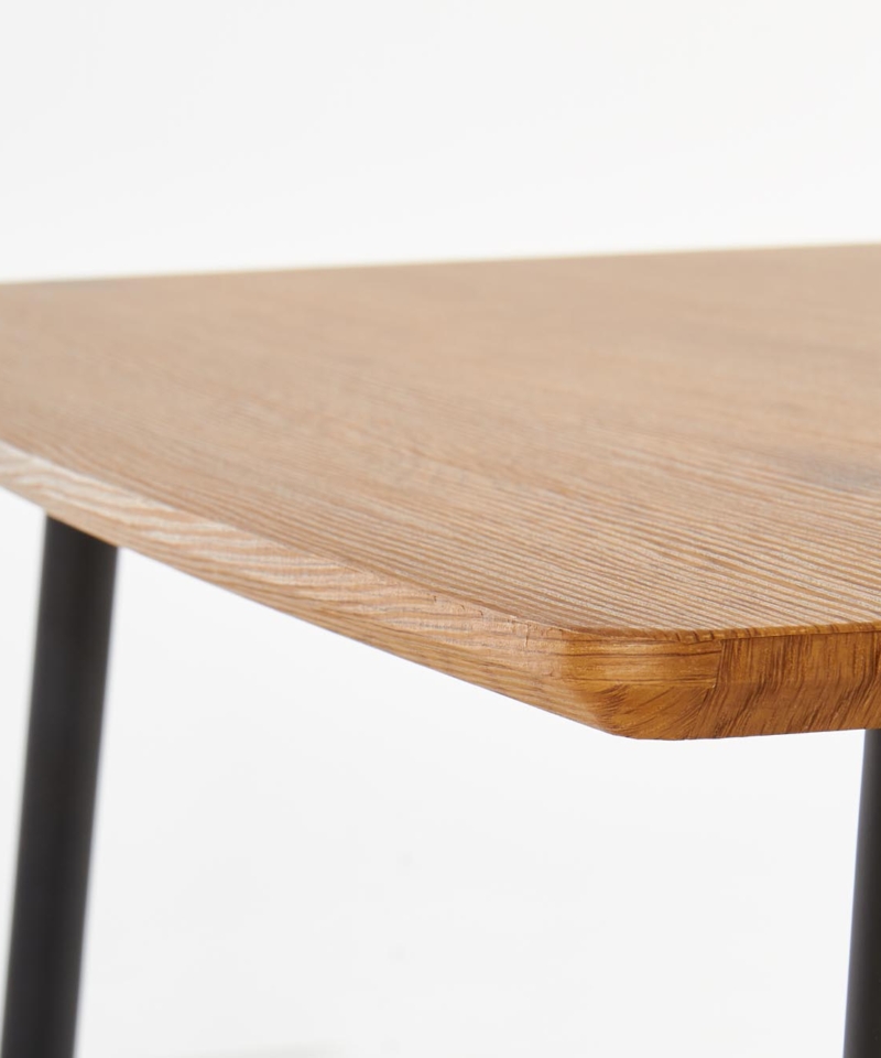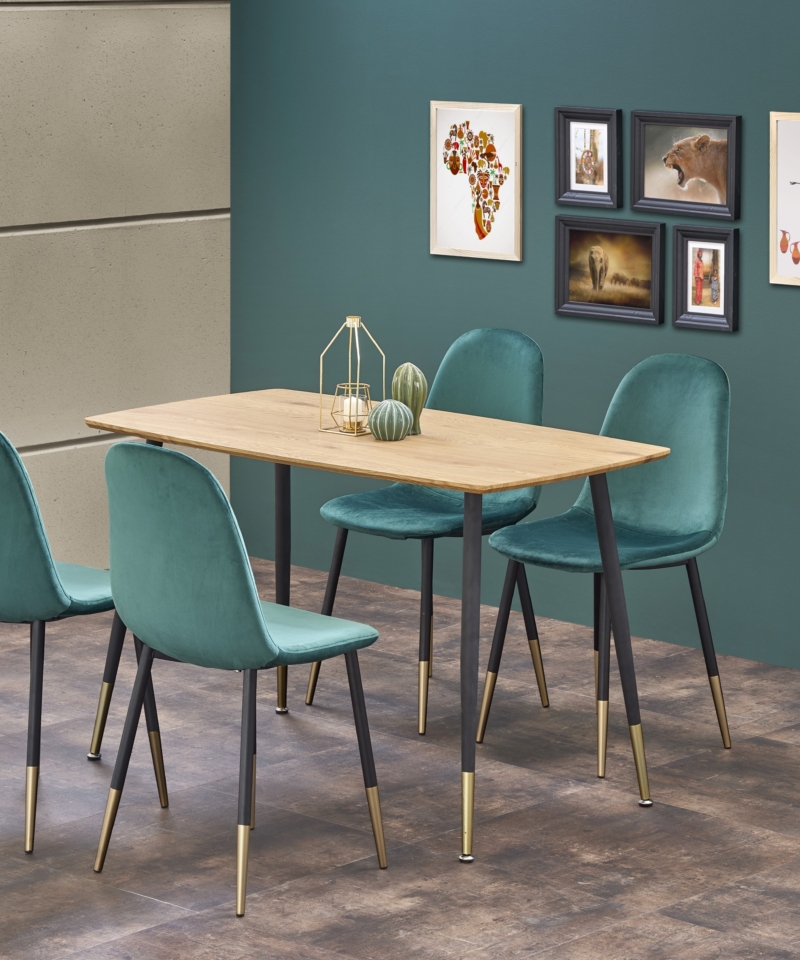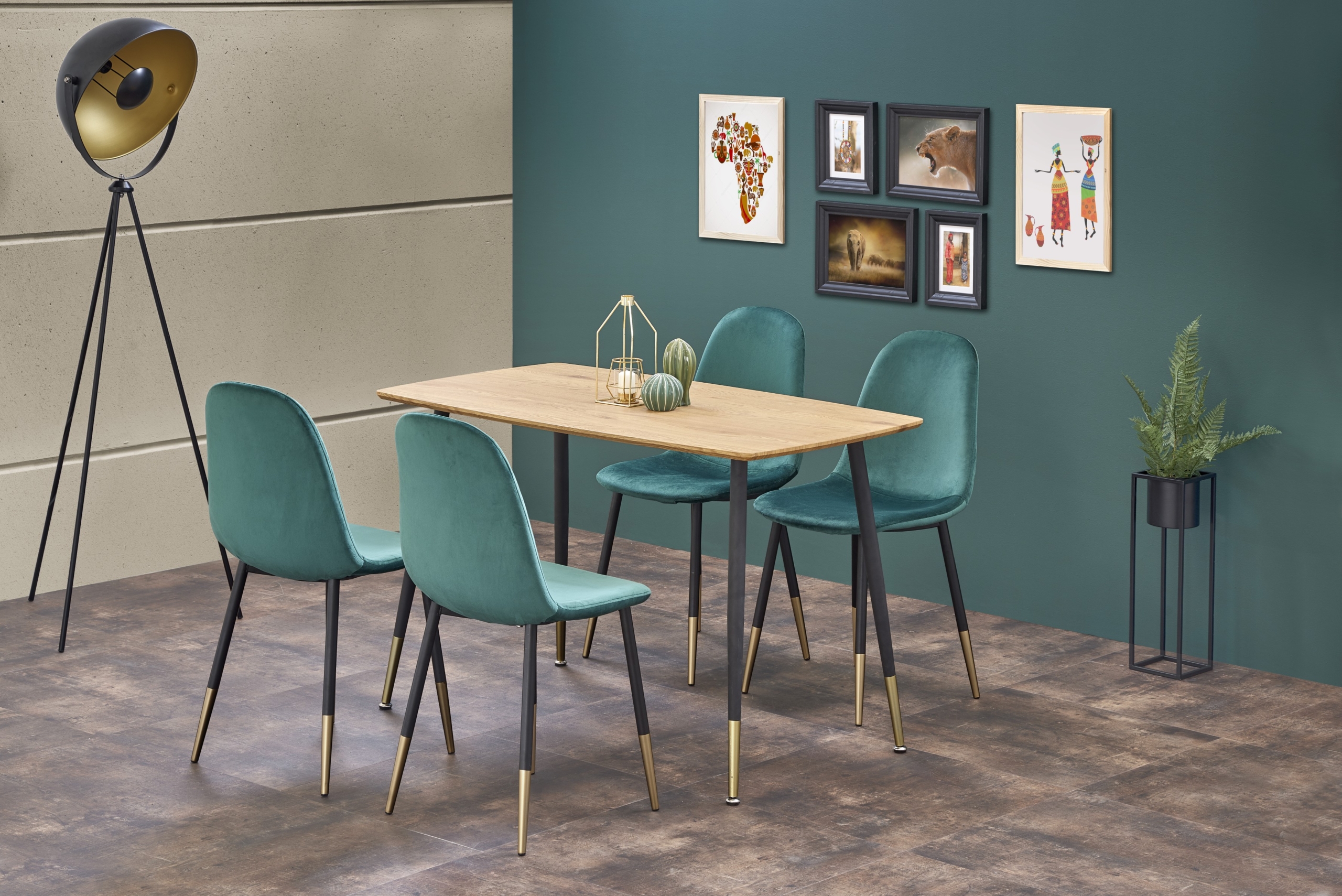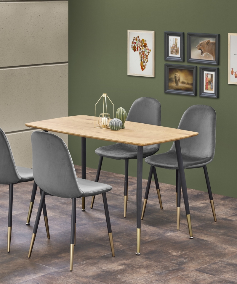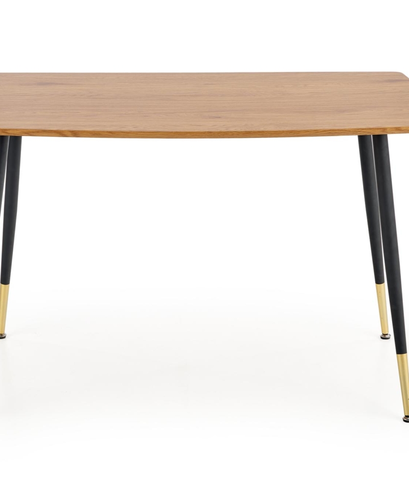 dimensions: 120/70/76 cm, material: laminated MDF / powder coated steel / chrome steel, color: top – golden oak, legs – black / gold