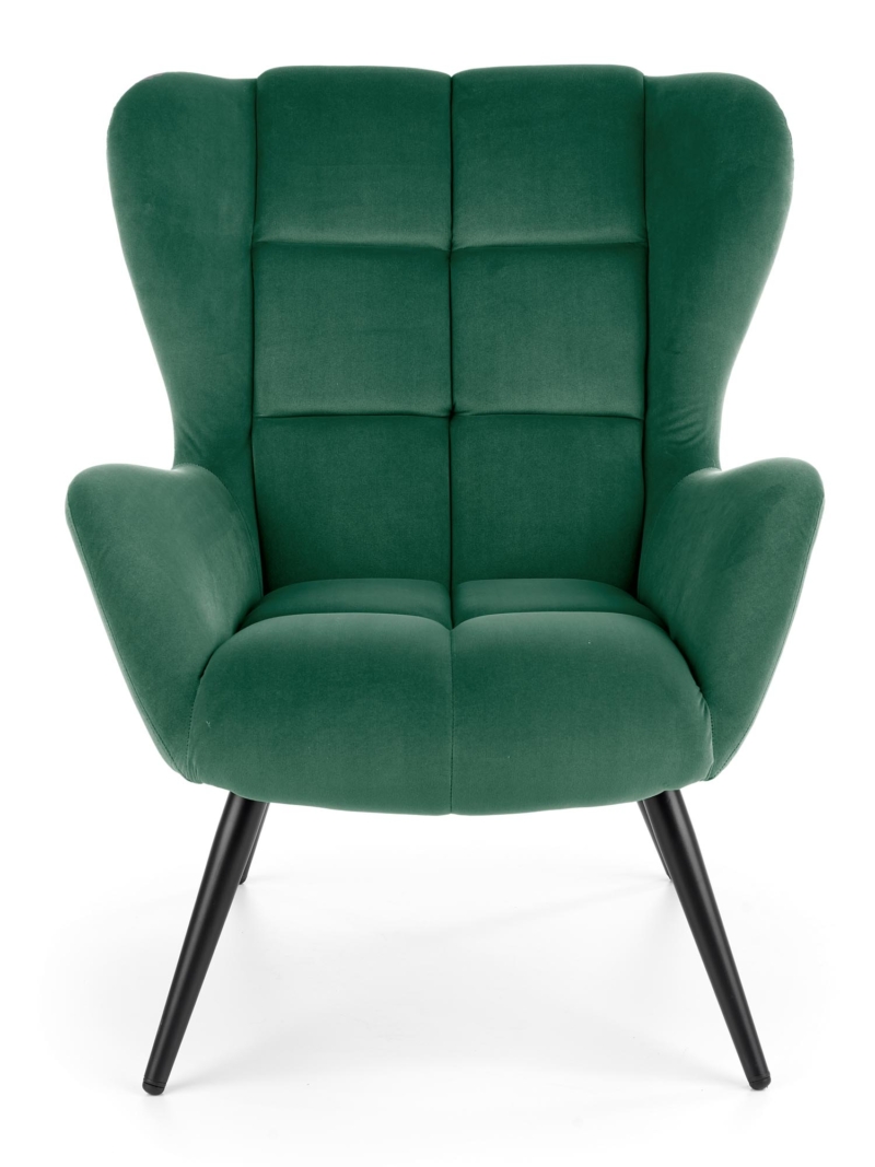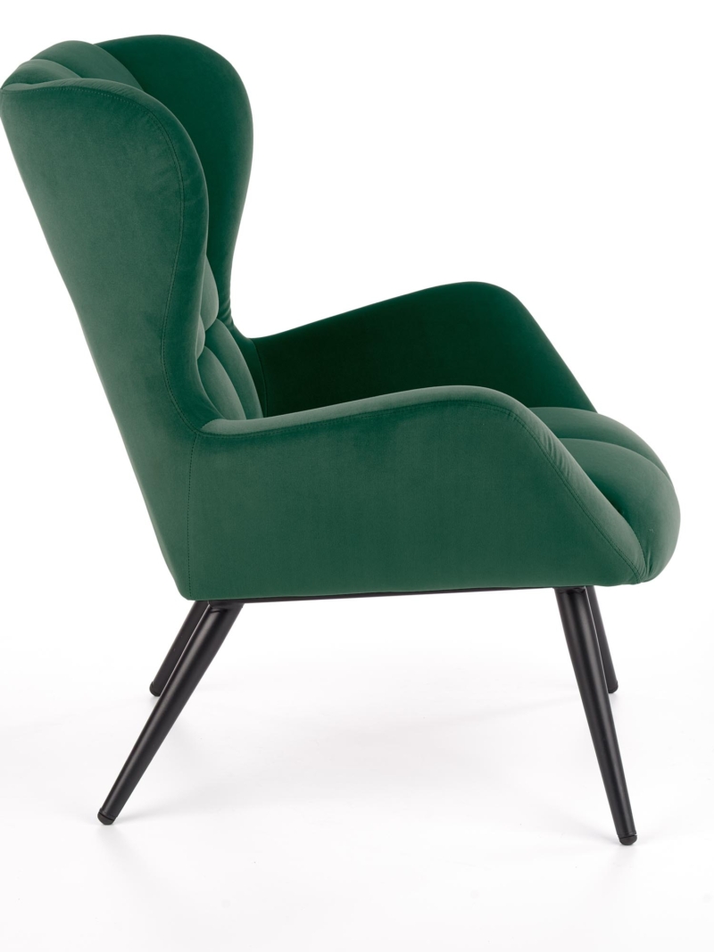 dimensions: 75/86/91/48 cm, material: cloth / solid wood, color: upholstery – dark green, legs – black